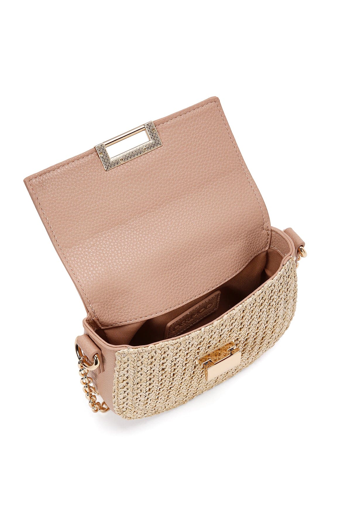 کیف کراس بادی زنانه چرم صورتی بافتدار مینی بند بلند دری مد