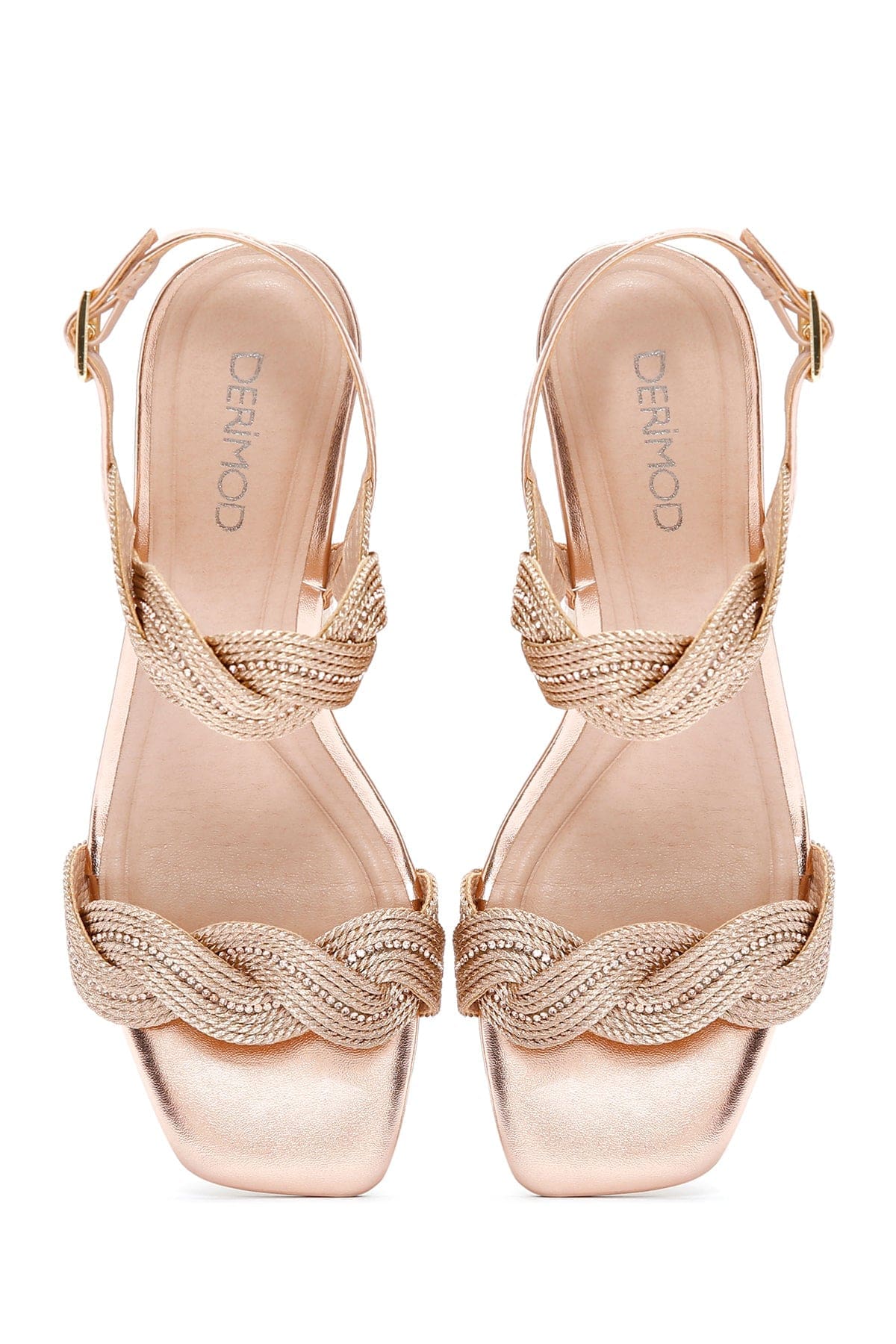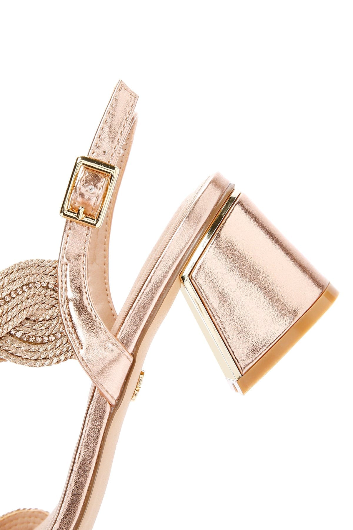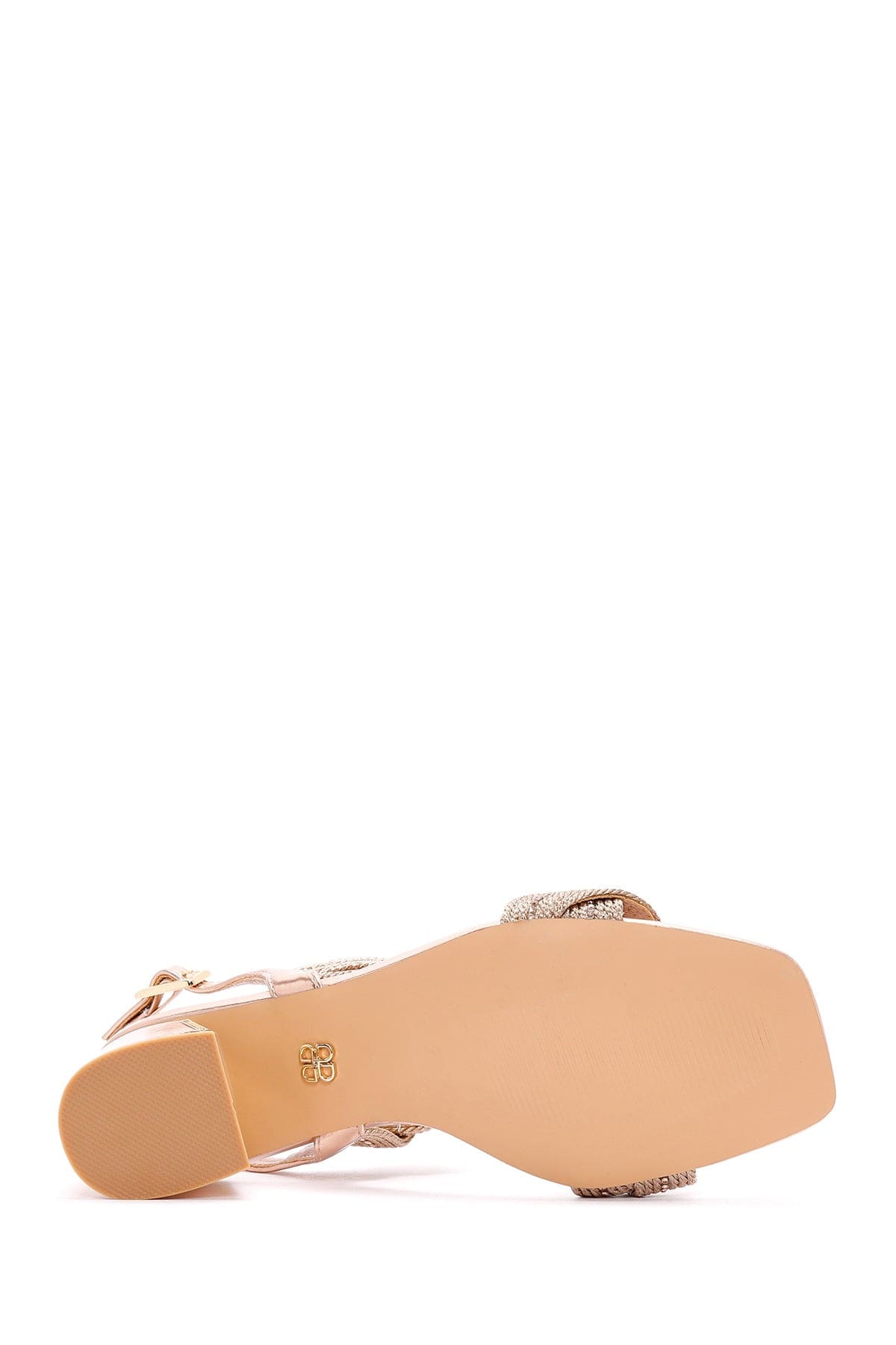 Kadın Pembe Örgülü Kalın Kısa Topuklu Sandalet