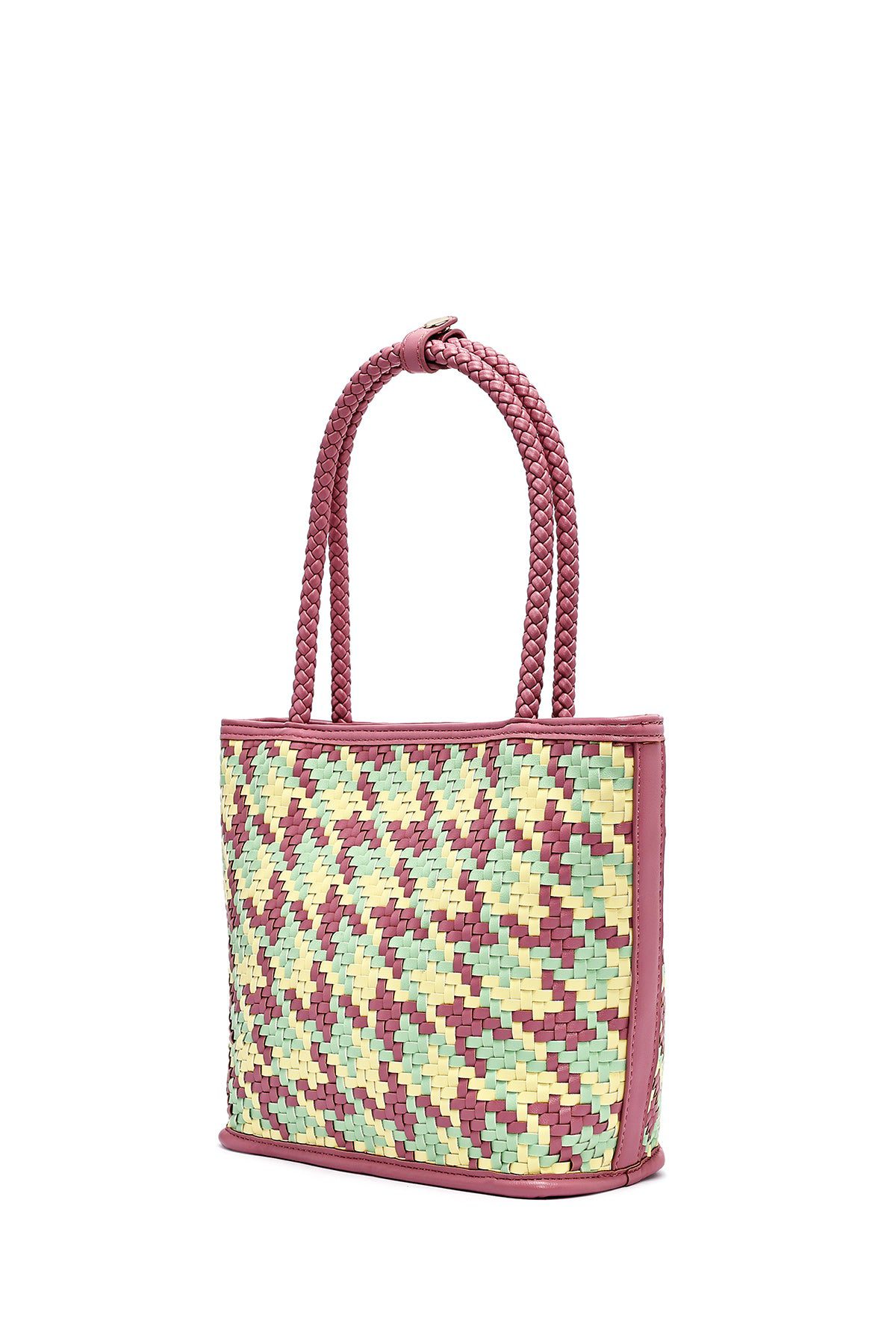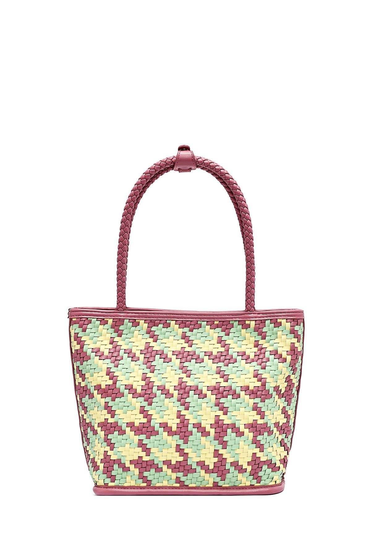 کیف زنانه صورتی بافت دری مد