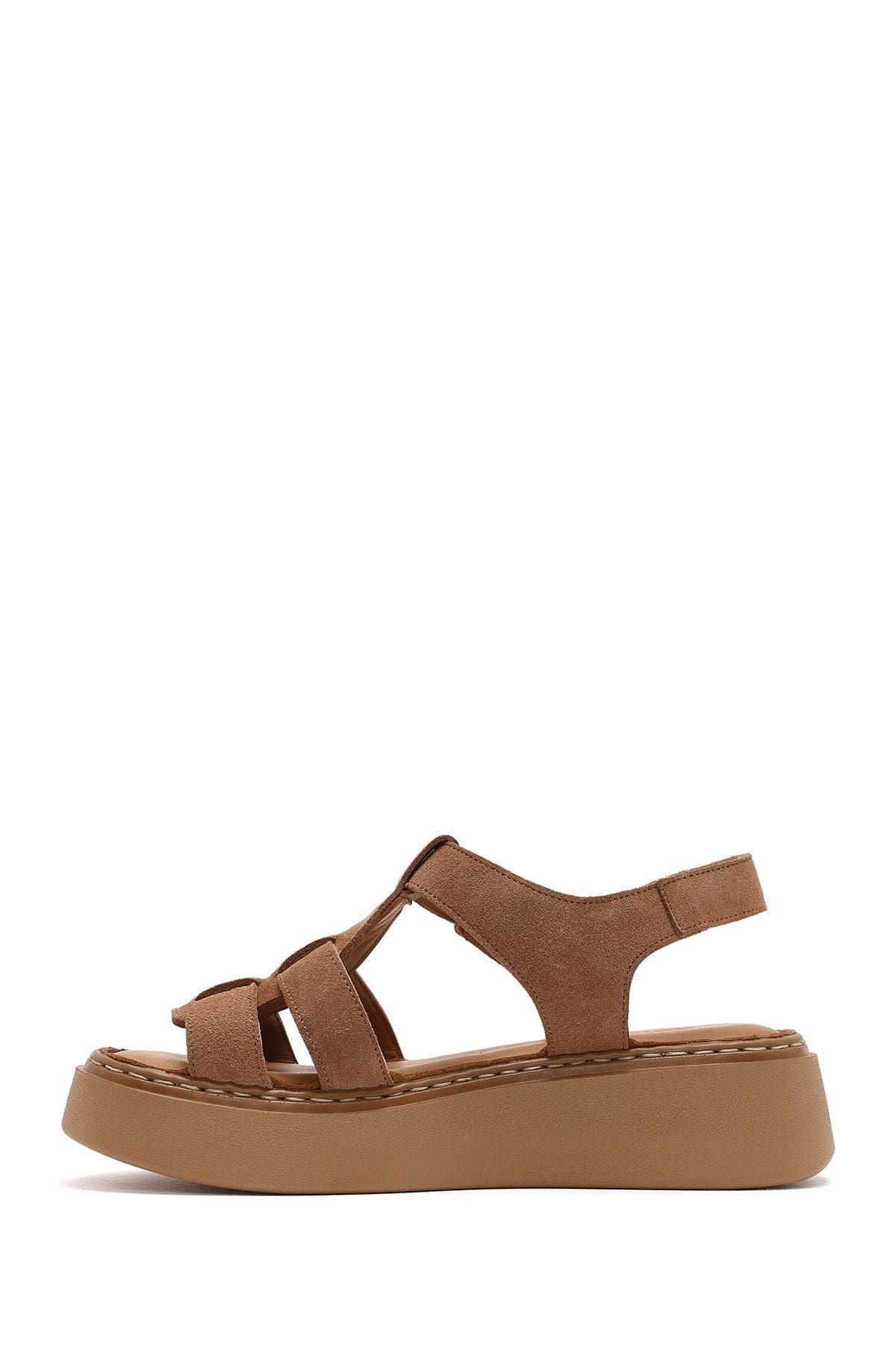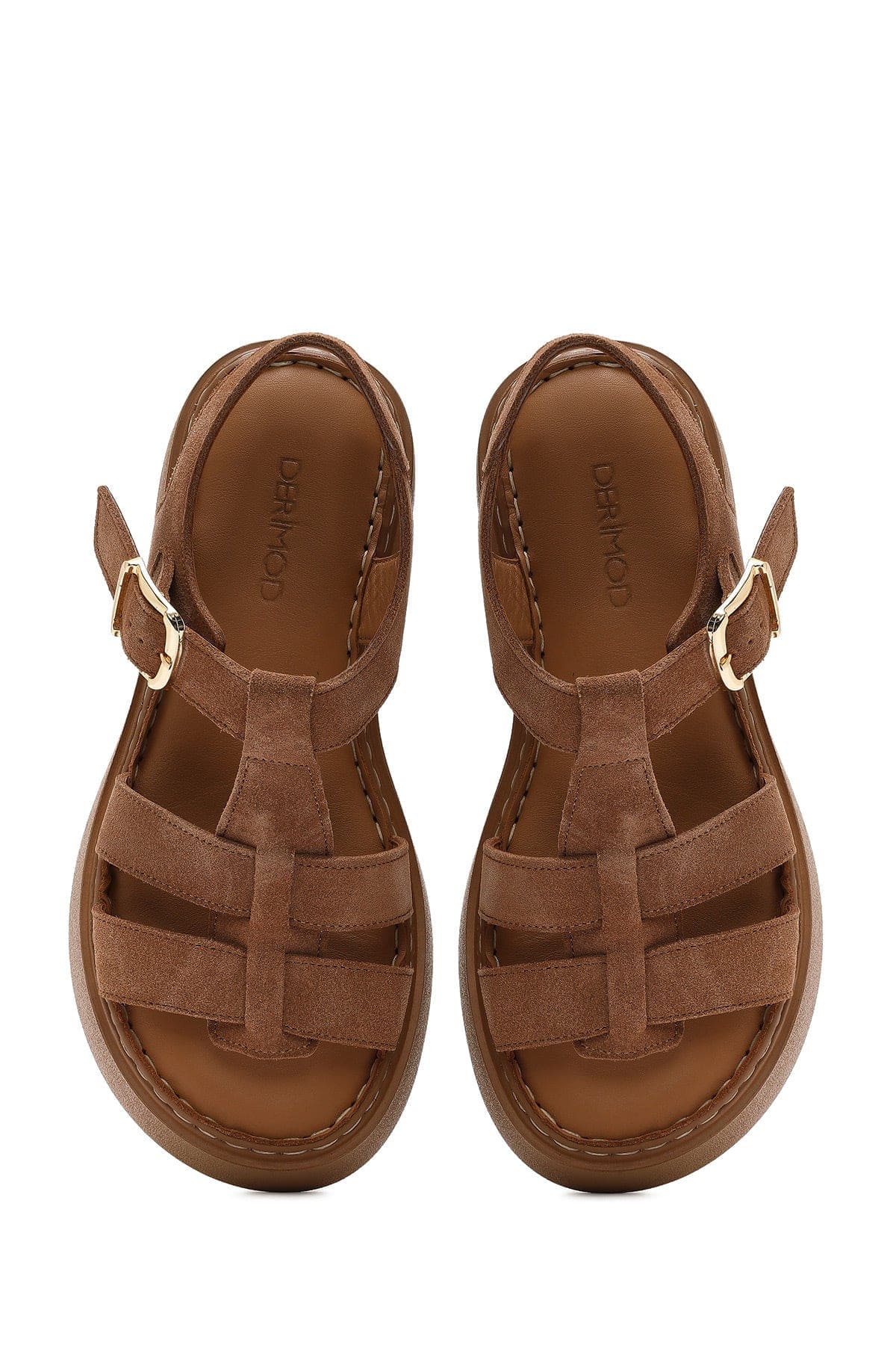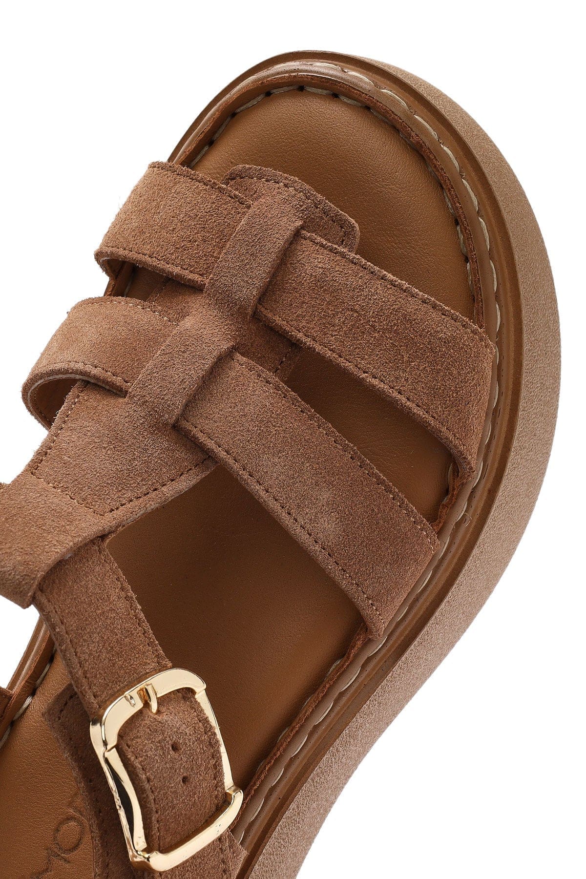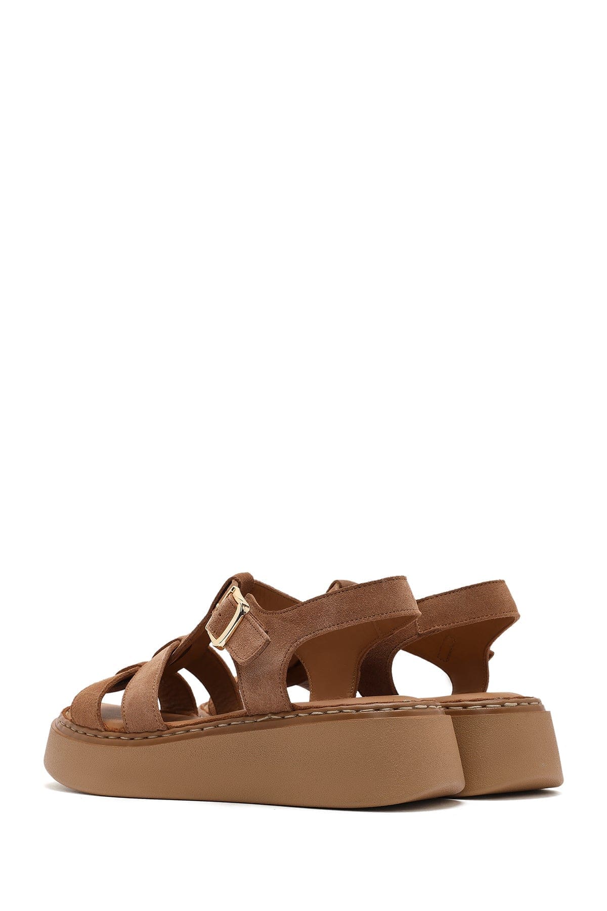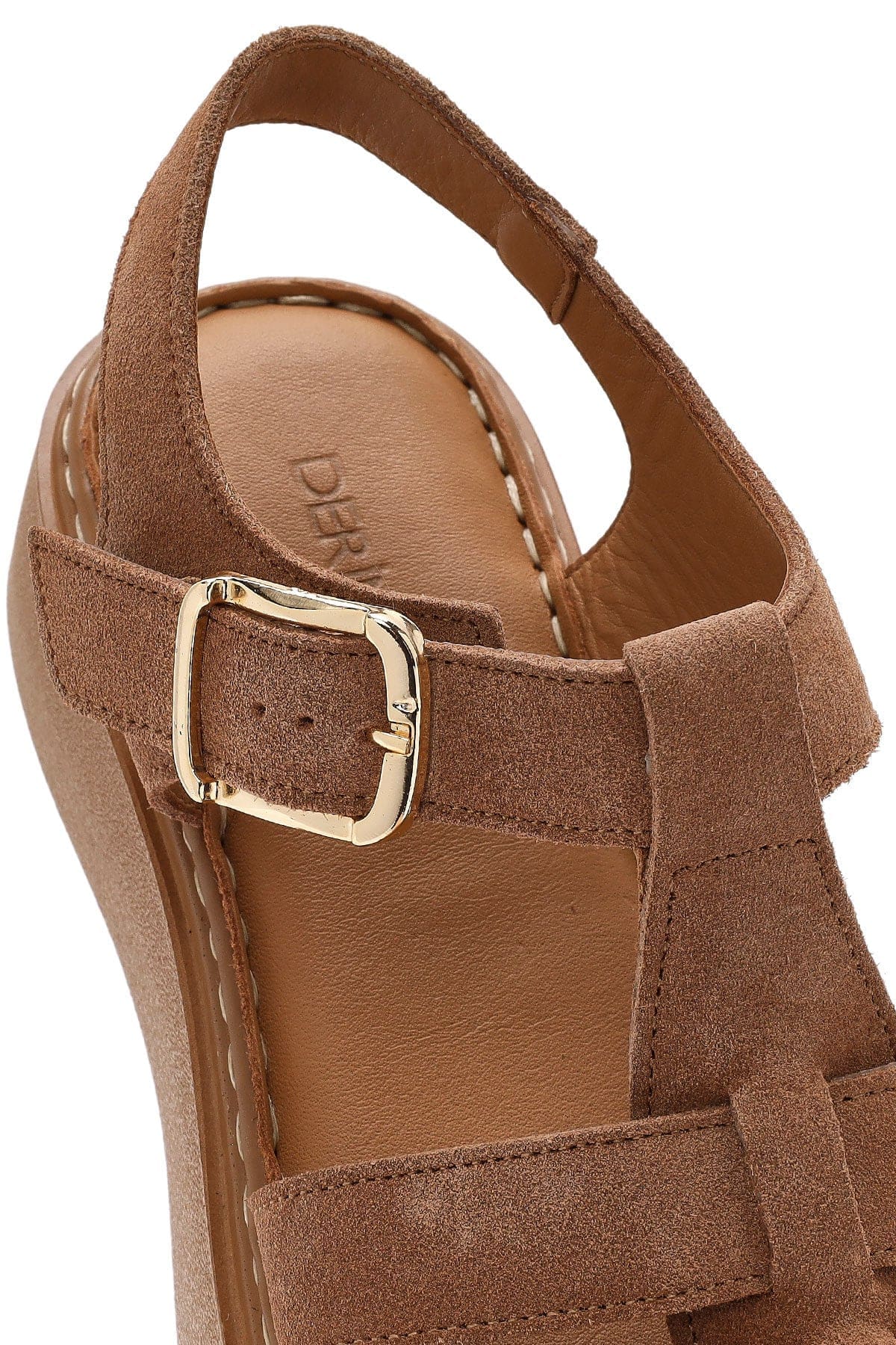 Kadın Pudra Bilekten Tokalı Kalın Tabanlı Süet Deri Comfort Sandalet