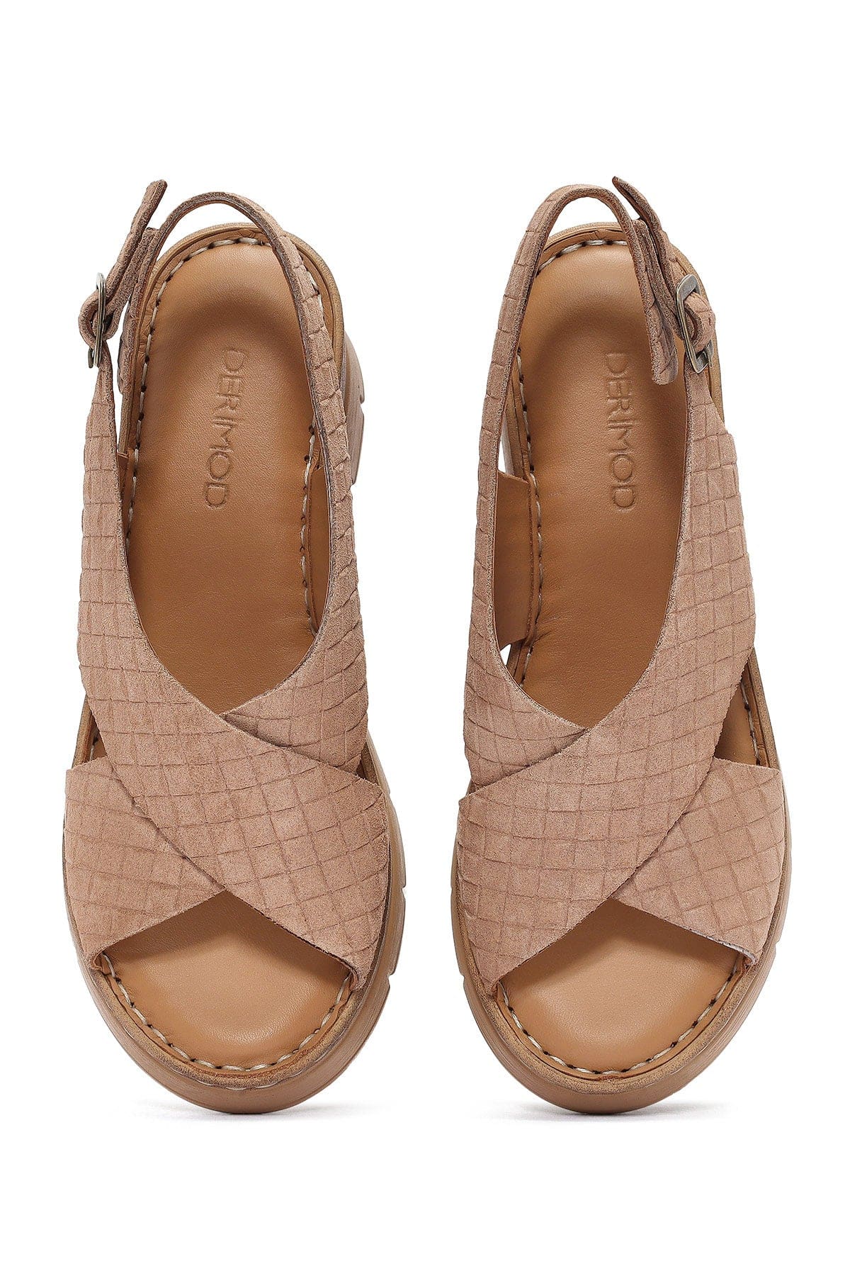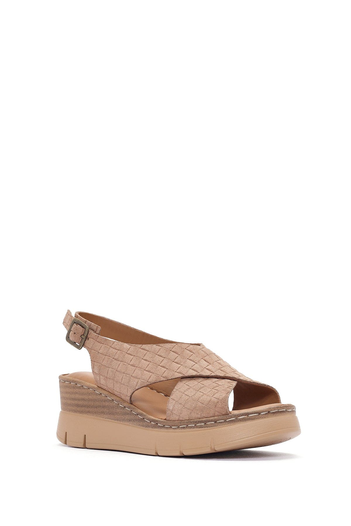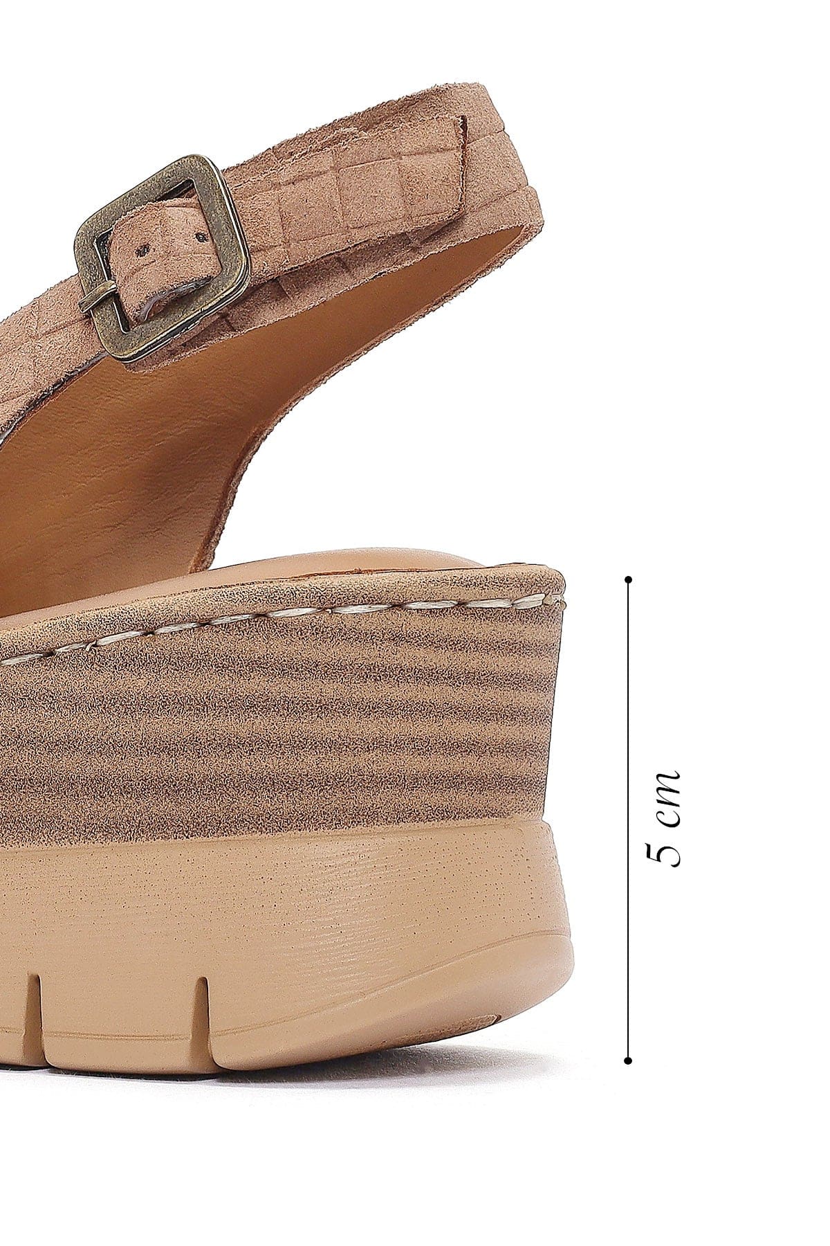 Kadın Pudra Bilekten Tokalı Dolgu Topuklu Süet Deri Comfort Sandalet