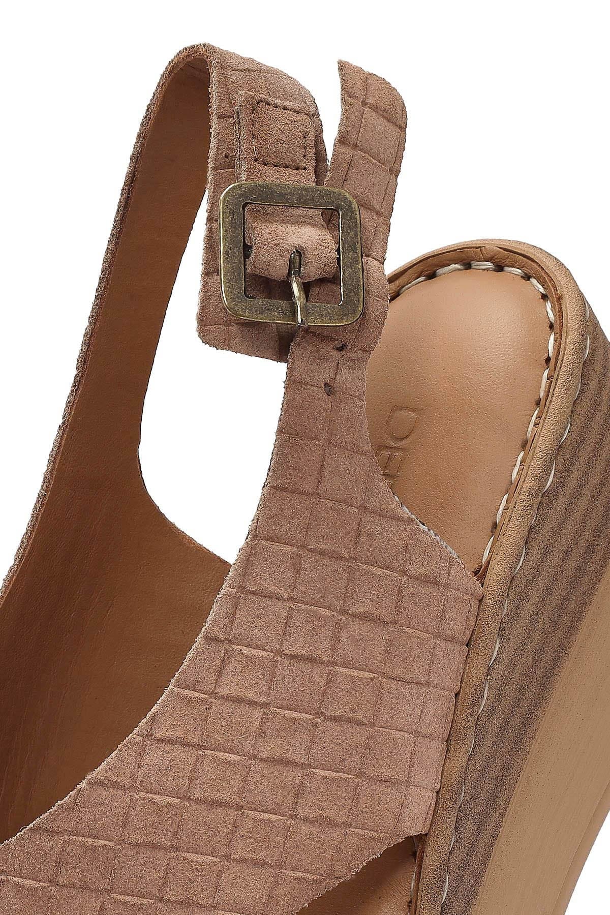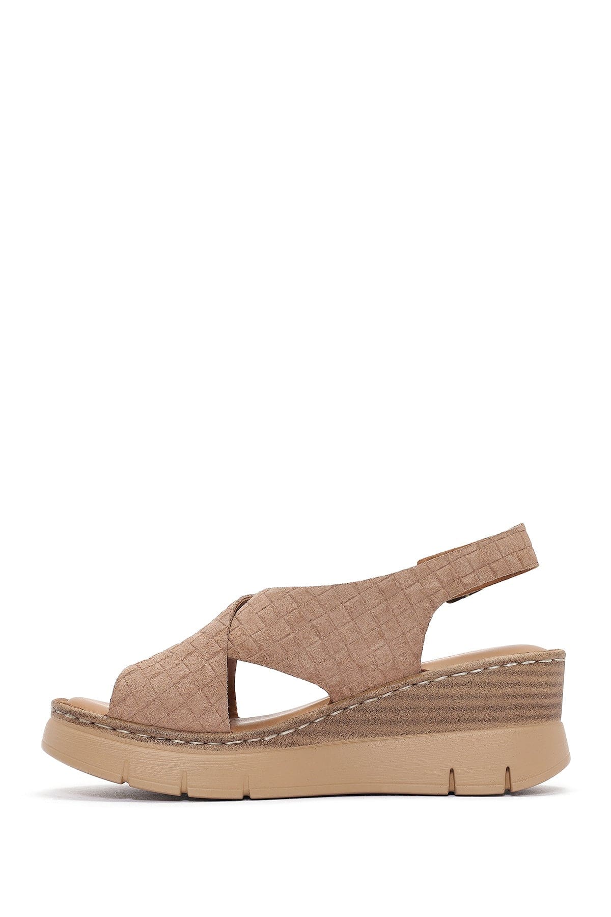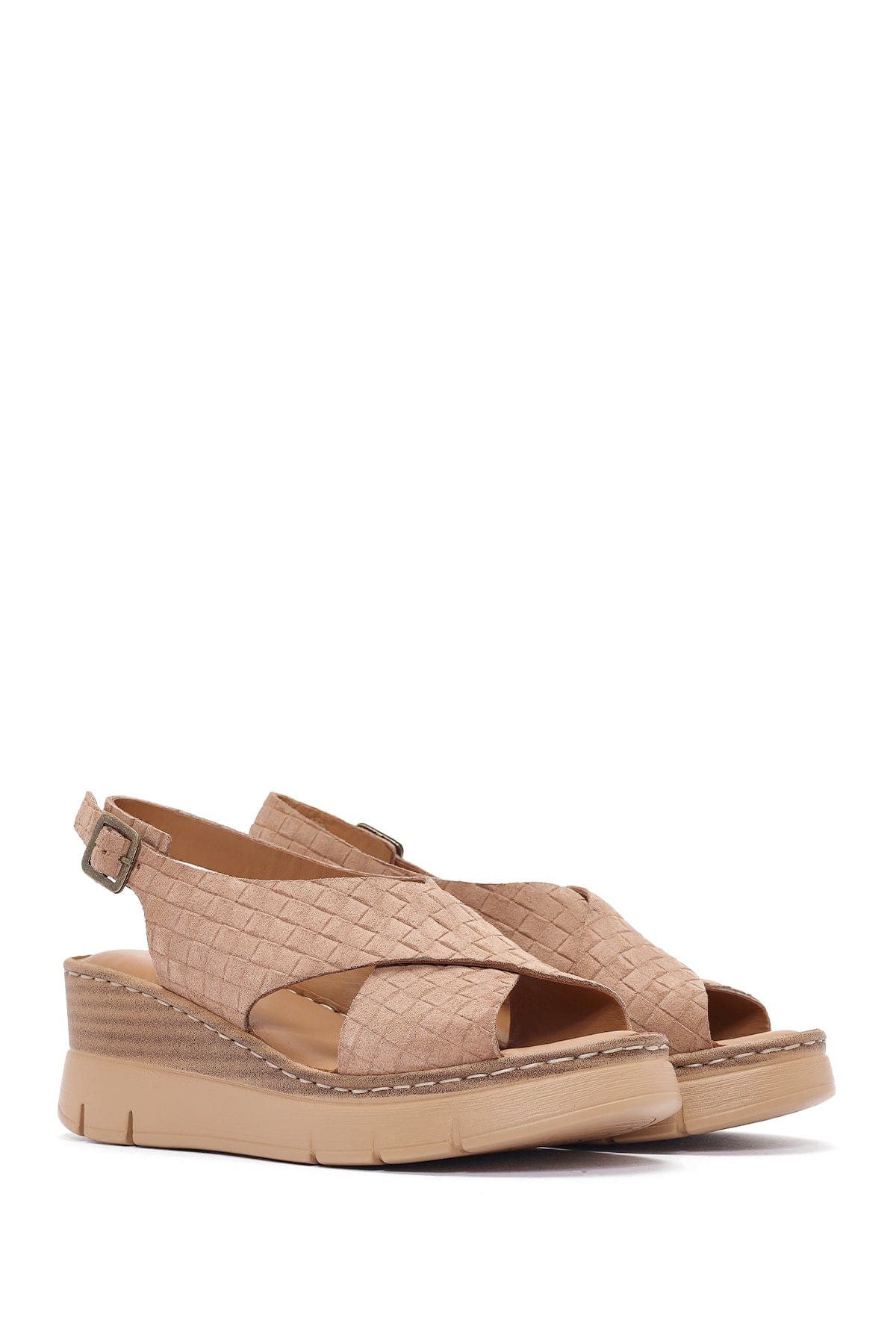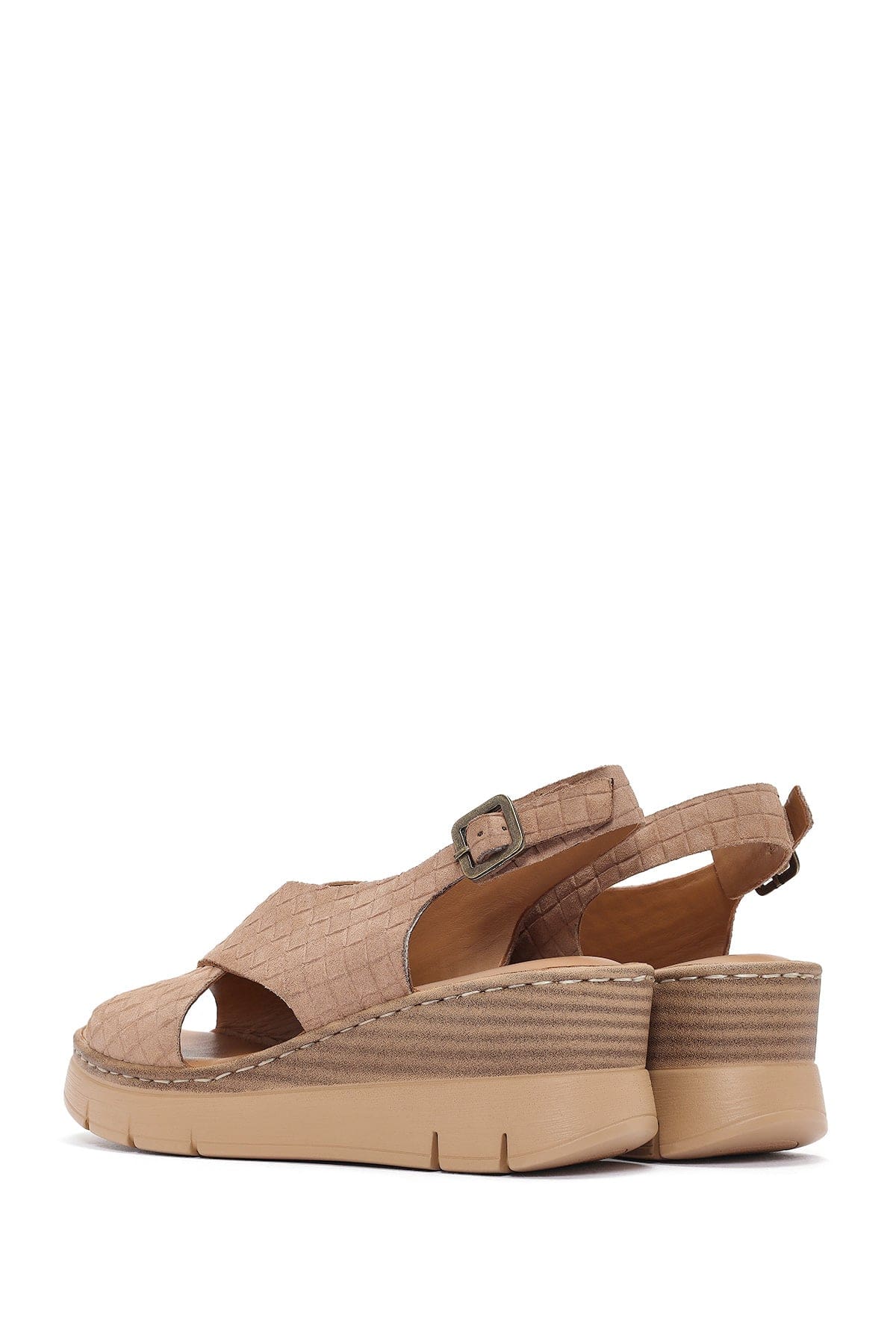 Kadın Pudra Bilekten Tokalı Dolgu Topuklu Süet Deri Comfort Sandalet