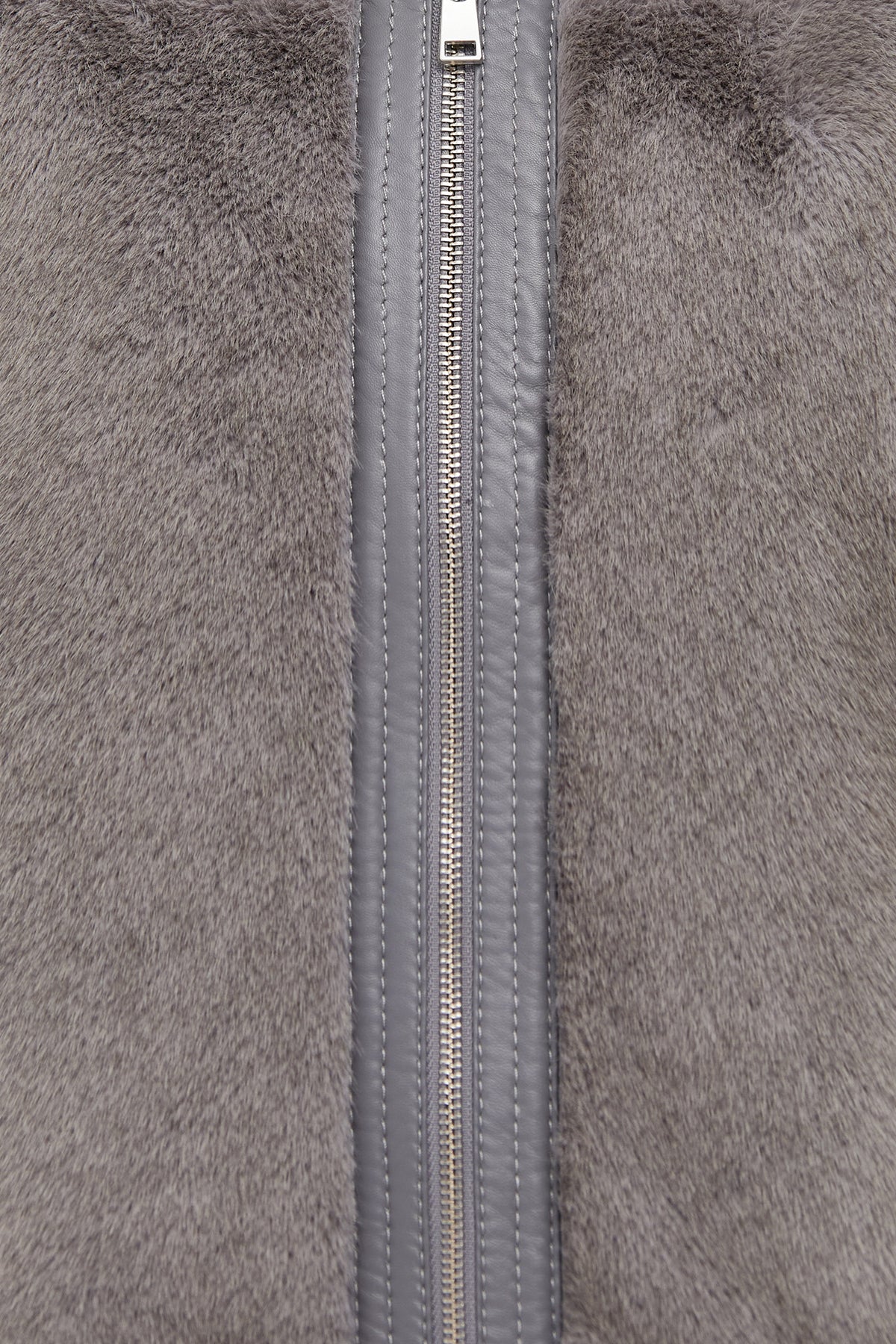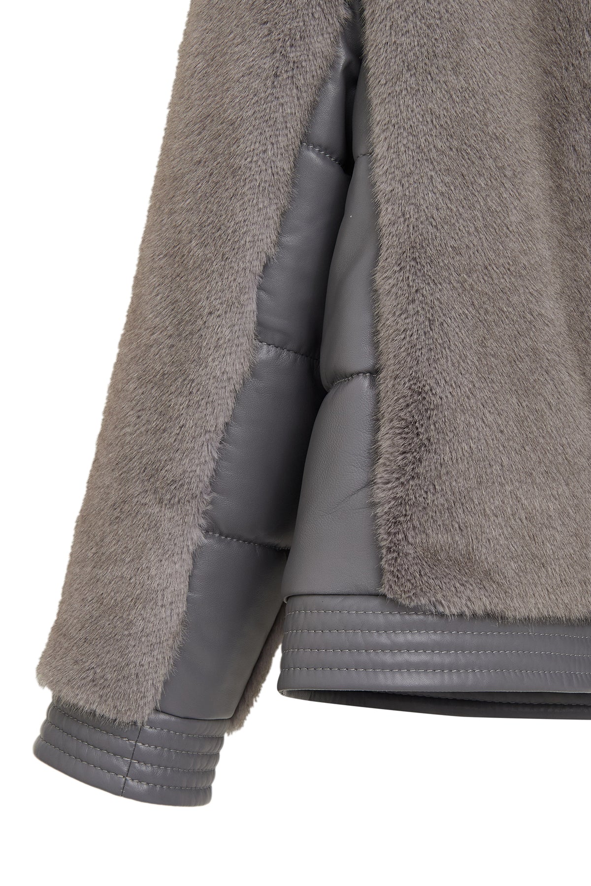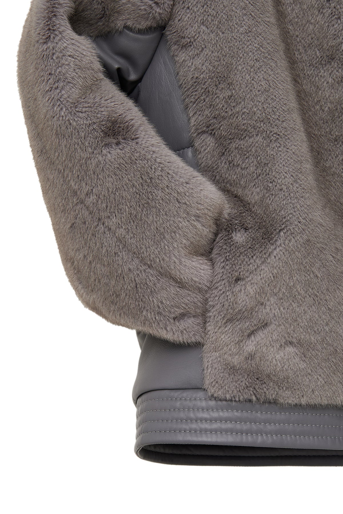 کاپشن زنانه Prag چرم تدی طوسی کلاهدار دری مد