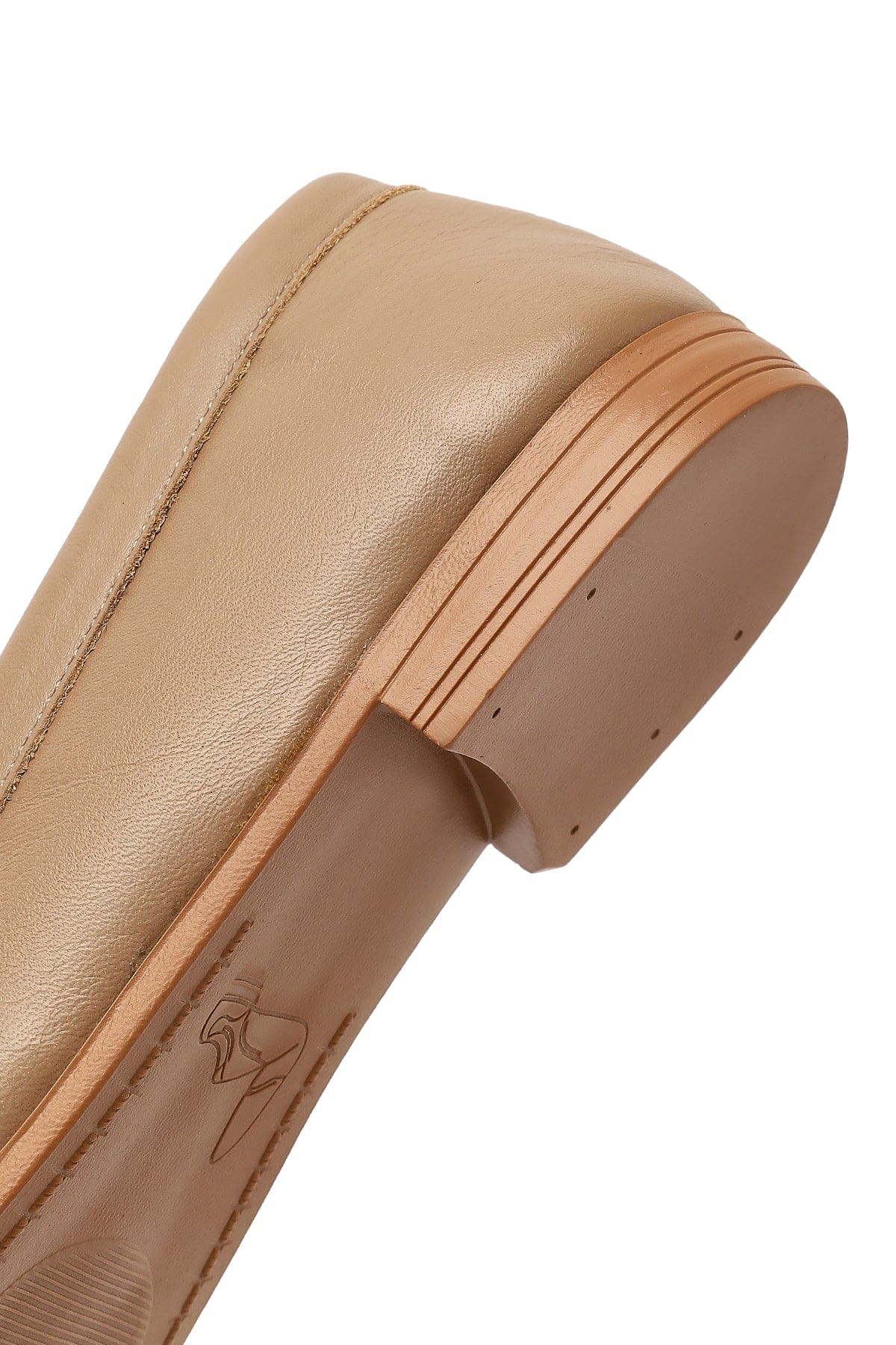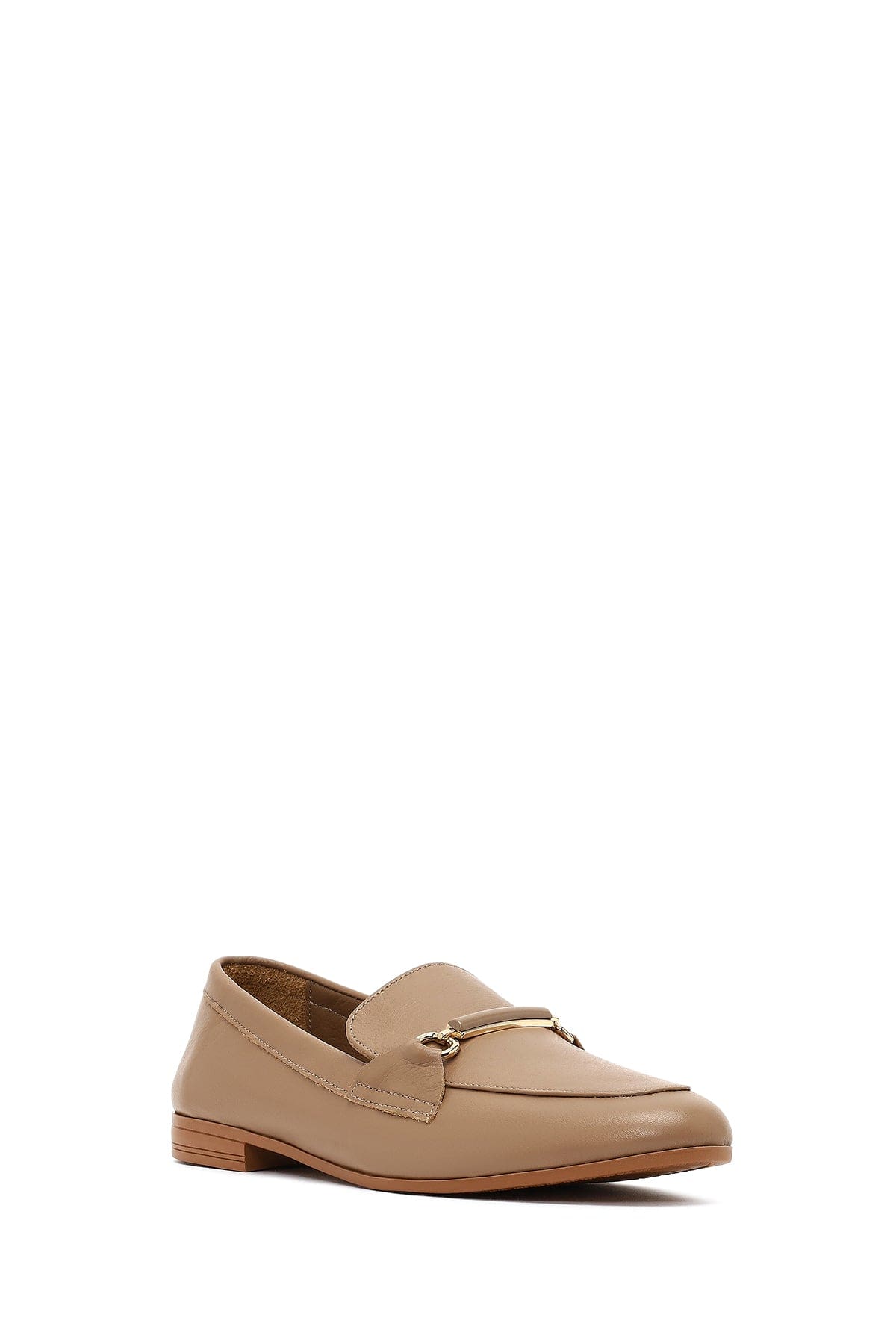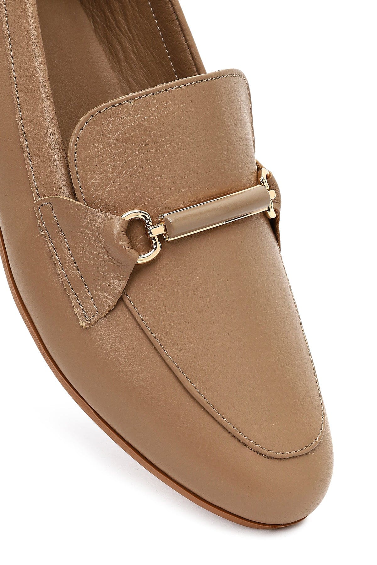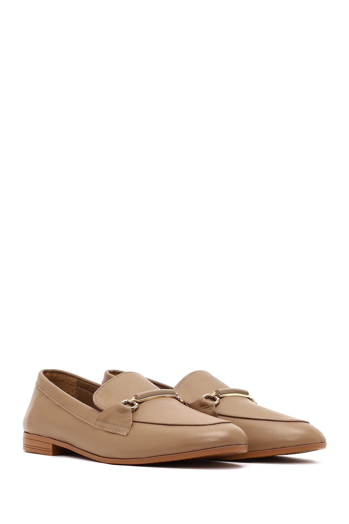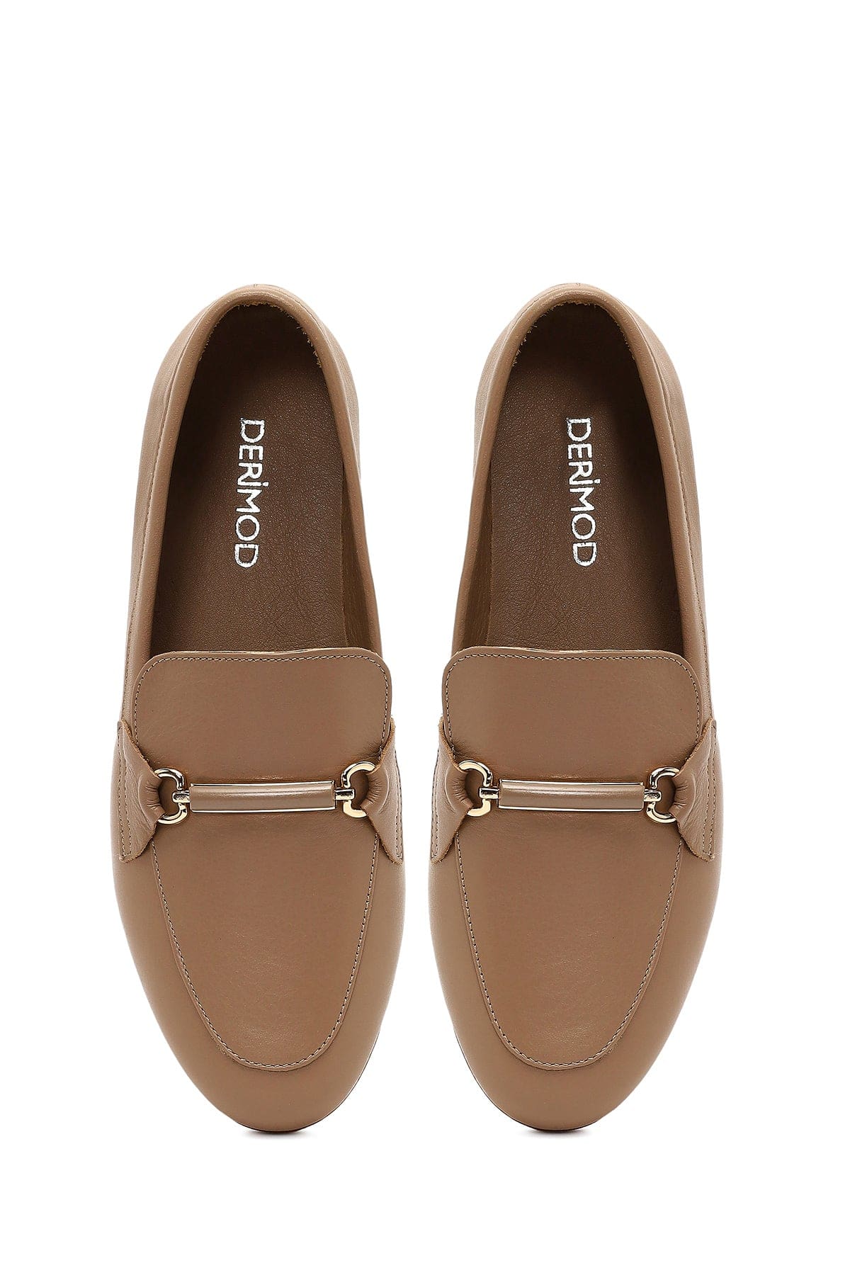 Kadın Pudra Toka Detaylı Deri Maskülen Loafer