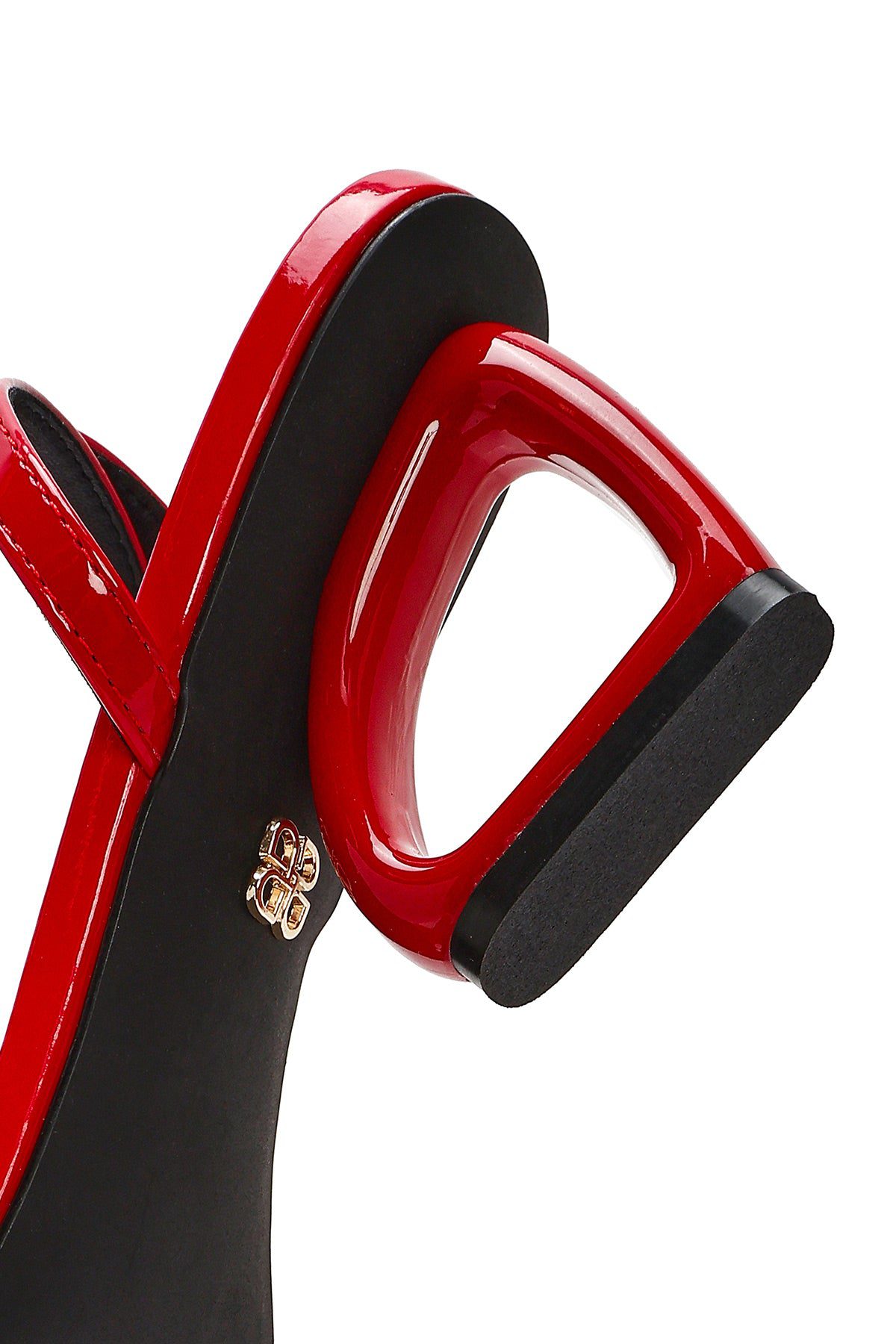 صندل زنانه قرمز بنددار پاشنهدار دری مد