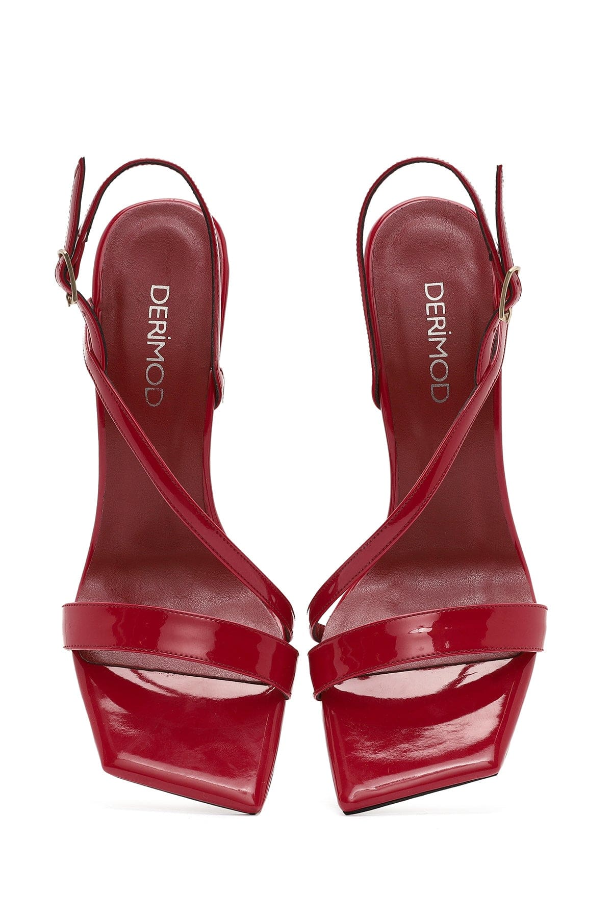 صندل زنانه قرمز بنددار پاشنه بلند نازک ورنی دری مد