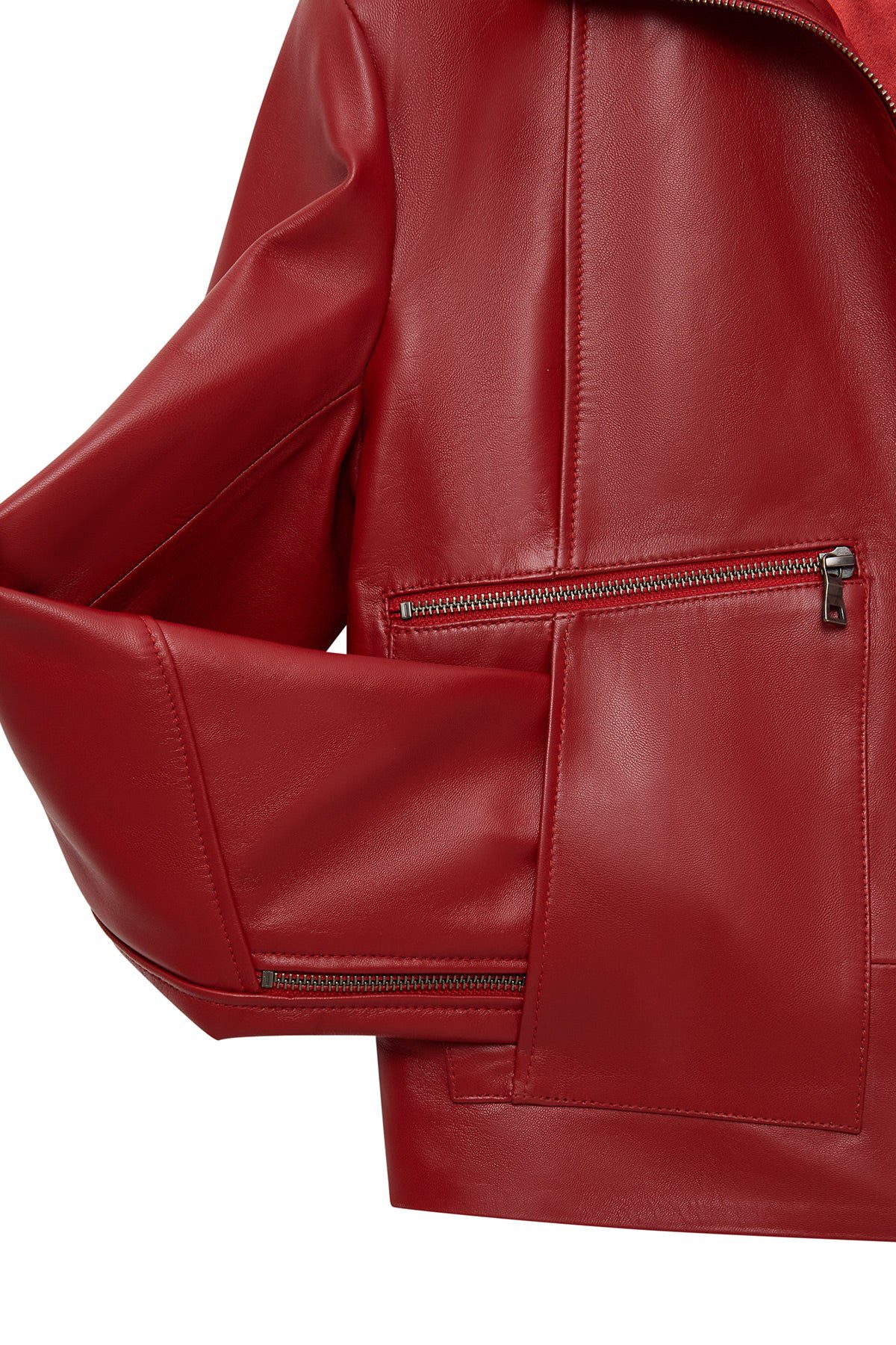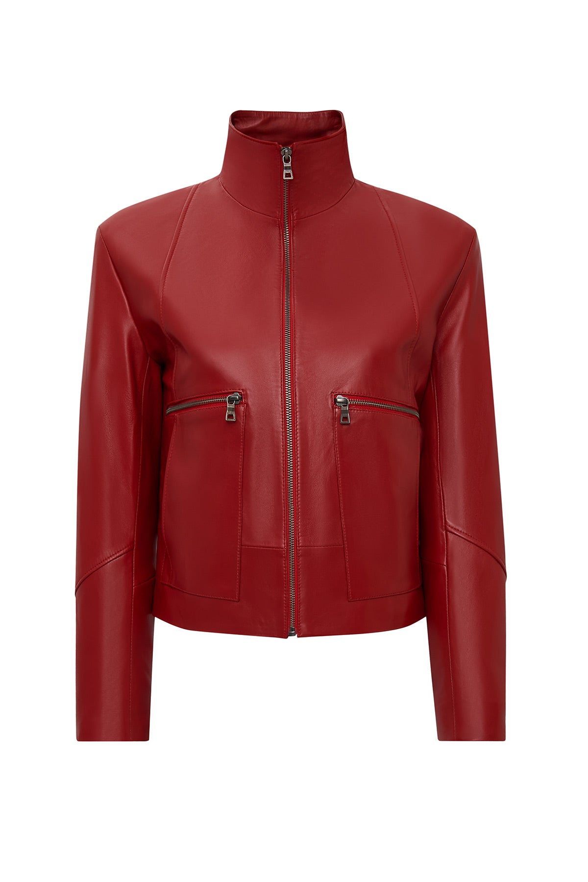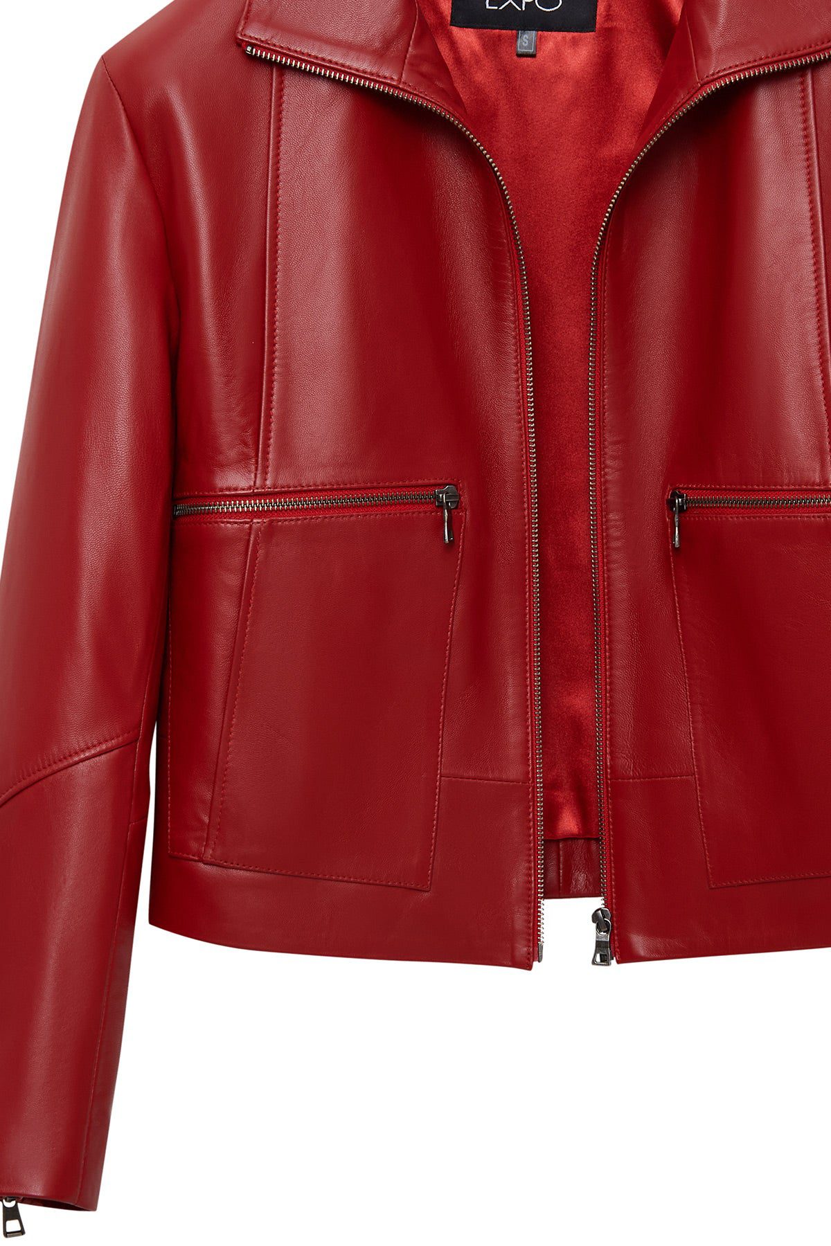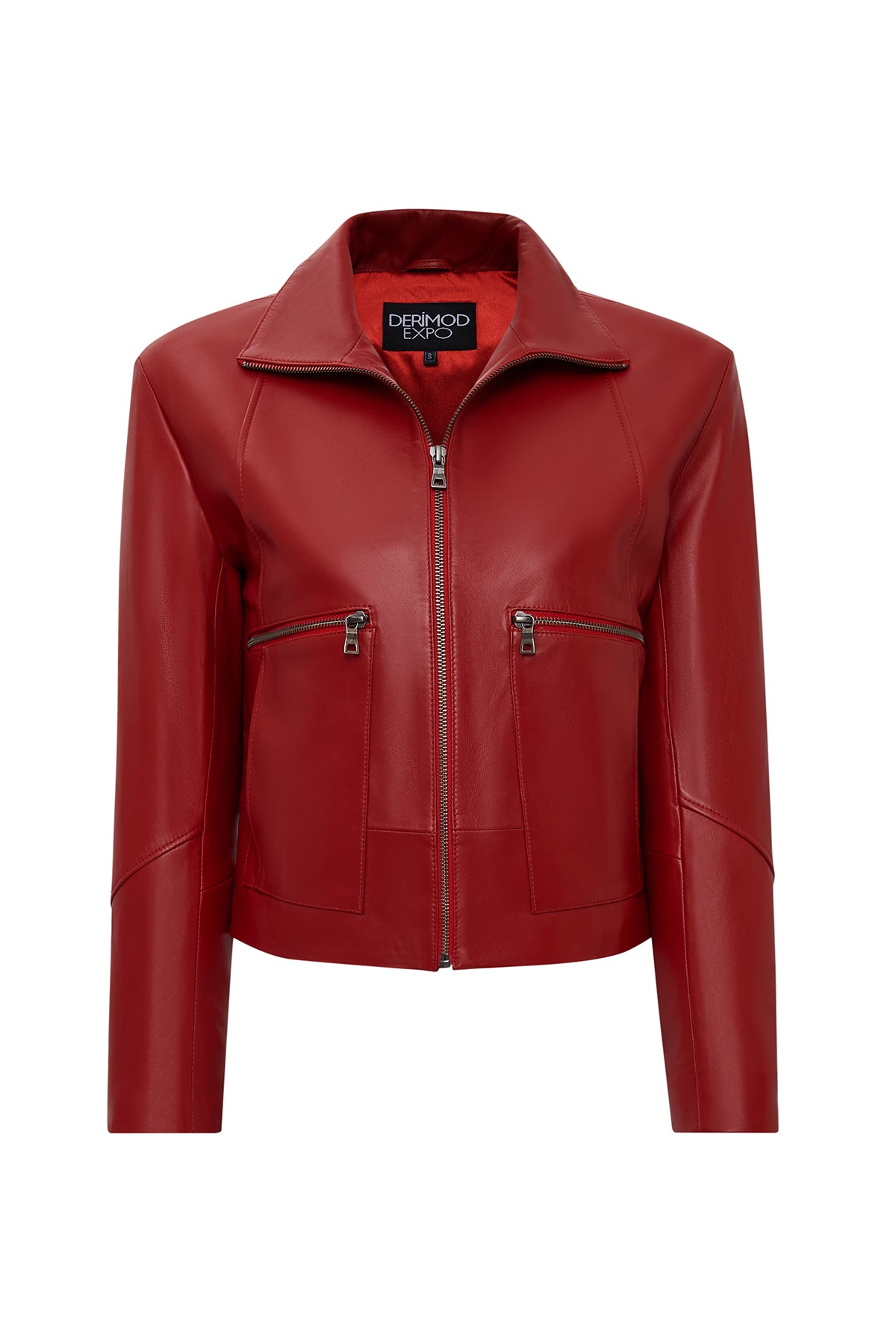 کت چرمی زنانه قرمز اورسایز یقه برگردان Dolores دری مد