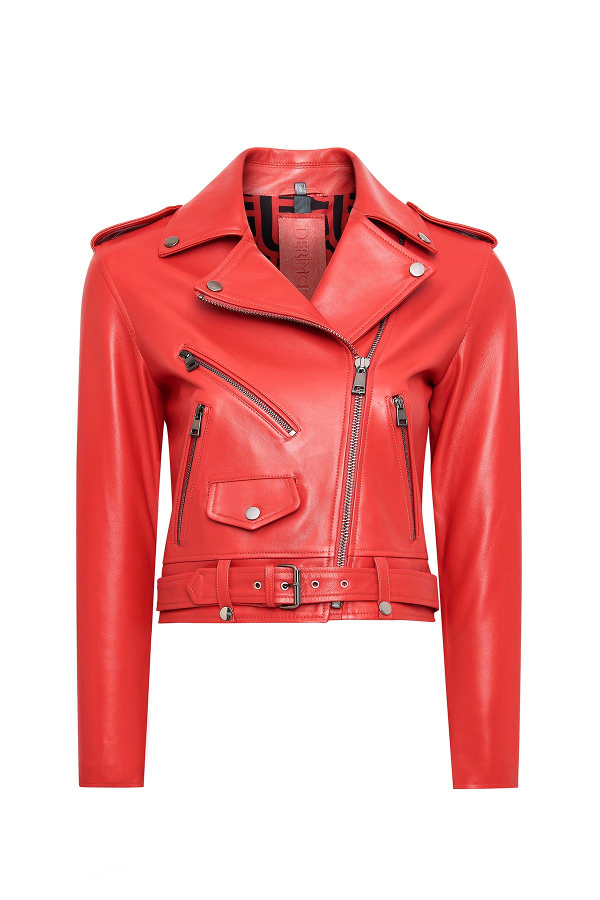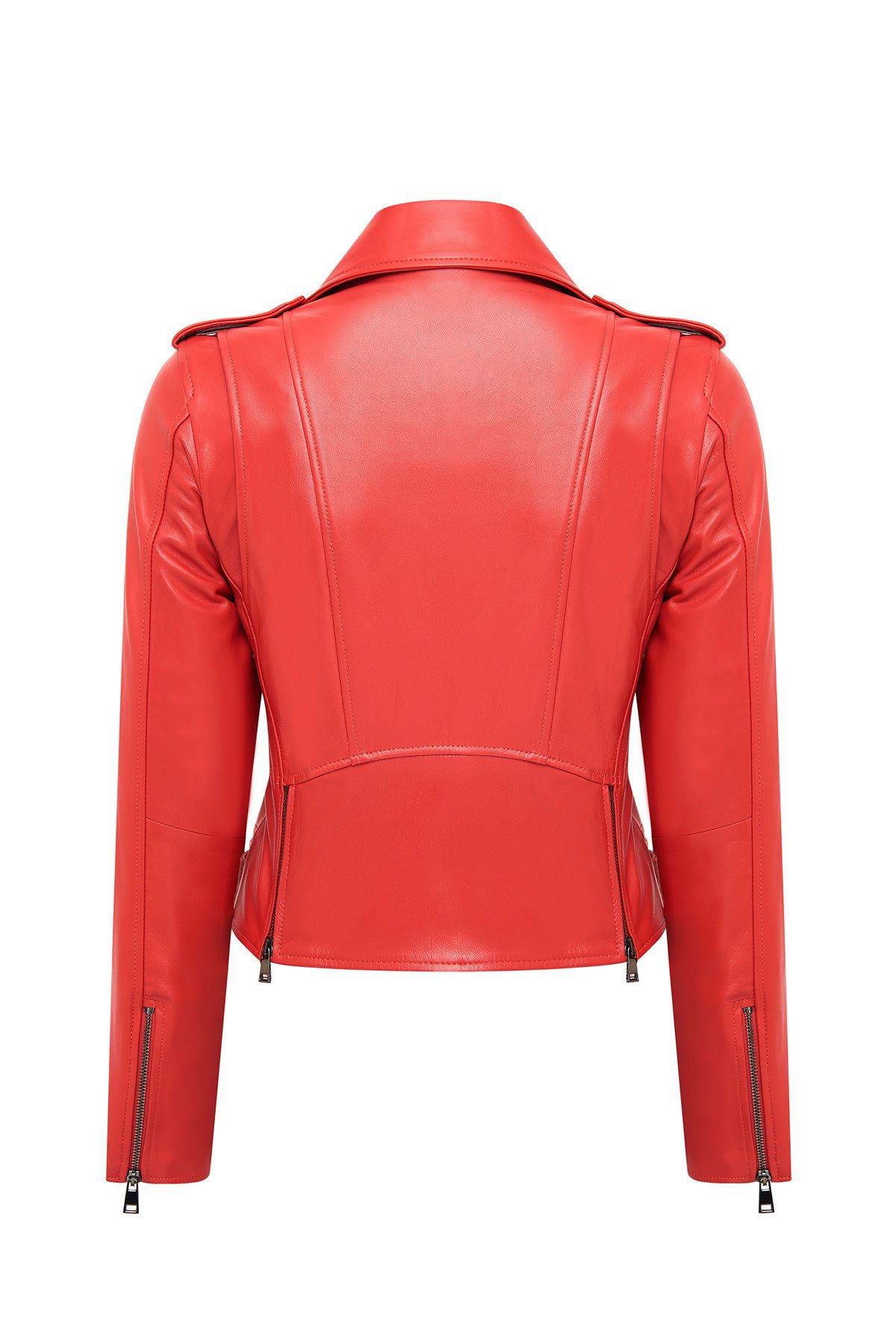 Newage Kadın Kırmızı Slim-Fit Biker Deri Ceket