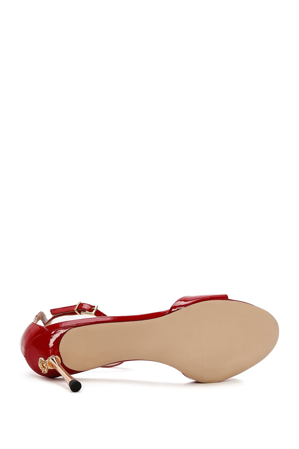 Kadın Kırmızı Bilekten Bantlı Yüksek İnce Topuklu Rugan Deri Ayakkabı