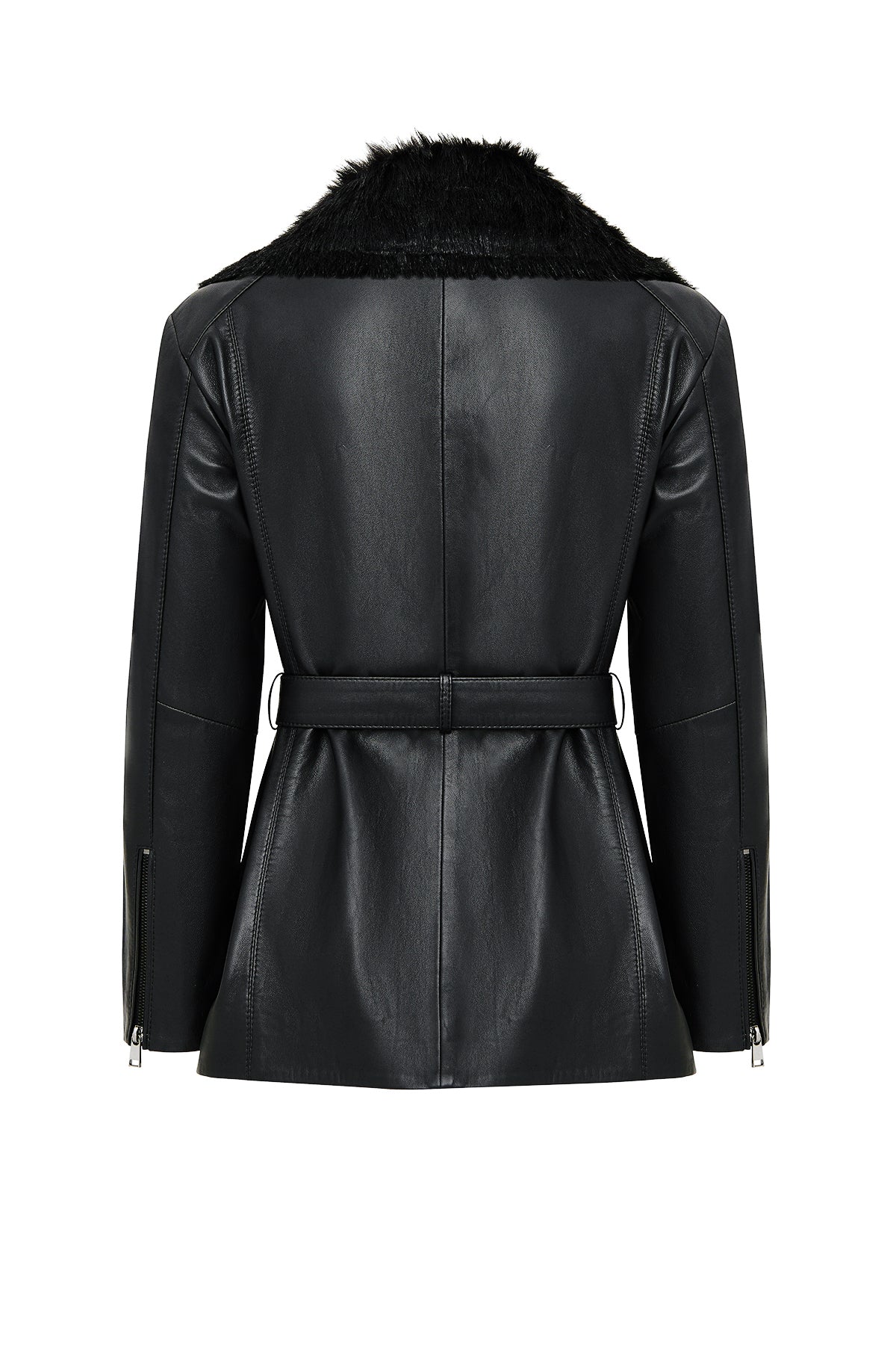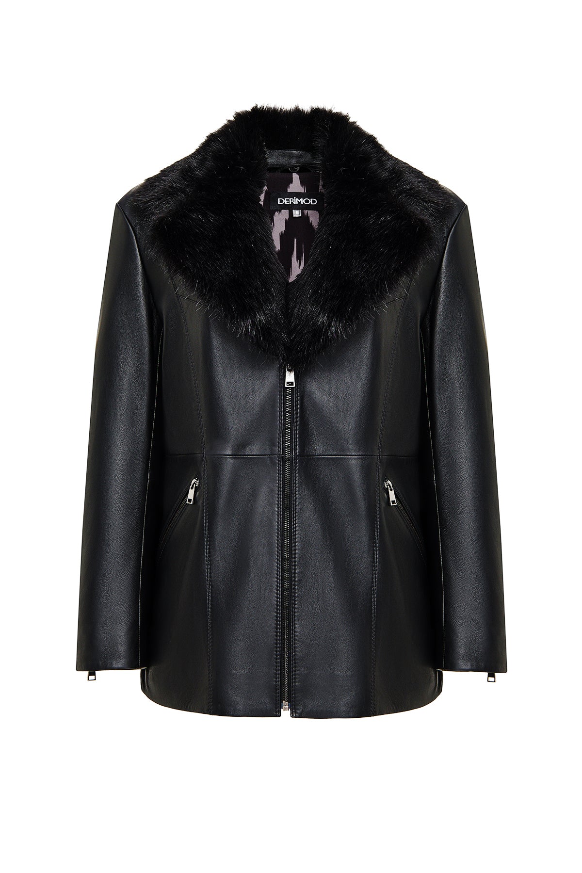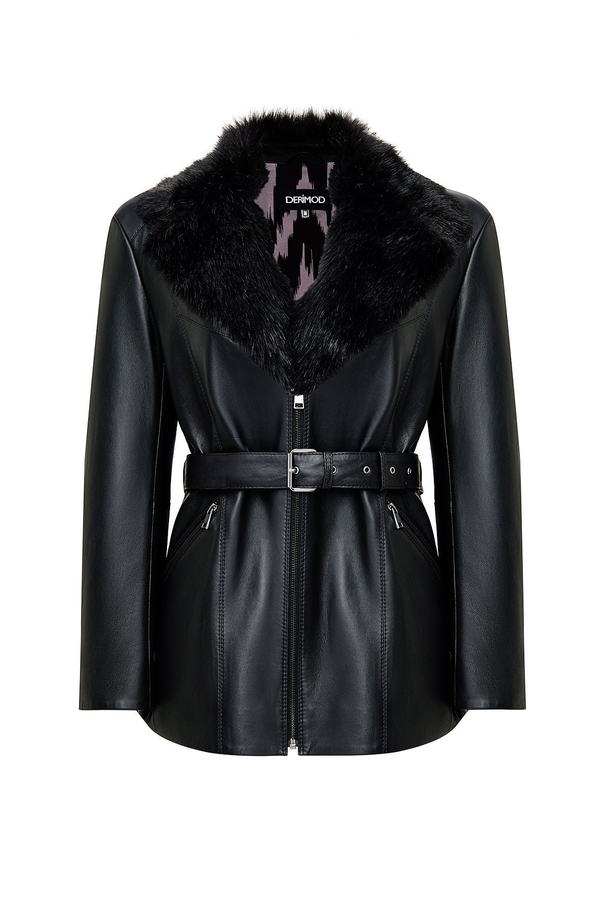 کاپشن زنانه Scarlet چرم مشکی یقهخزدار دری مد