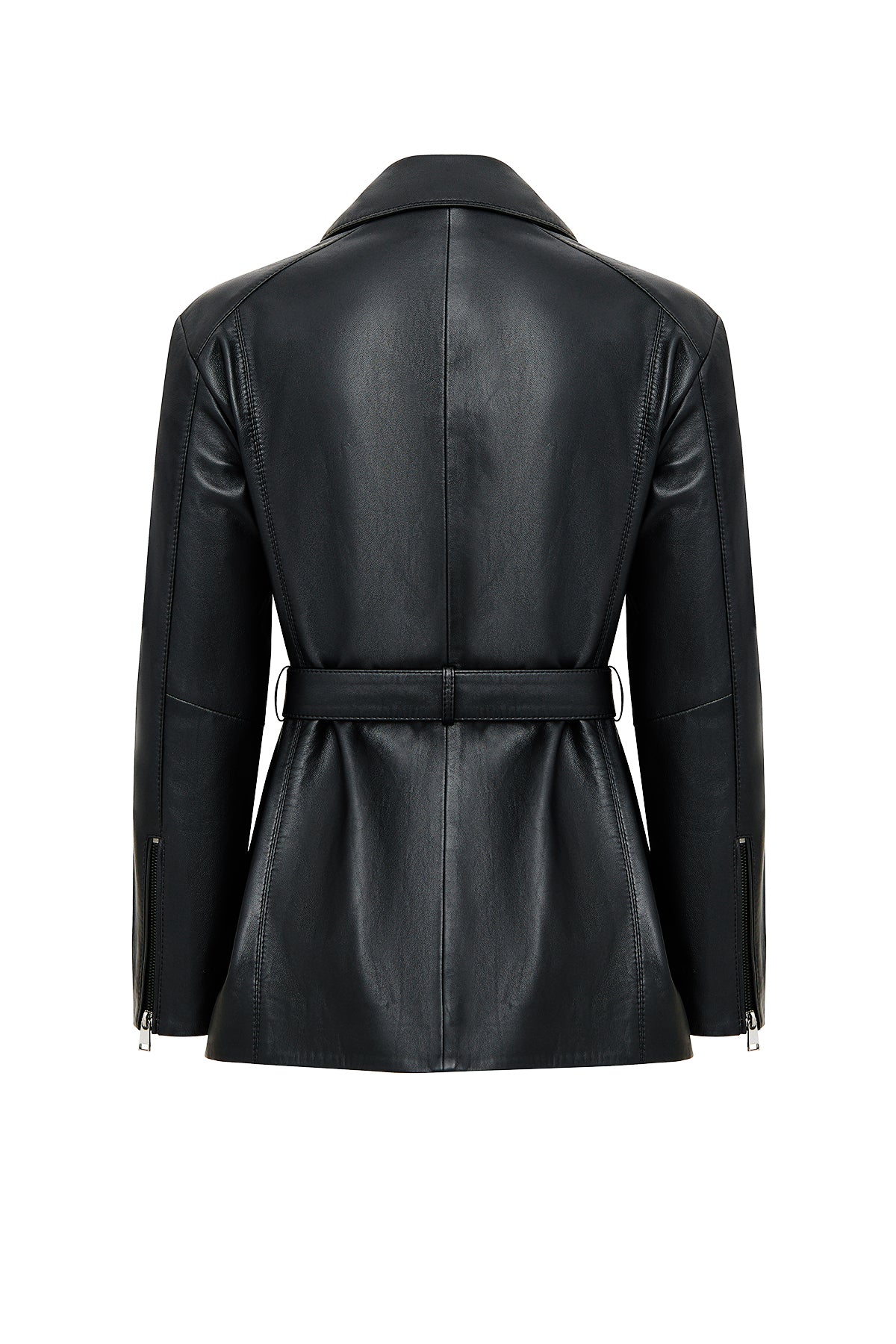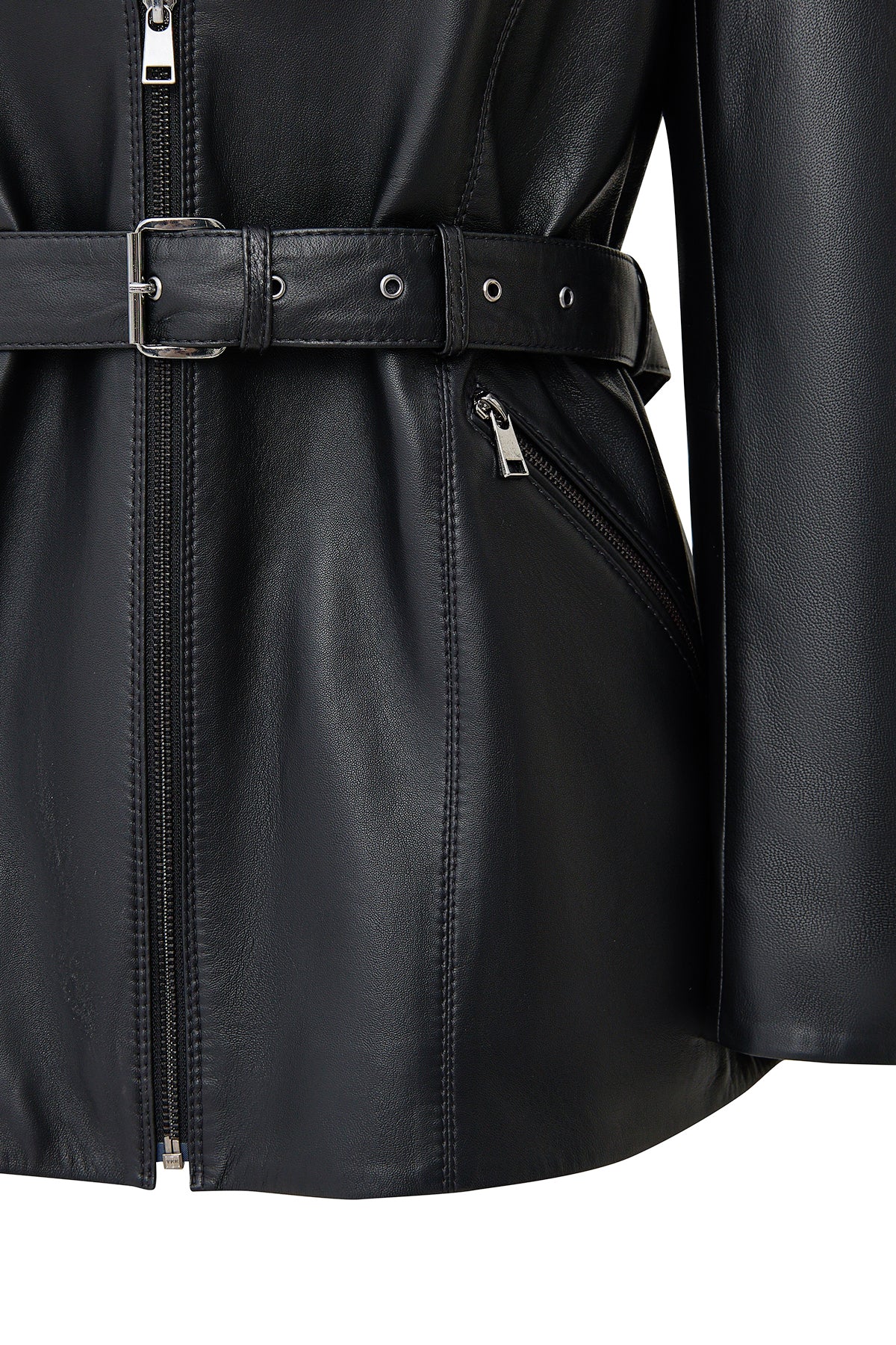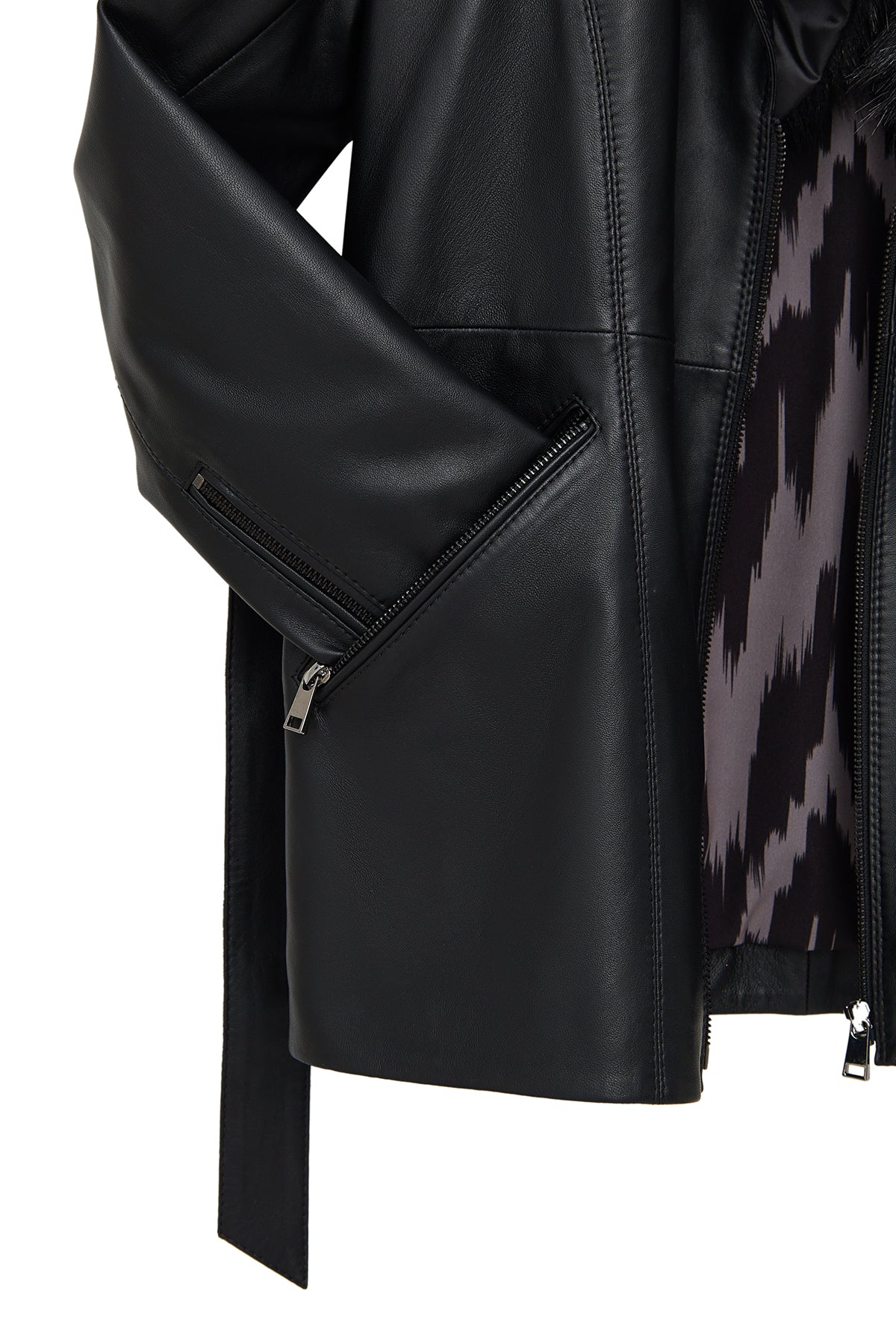 کاپشن زنانه Scarlet چرم مشکی یقهخزدار دری مد