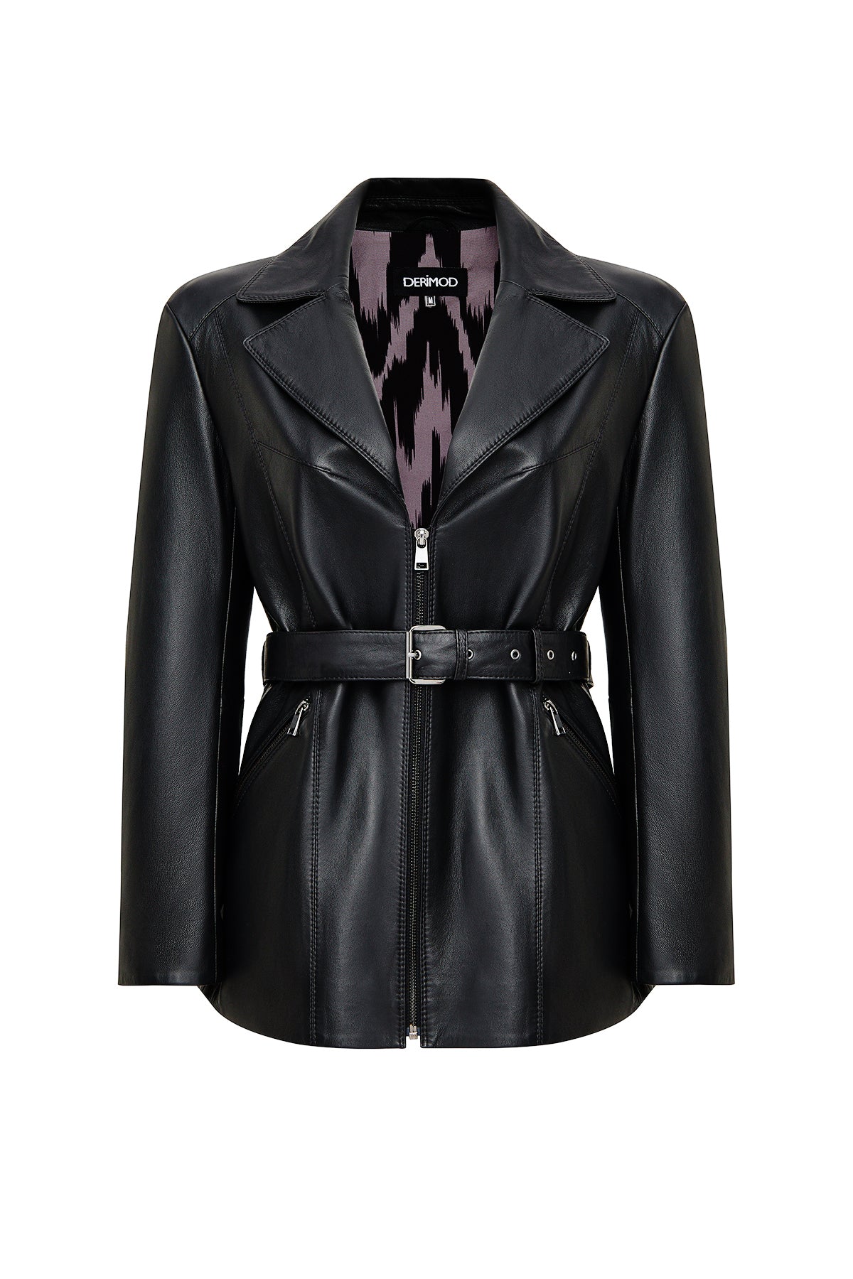 Scarlet Kadın Siyah Kürk Yaka Deri Mont