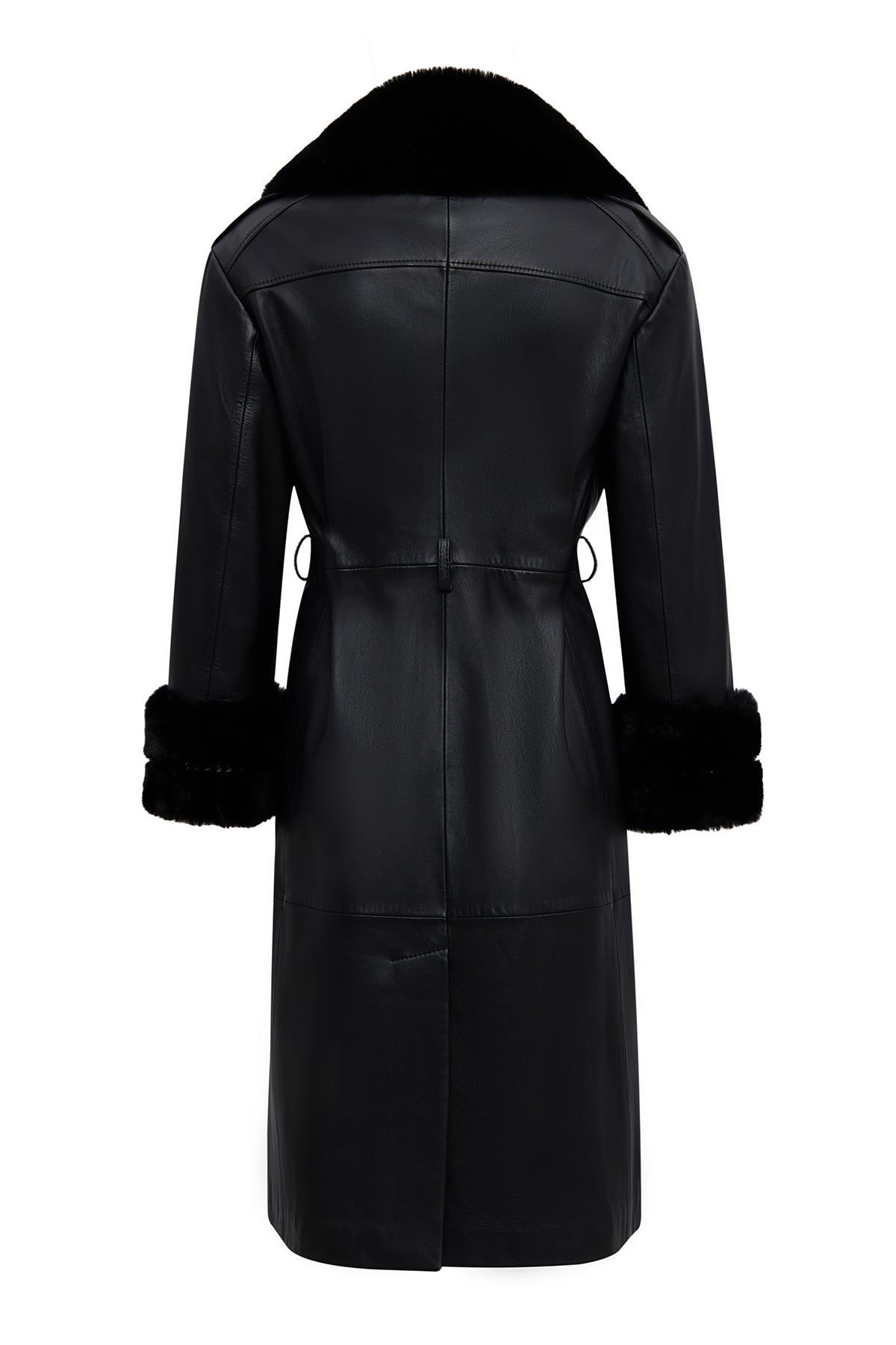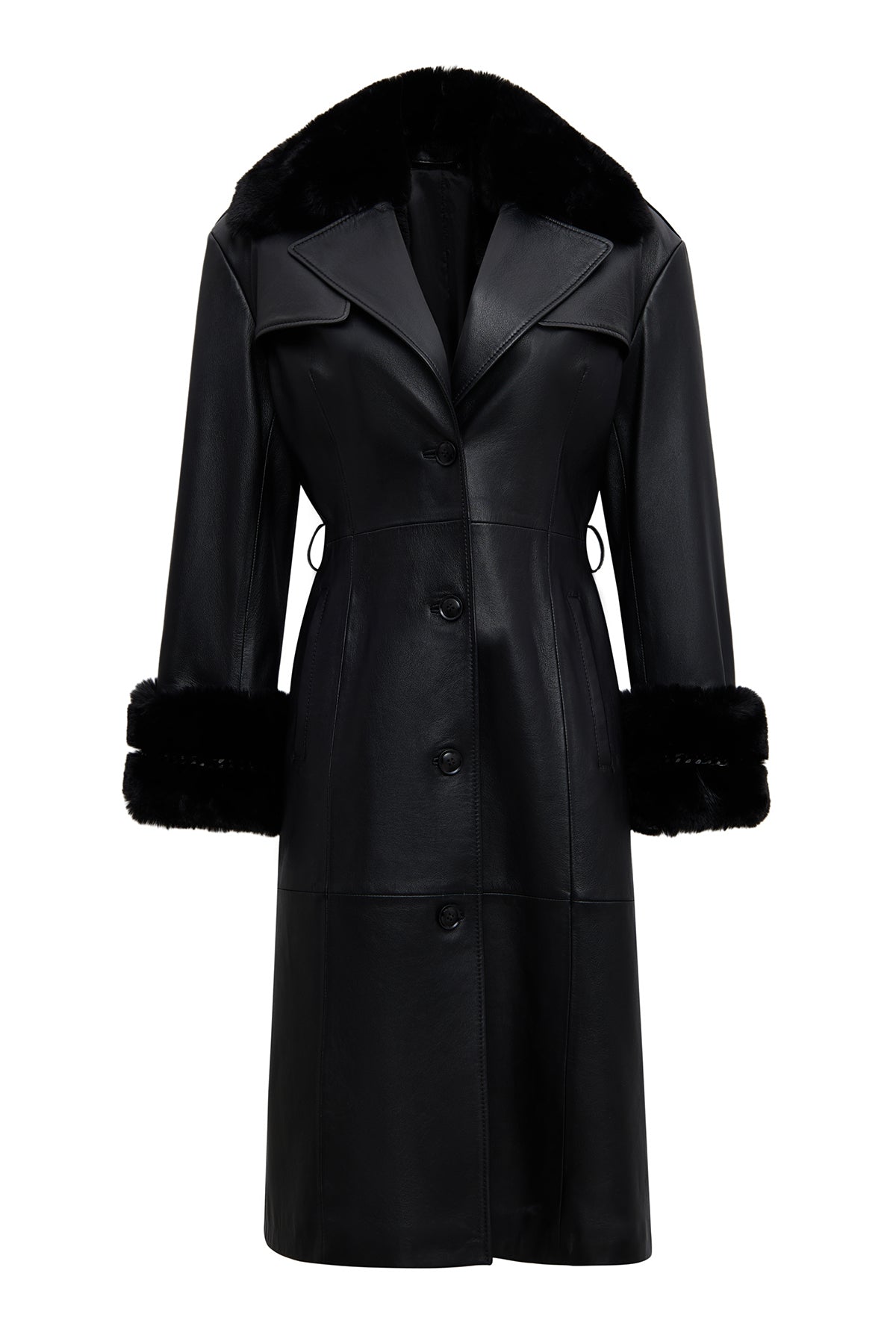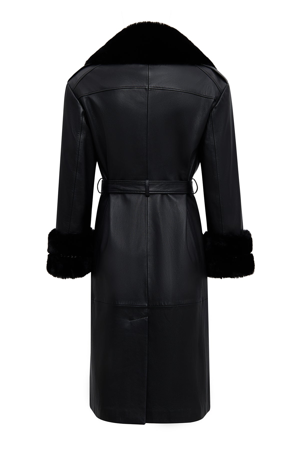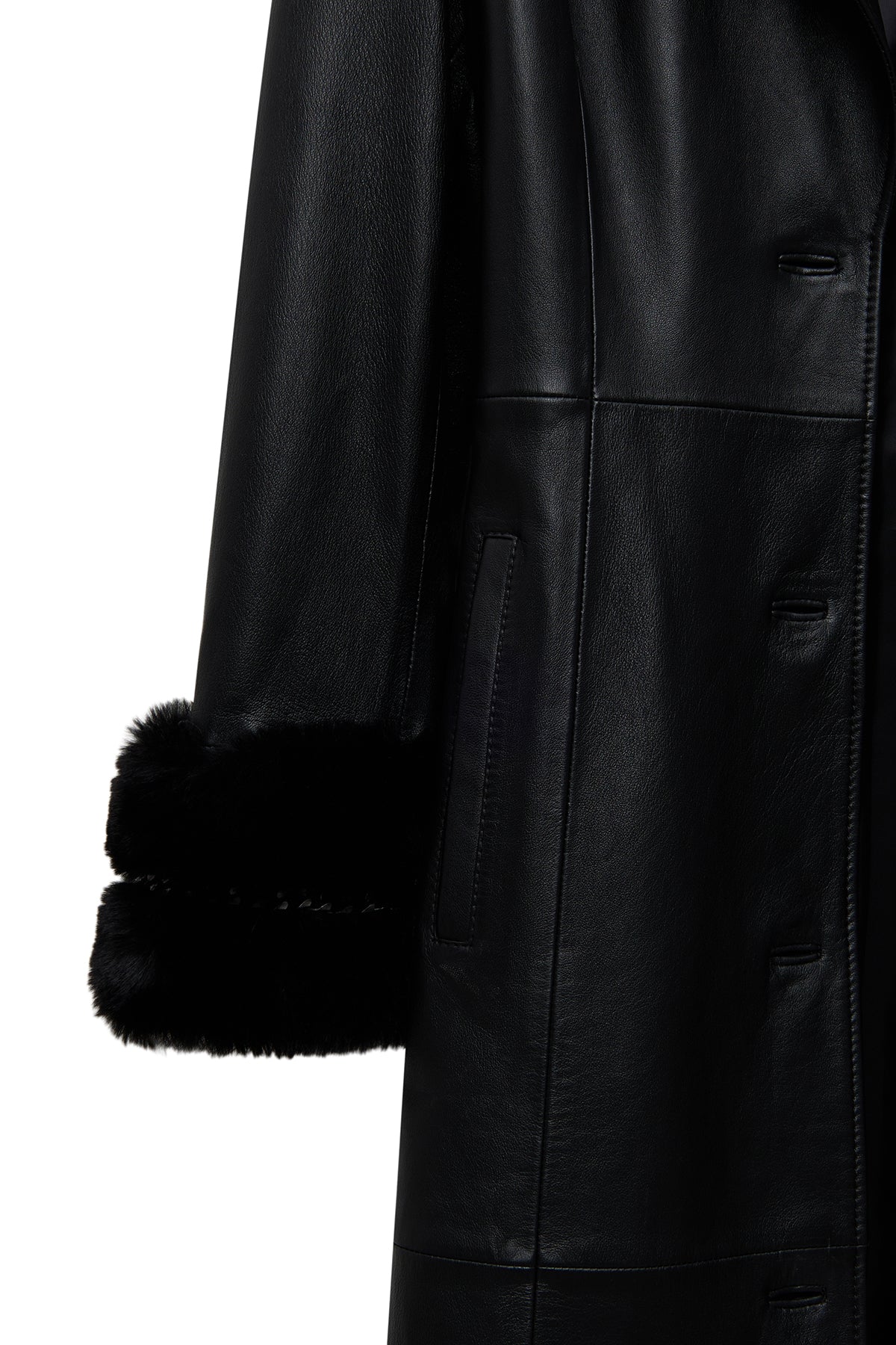 ترنچکت زنانه Selena چرم مشکی یقهخزدار دری مد