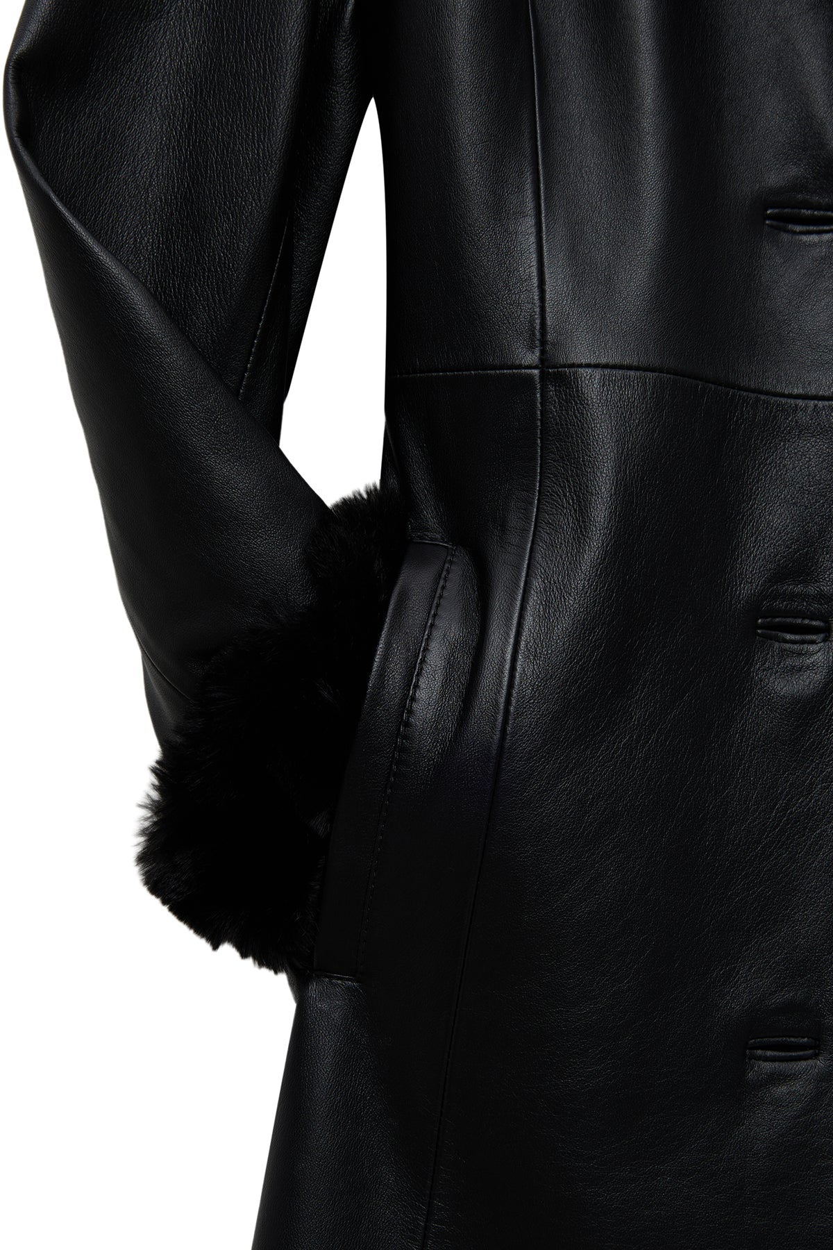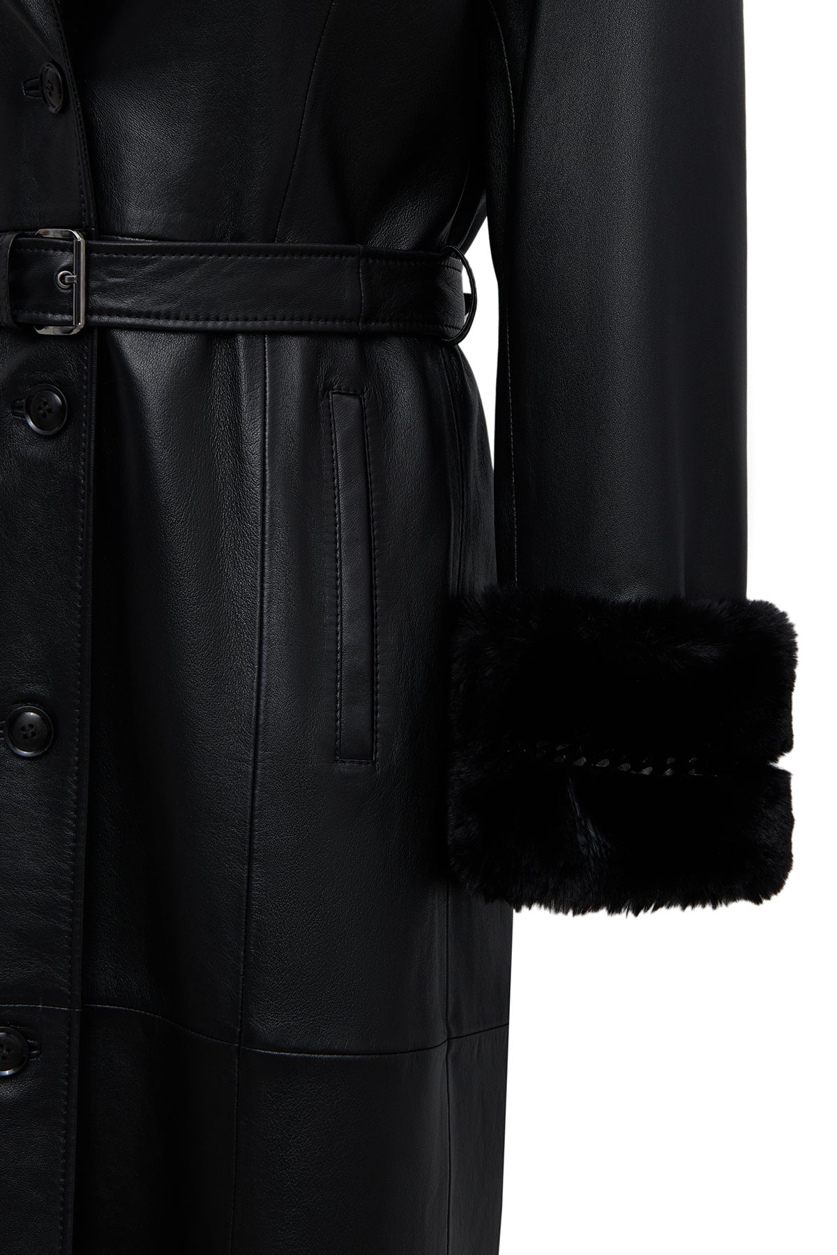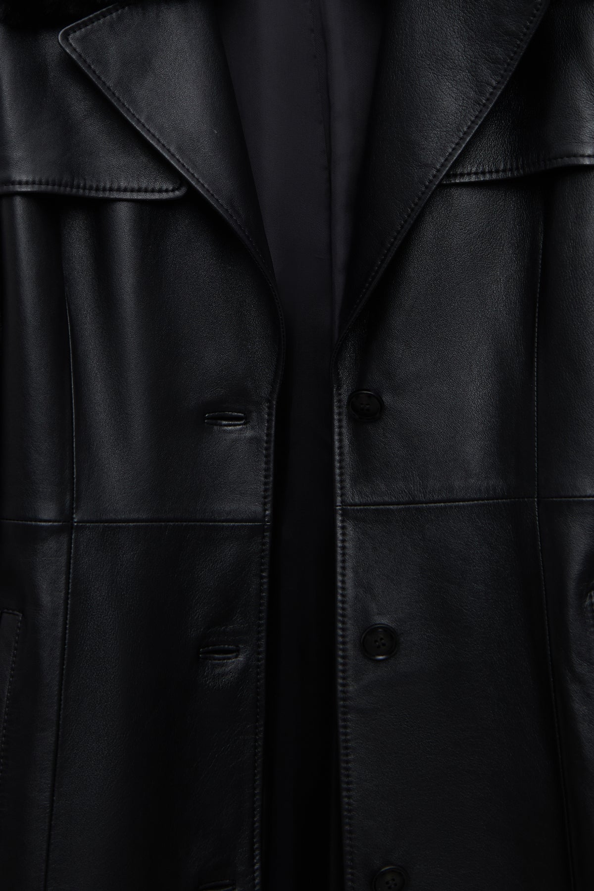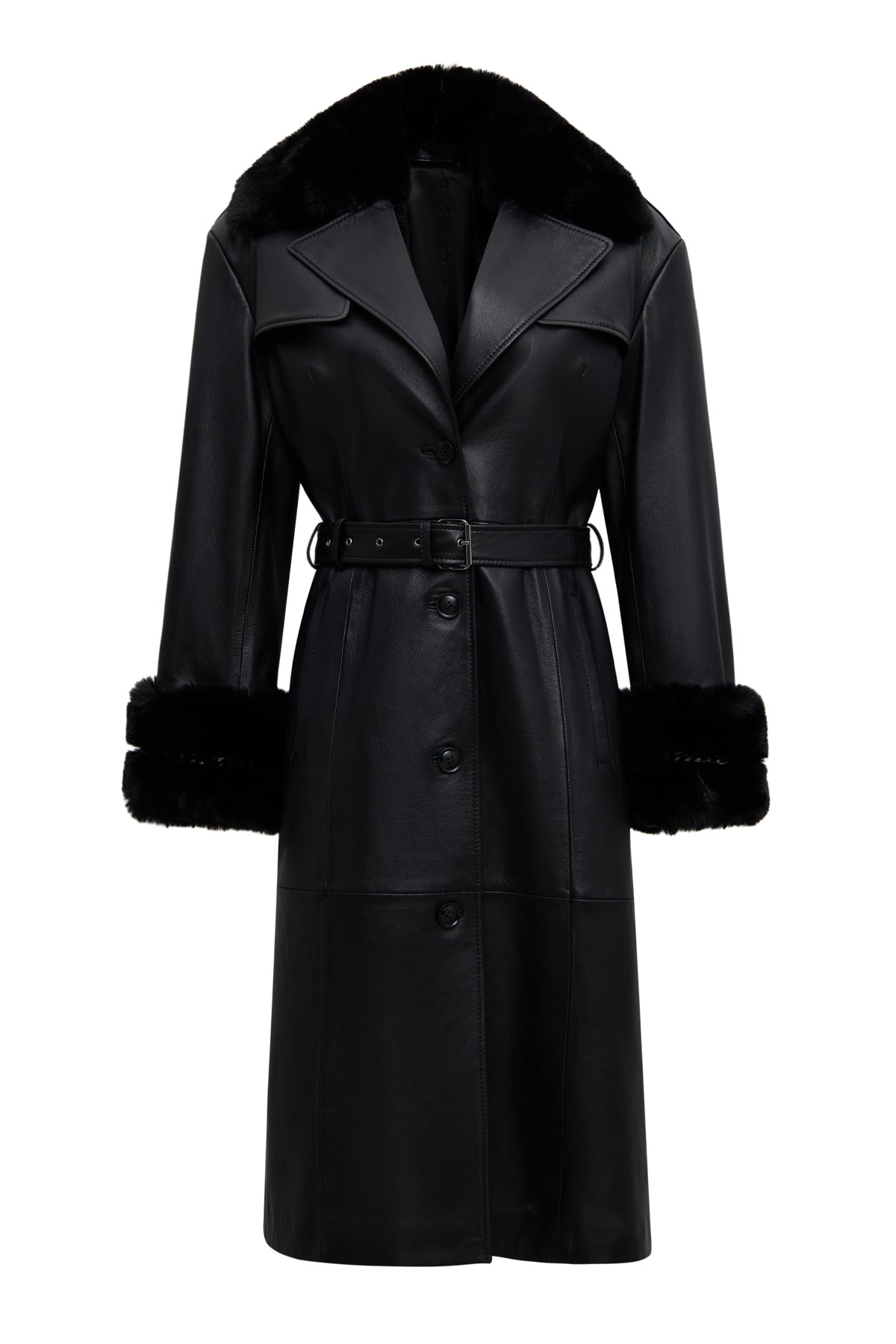 ترنچکت زنانه Selena چرم مشکی یقهخزدار دری مد