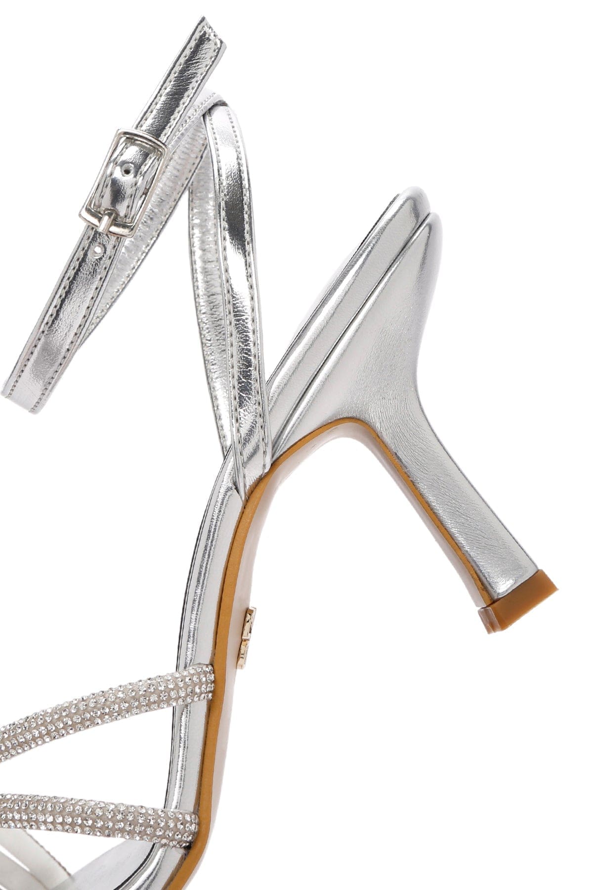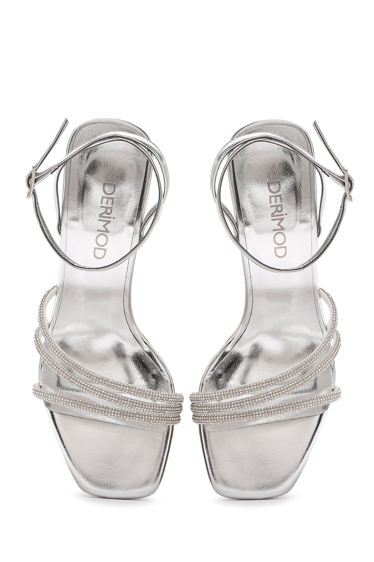 Kadın Gümüş Bilekten Bantlı Taşlı İnce Topuklu Sandalet