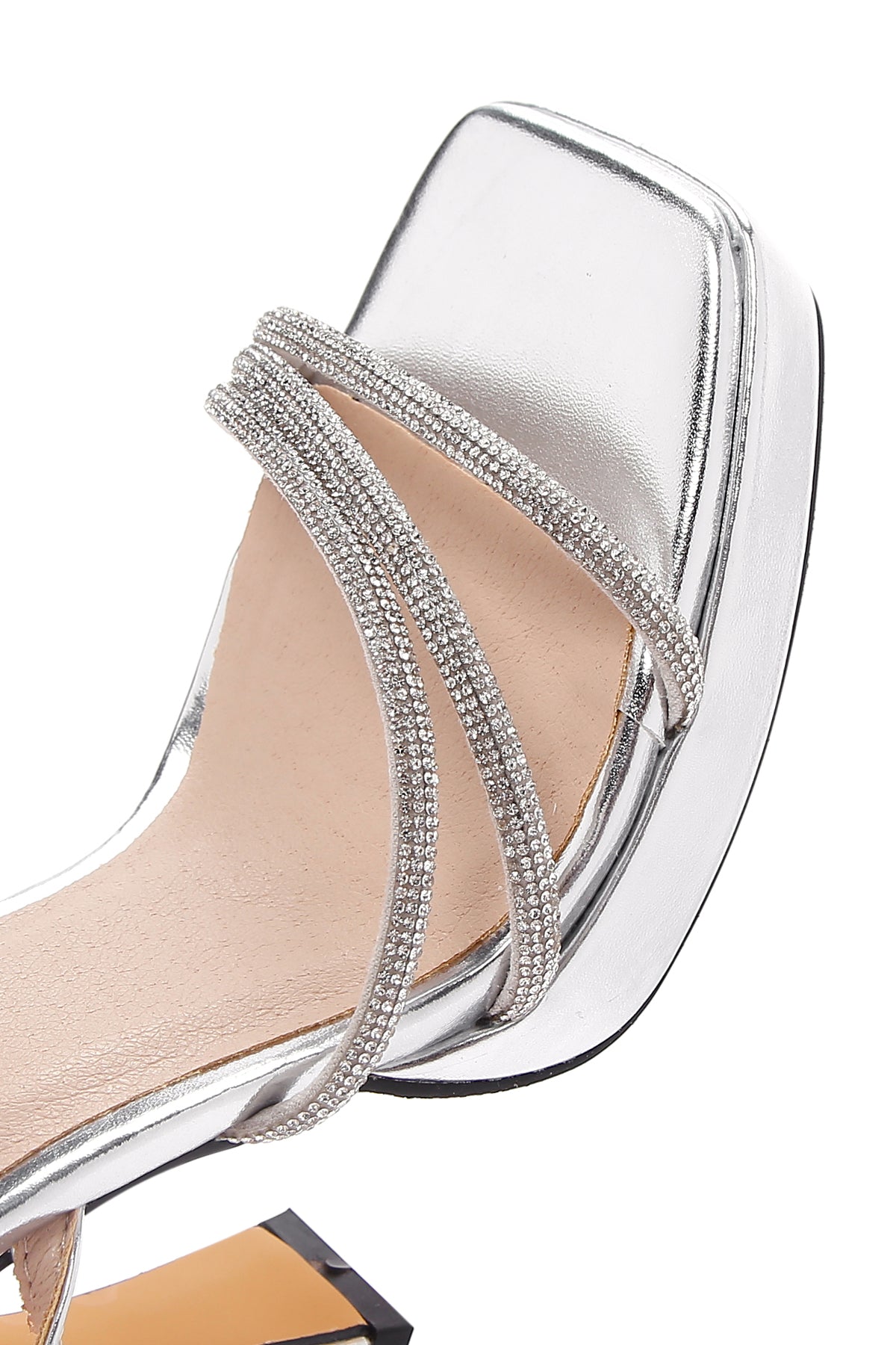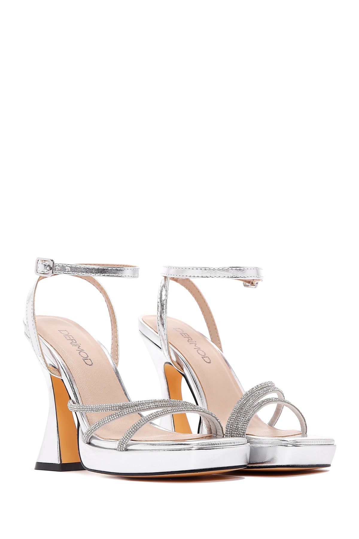 صندل زنانه نقرهای بندی پاشنهبلند ضخیم مجلسی دری مد