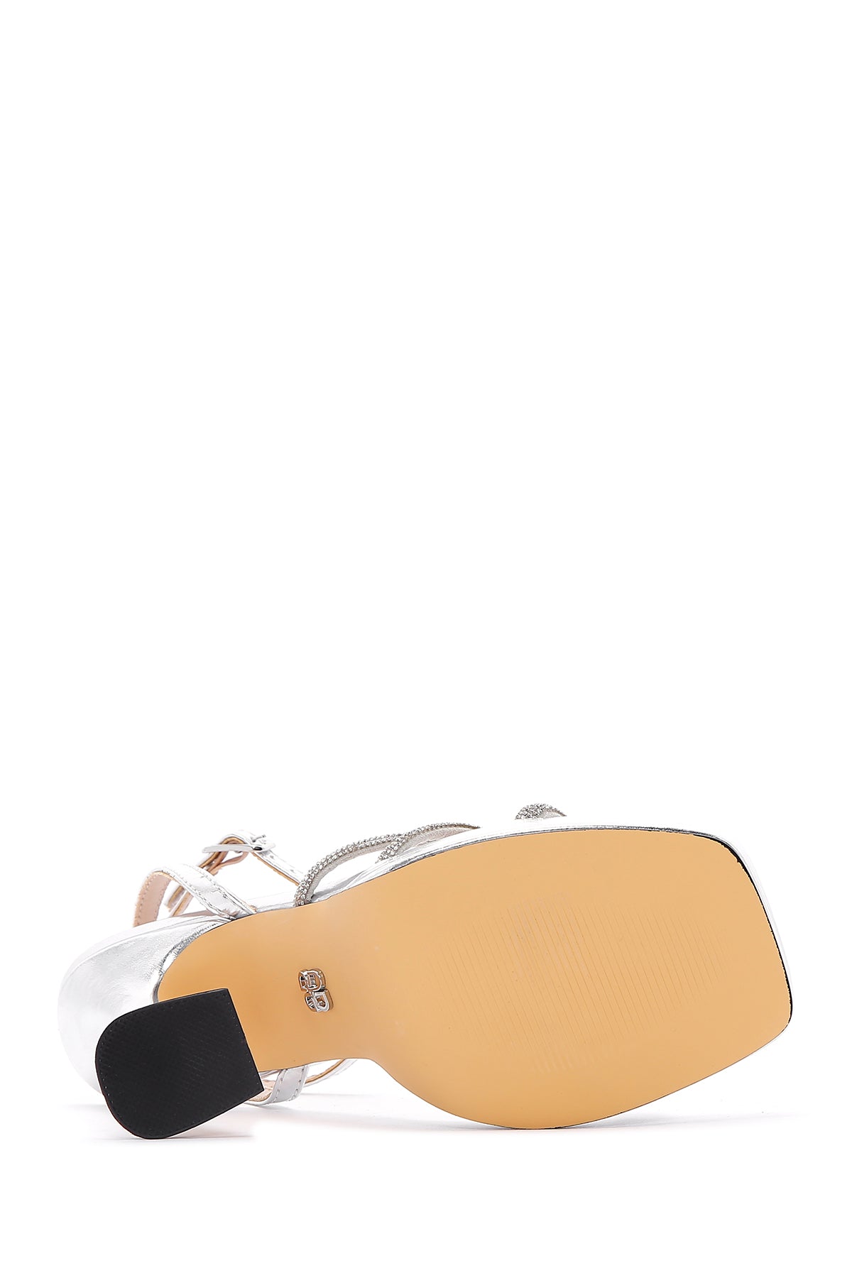 Kadın Gümüş Bilekten Bağlamalı Kalın Yüksek Topuklu Abiye Sandalet