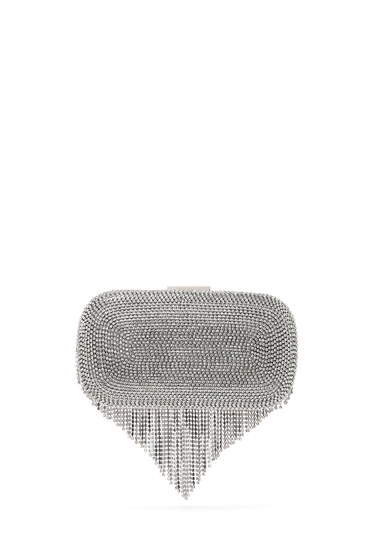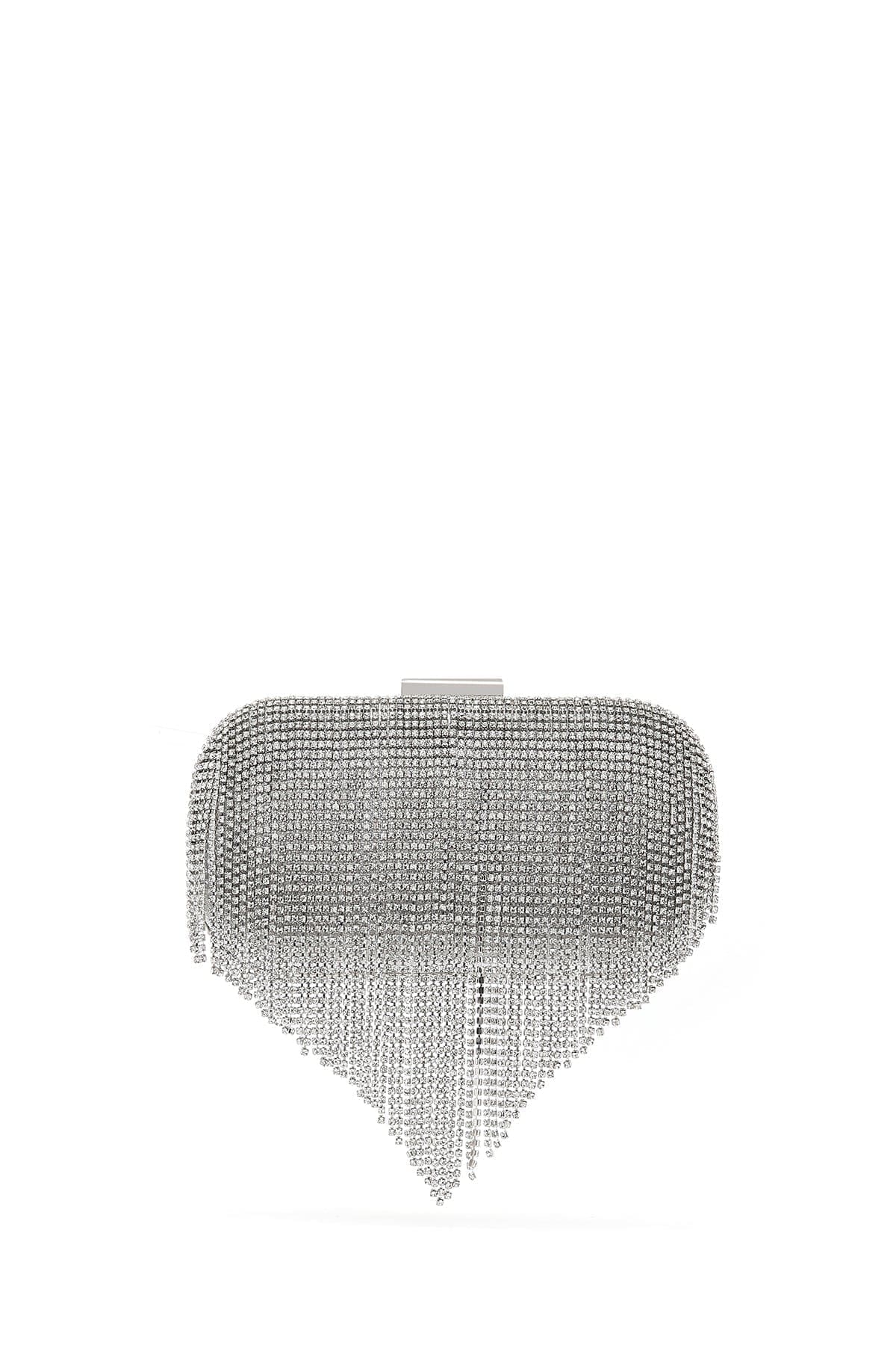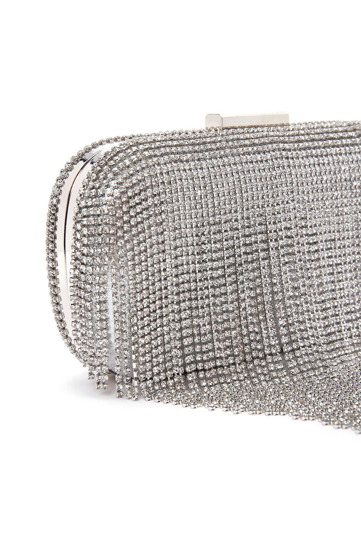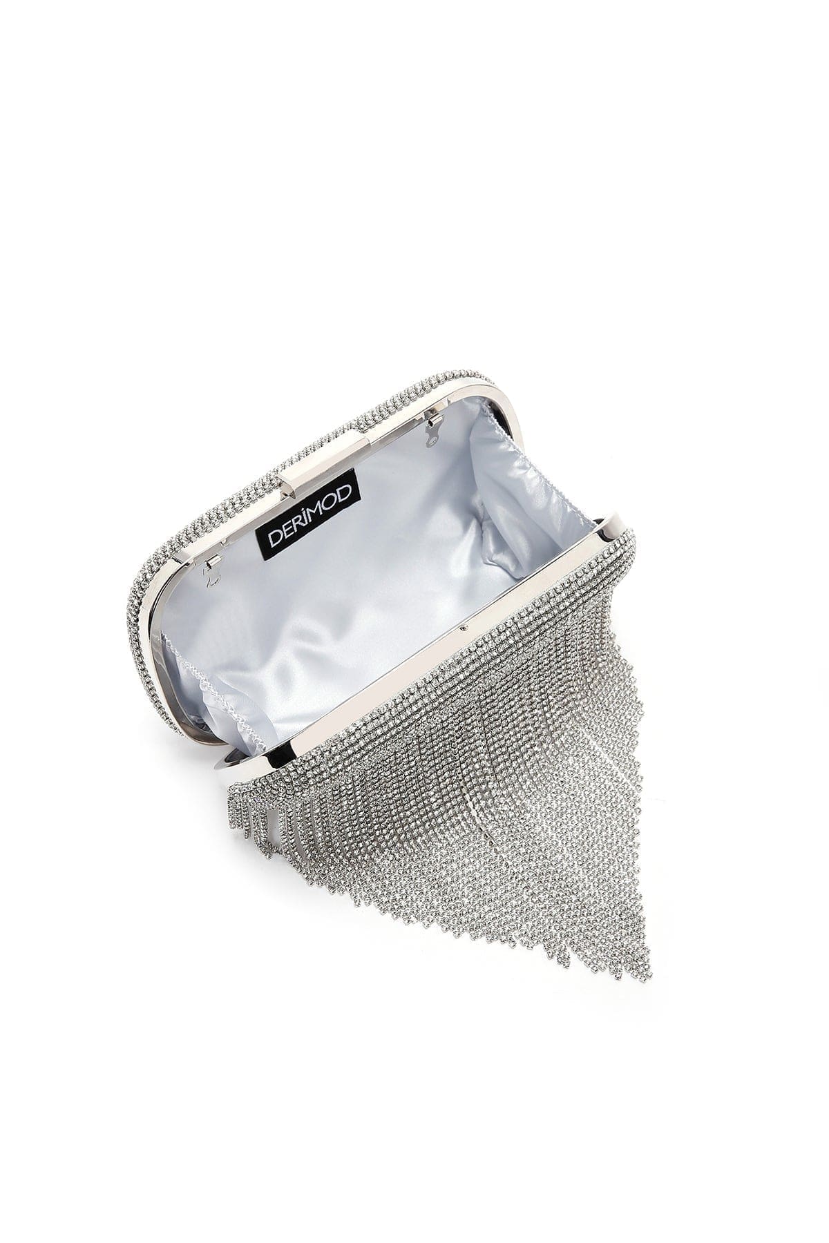 Kadın Gümüş Uzun Zincir Askılı Taşlı Abiye Mini Portföy Çanta