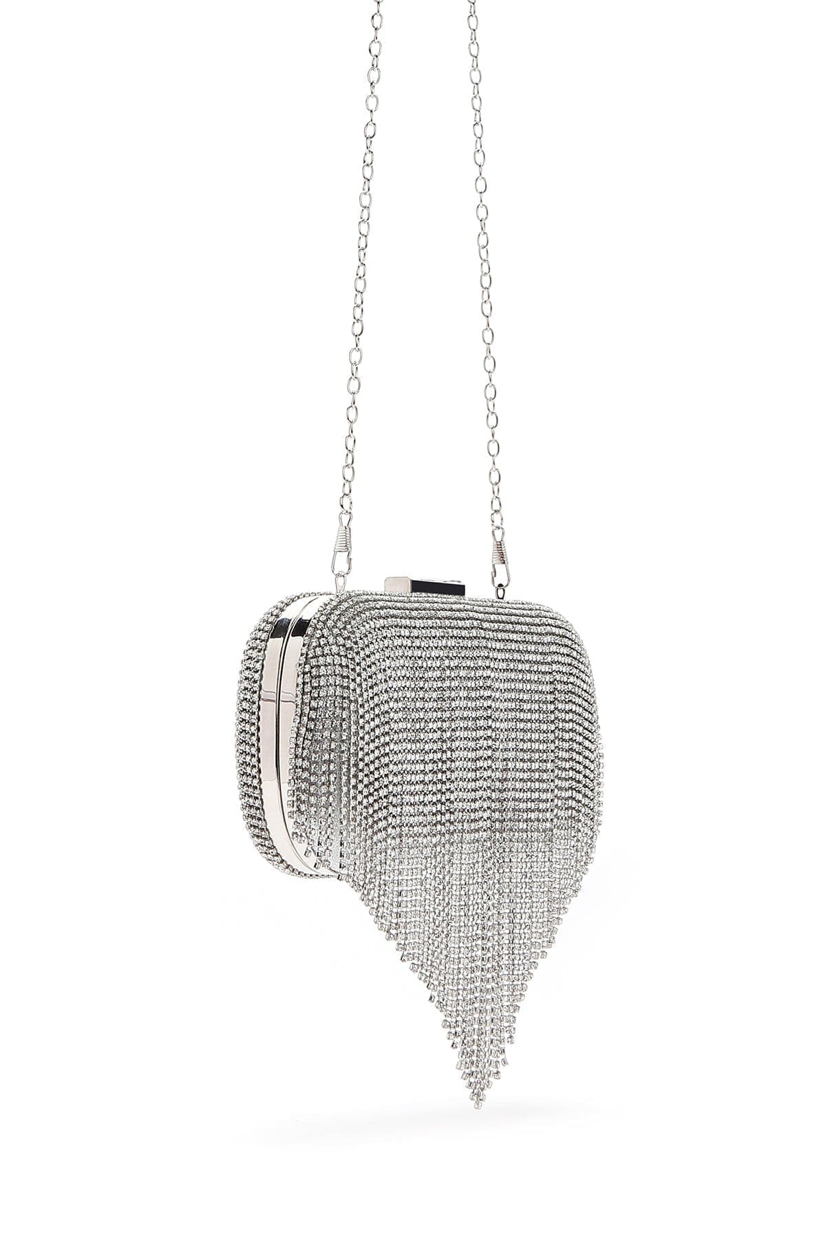 کیف مینی کلاچ زنانه نقرهای بند بلند زنجیری نگیندار دری مد