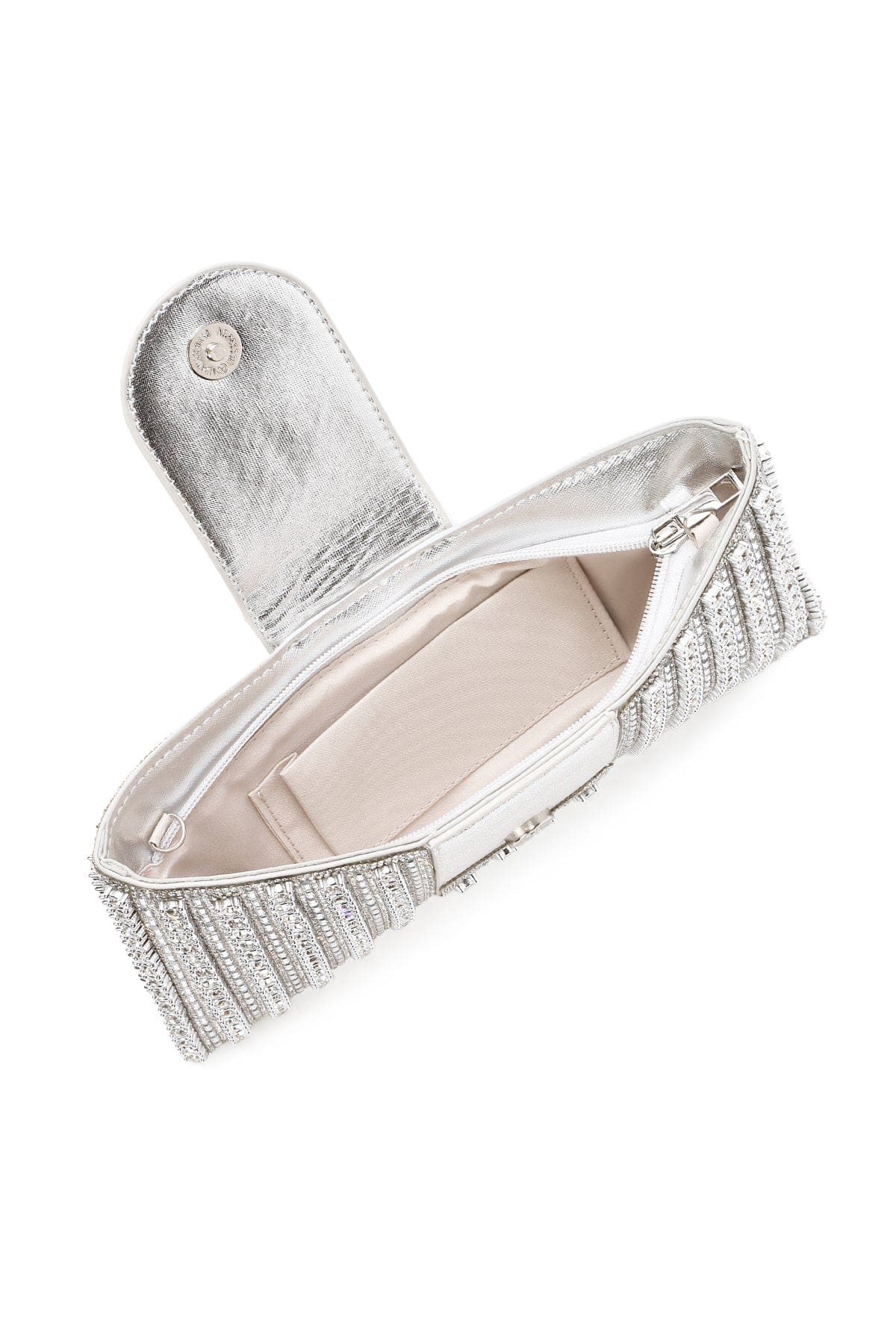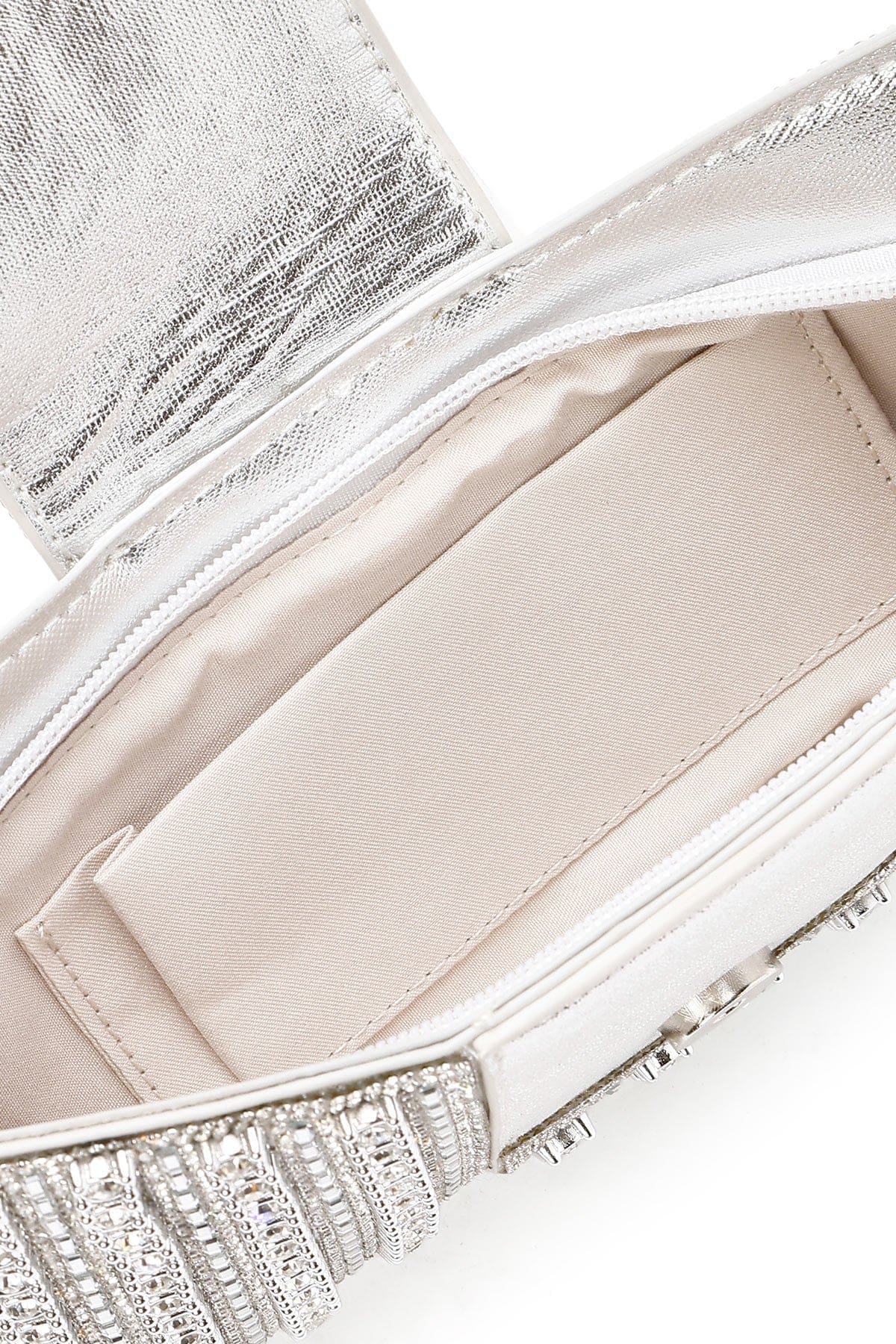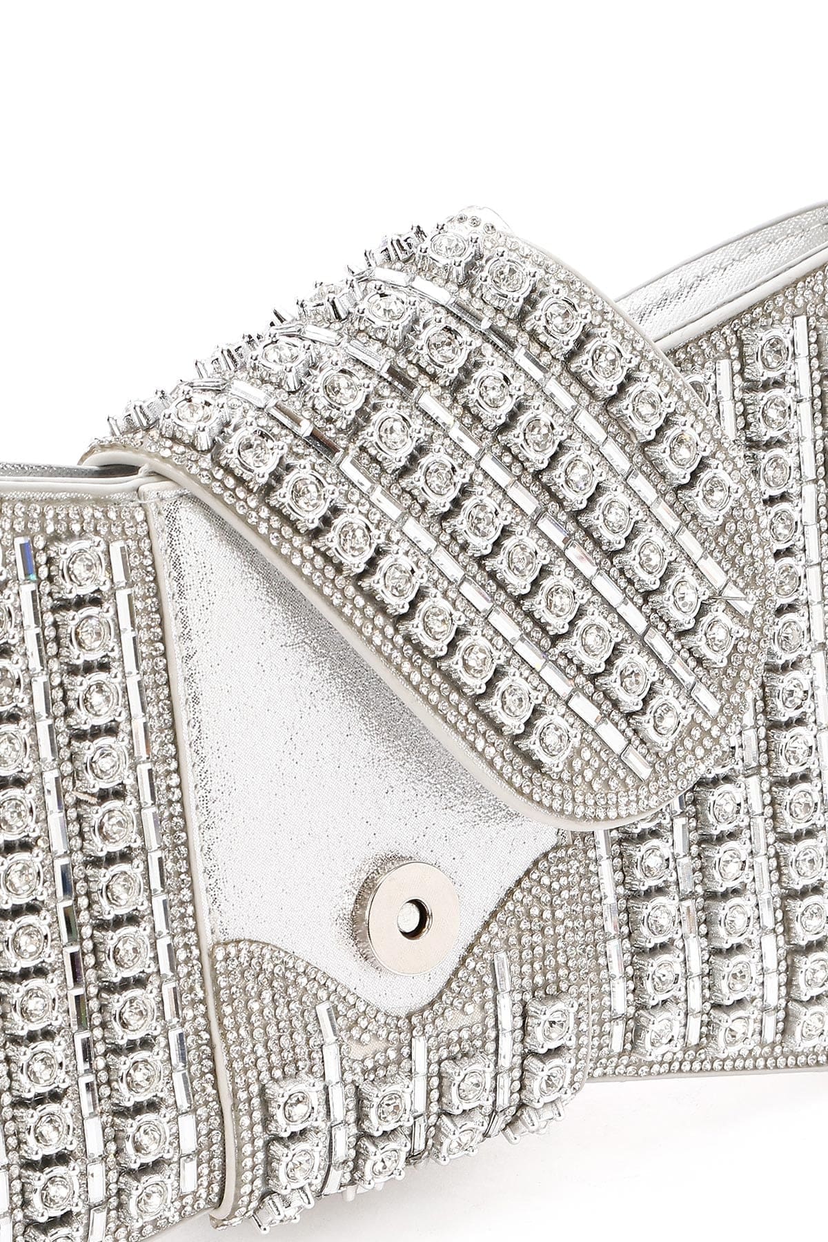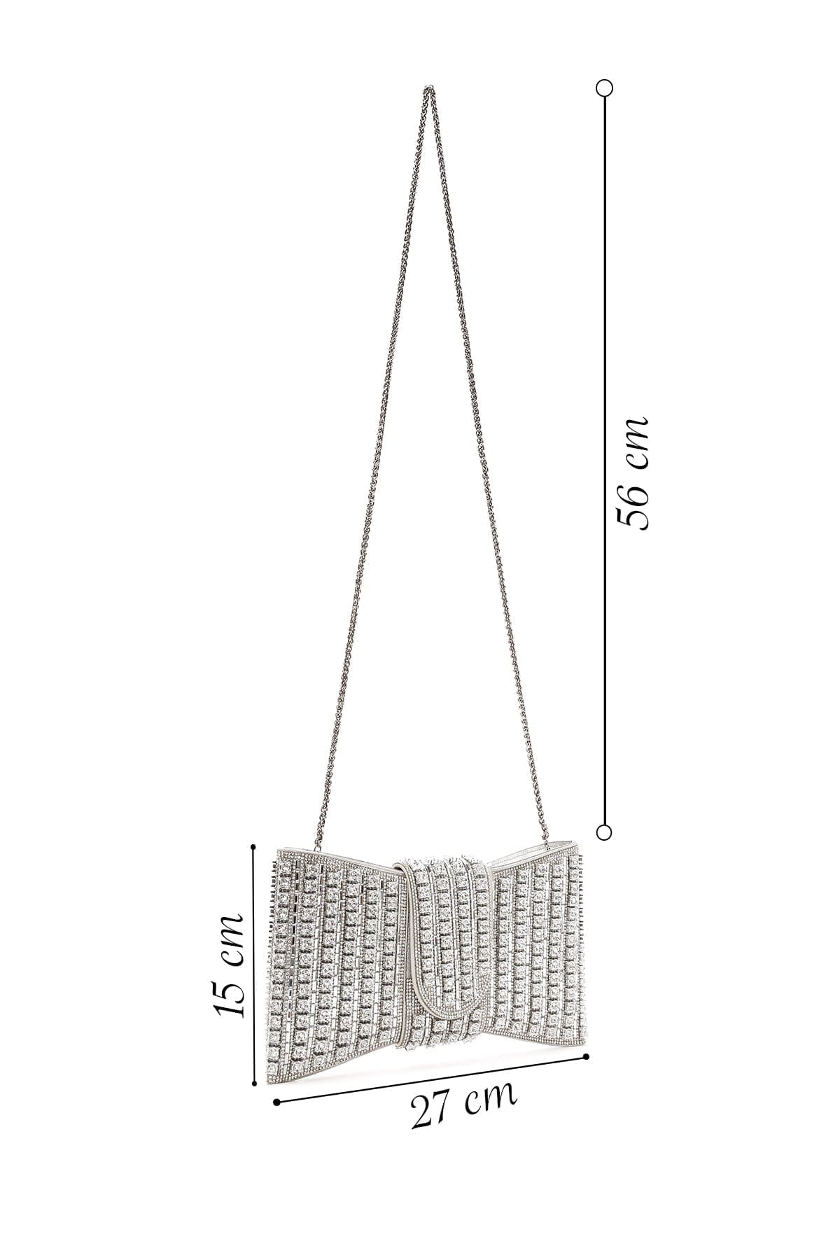 Kadın Gümüş Uzun Askılı Taşlı Mini Abiye Kutu Portföy Çanta
