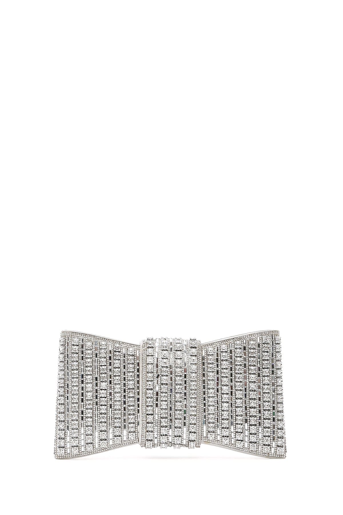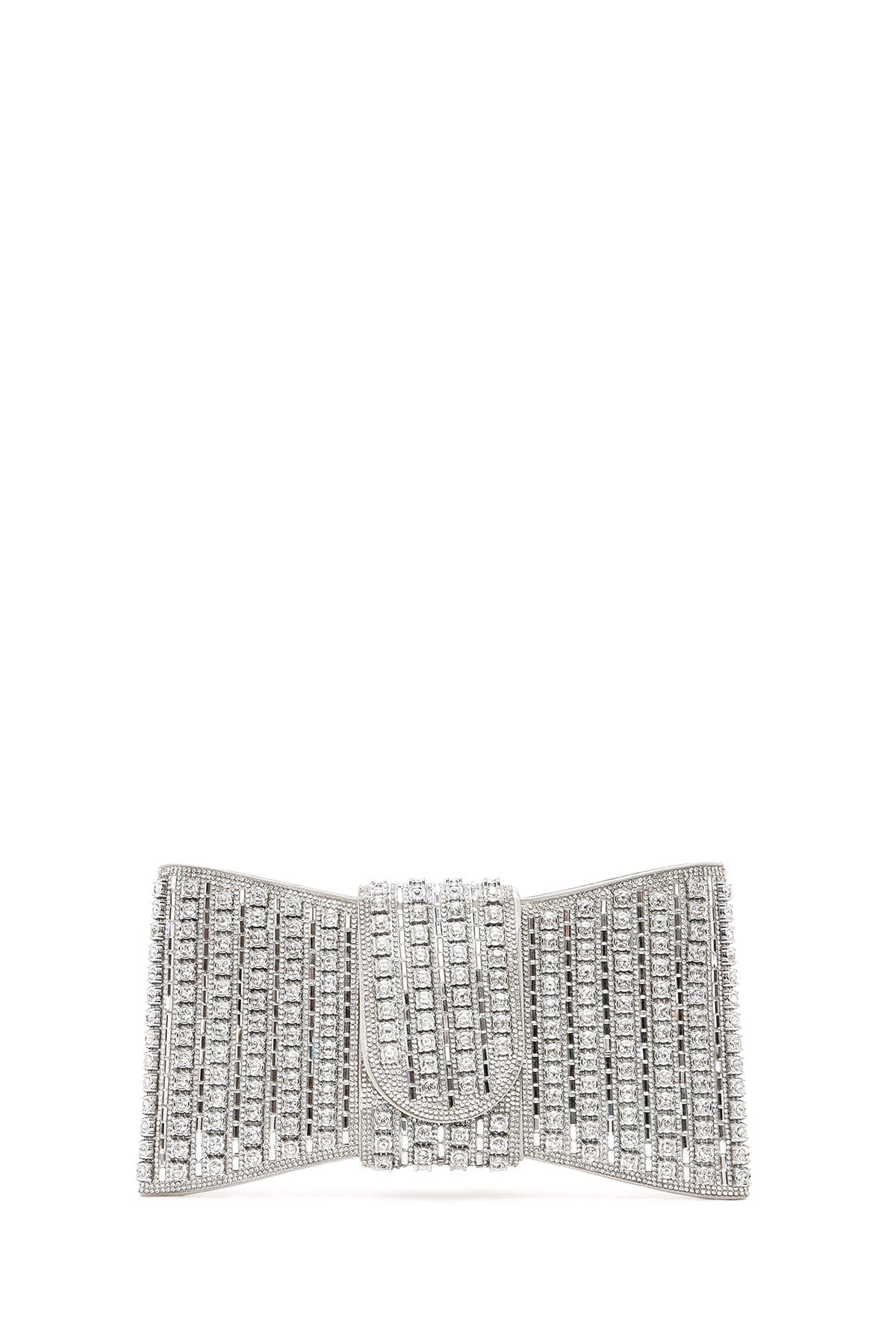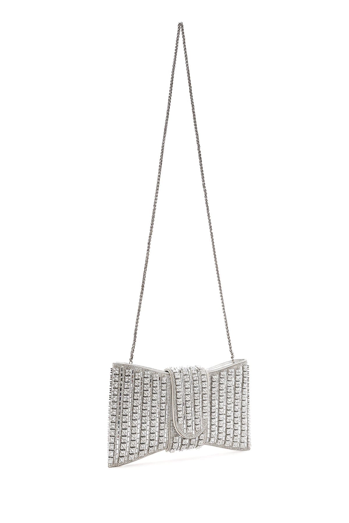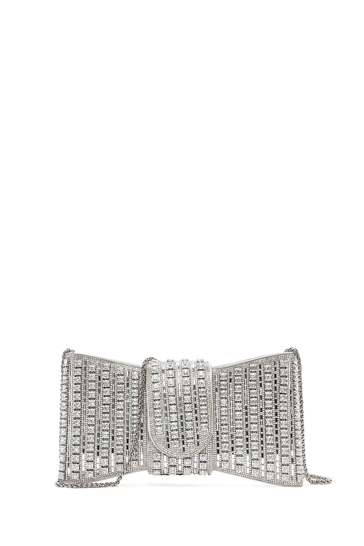 Kadın Gümüş Uzun Askılı Taşlı Mini Abiye Kutu Portföy Çanta