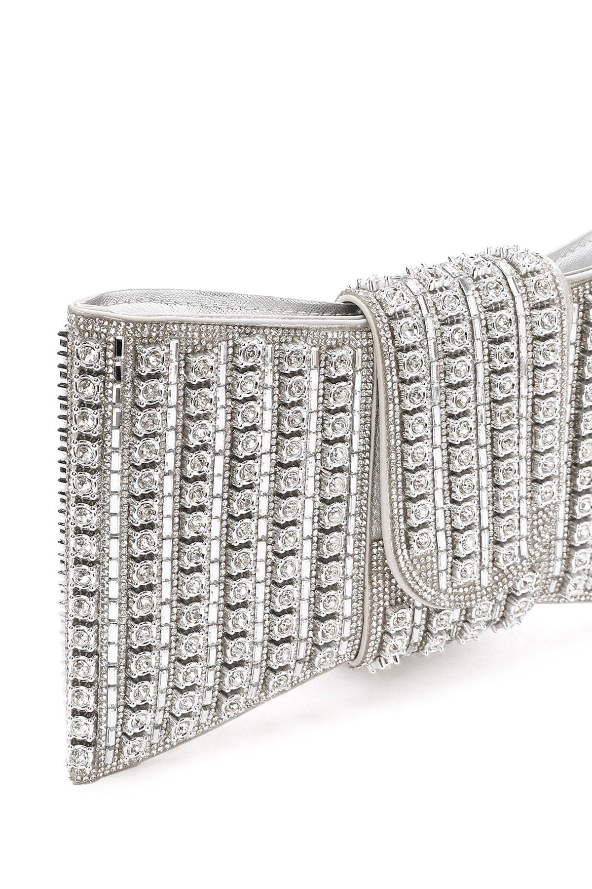 کیف مینی جعبهای زنانه نقرهای بند بلند با سنگ دری مد