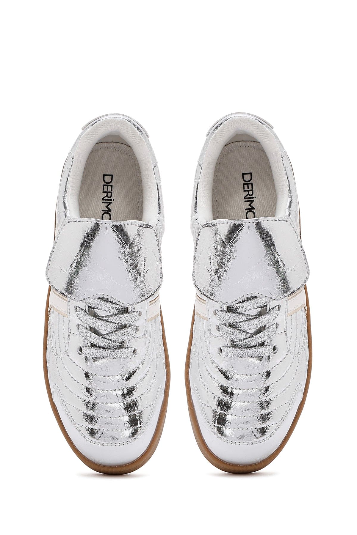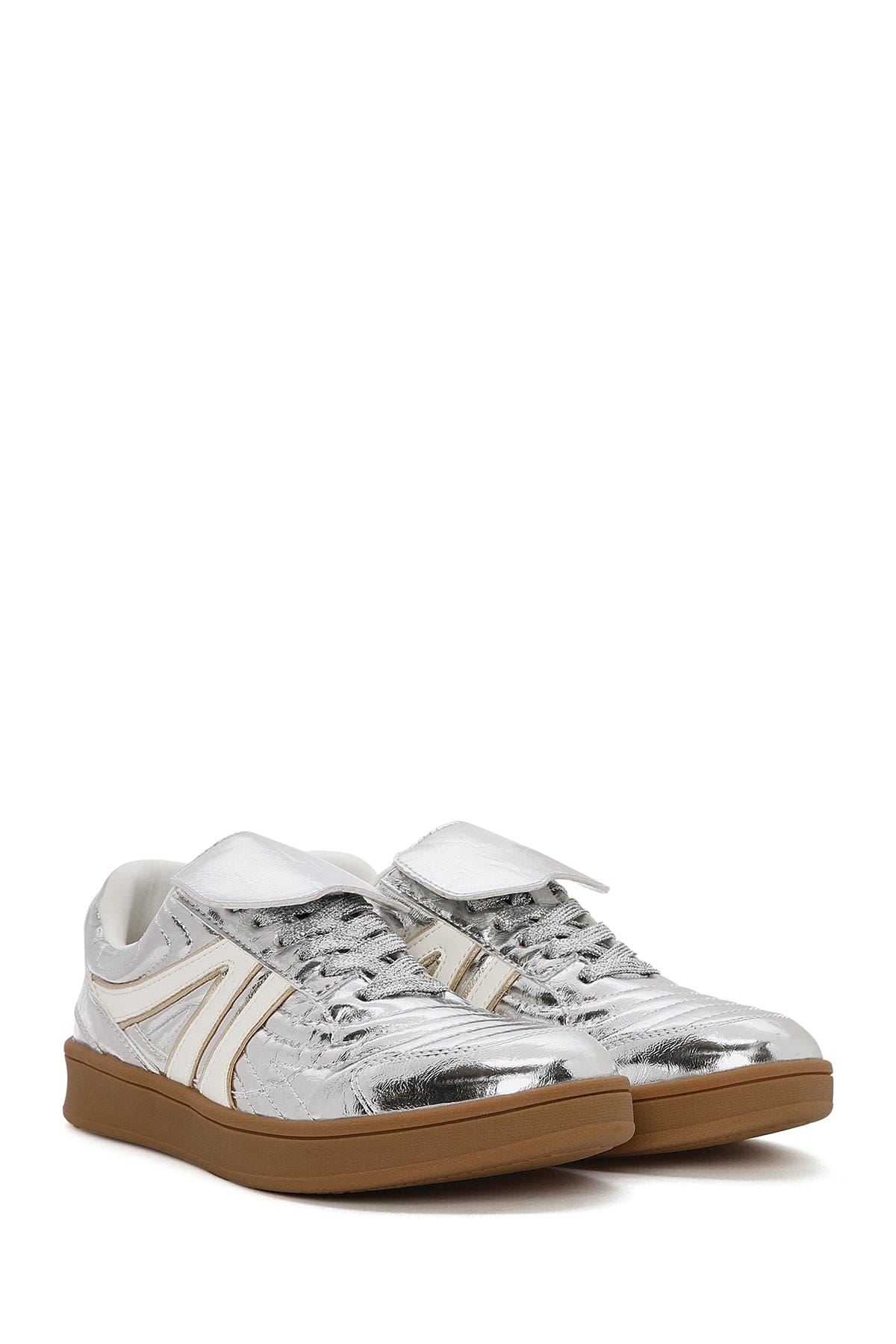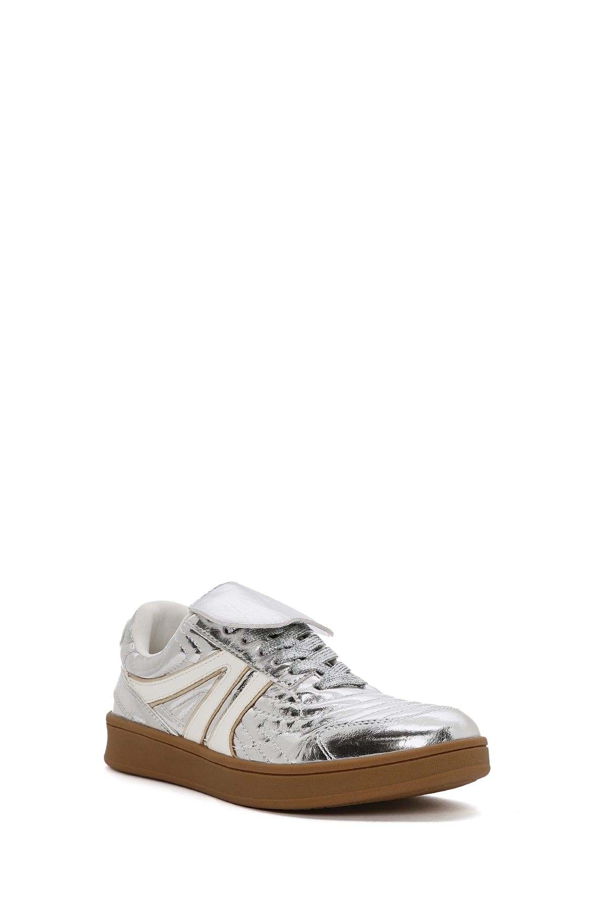 Kadın Gümüş Bağcıklı Metalik Sneaker