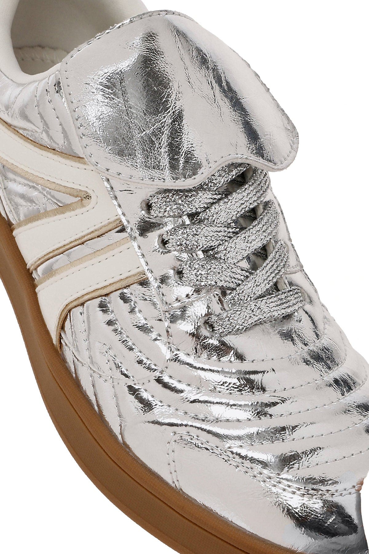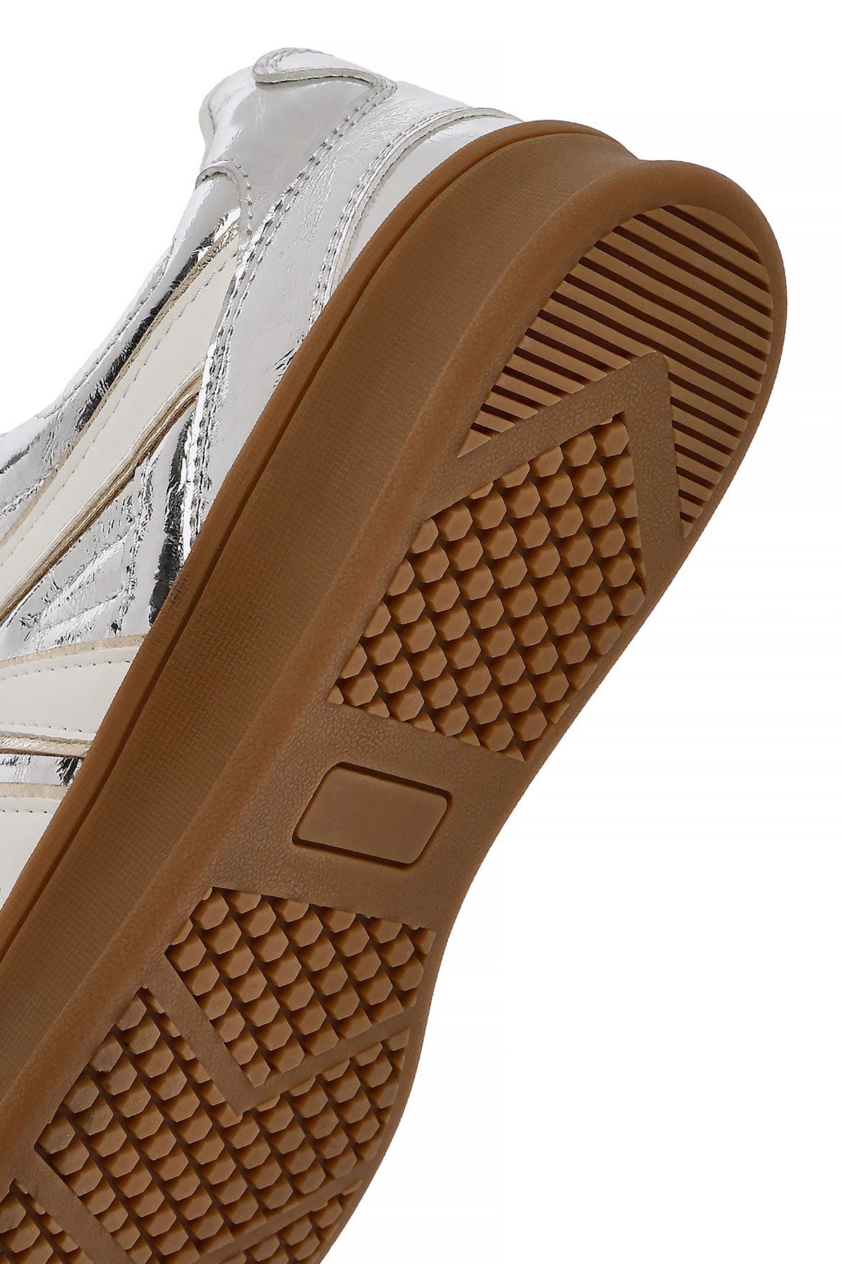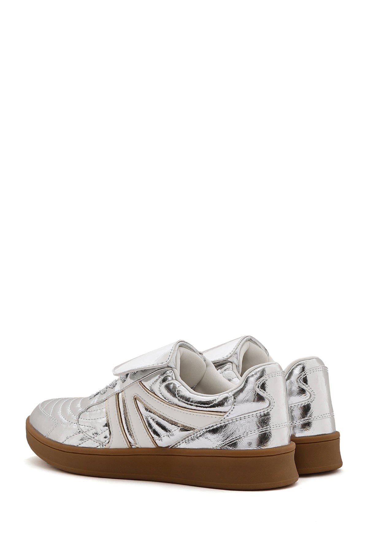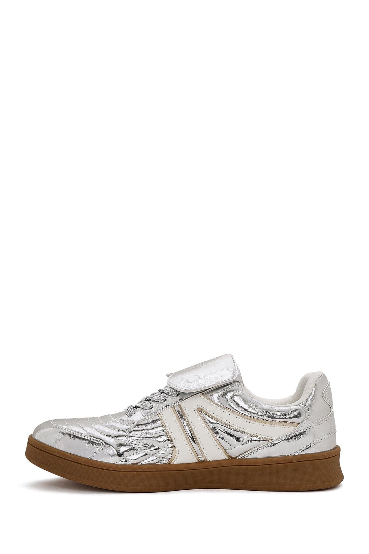 Kadın Gümüş Bağcıklı Metalik Sneaker