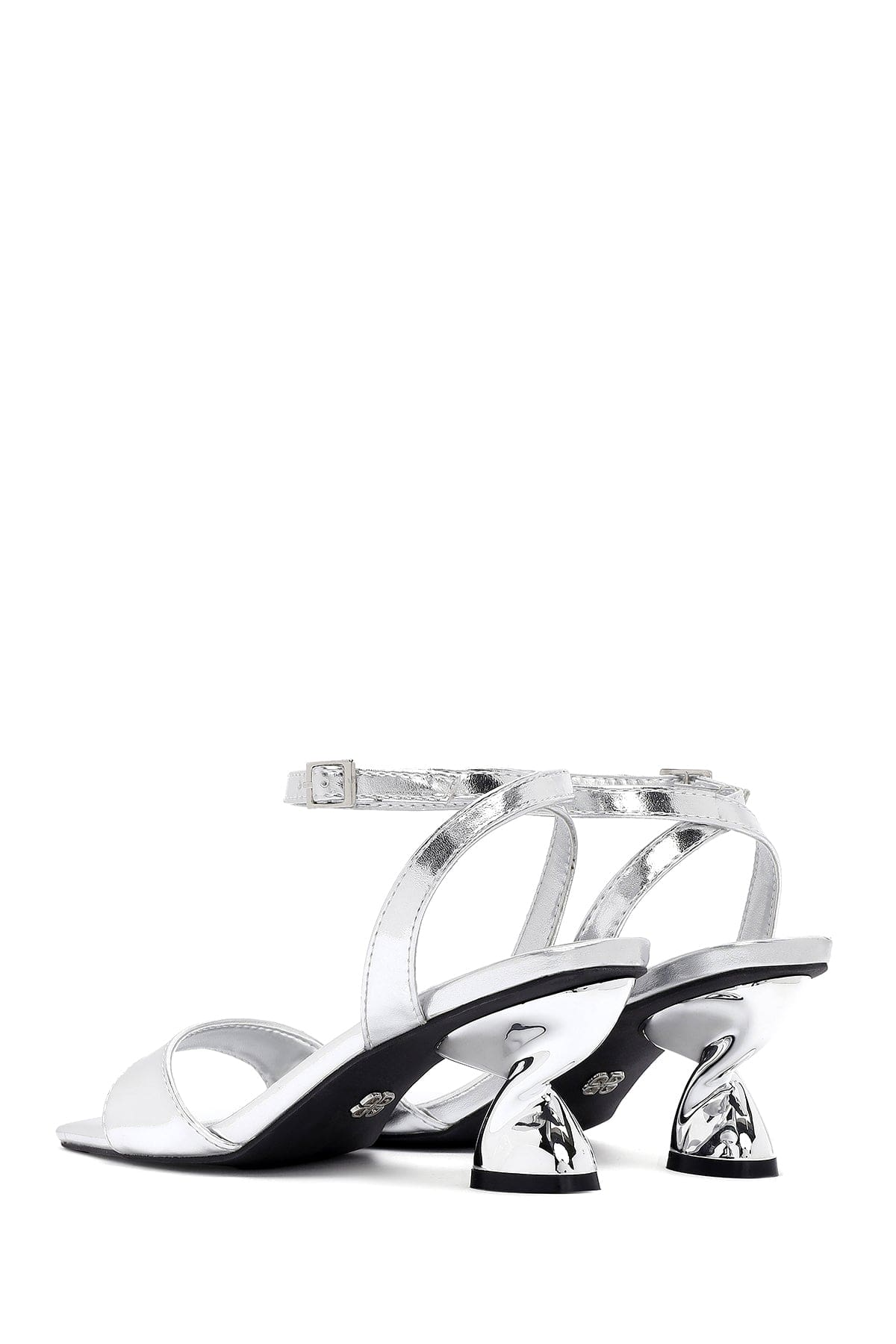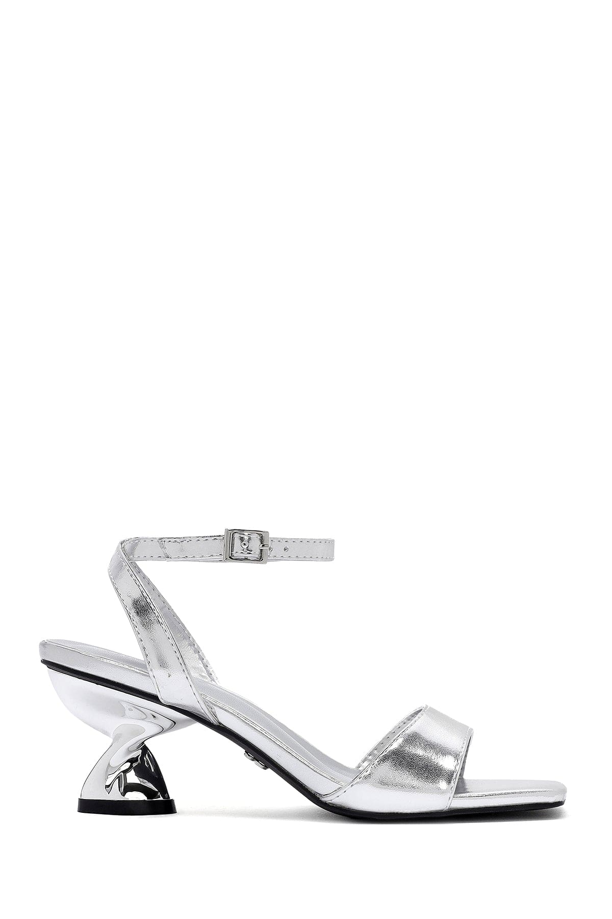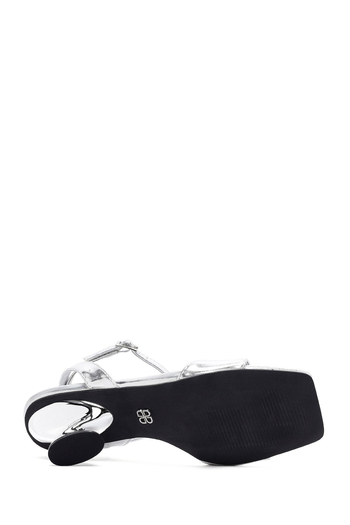 Kadın Gümüş Bilekten Tokalı Kalın Topuklu Metalik Sandalet