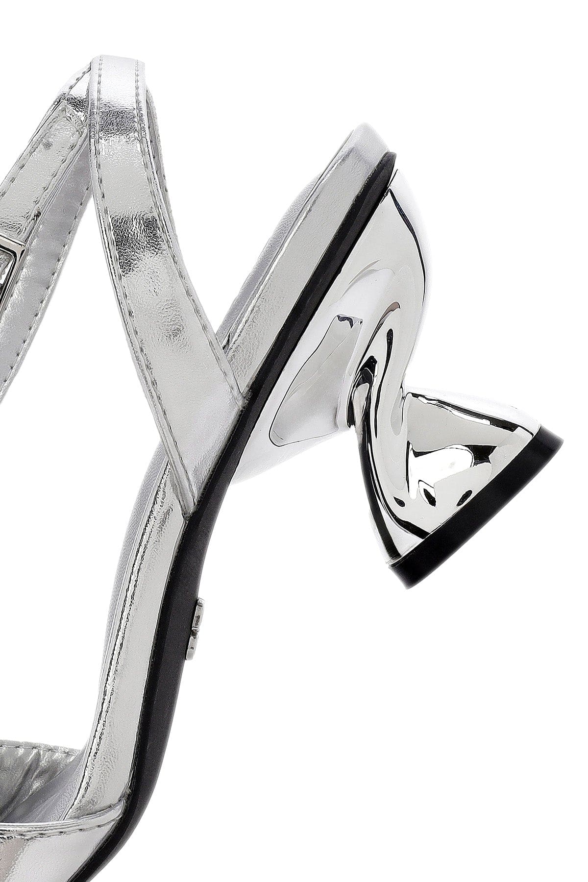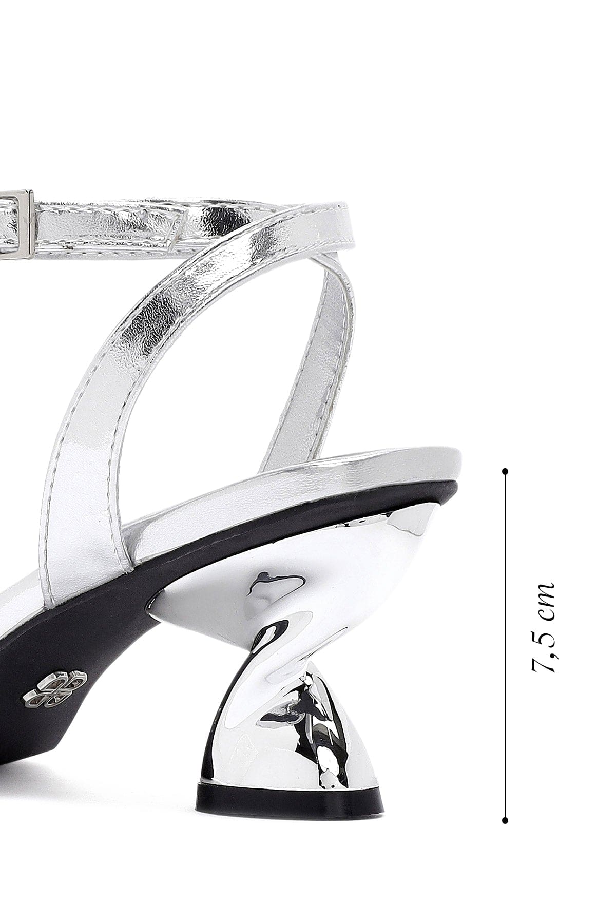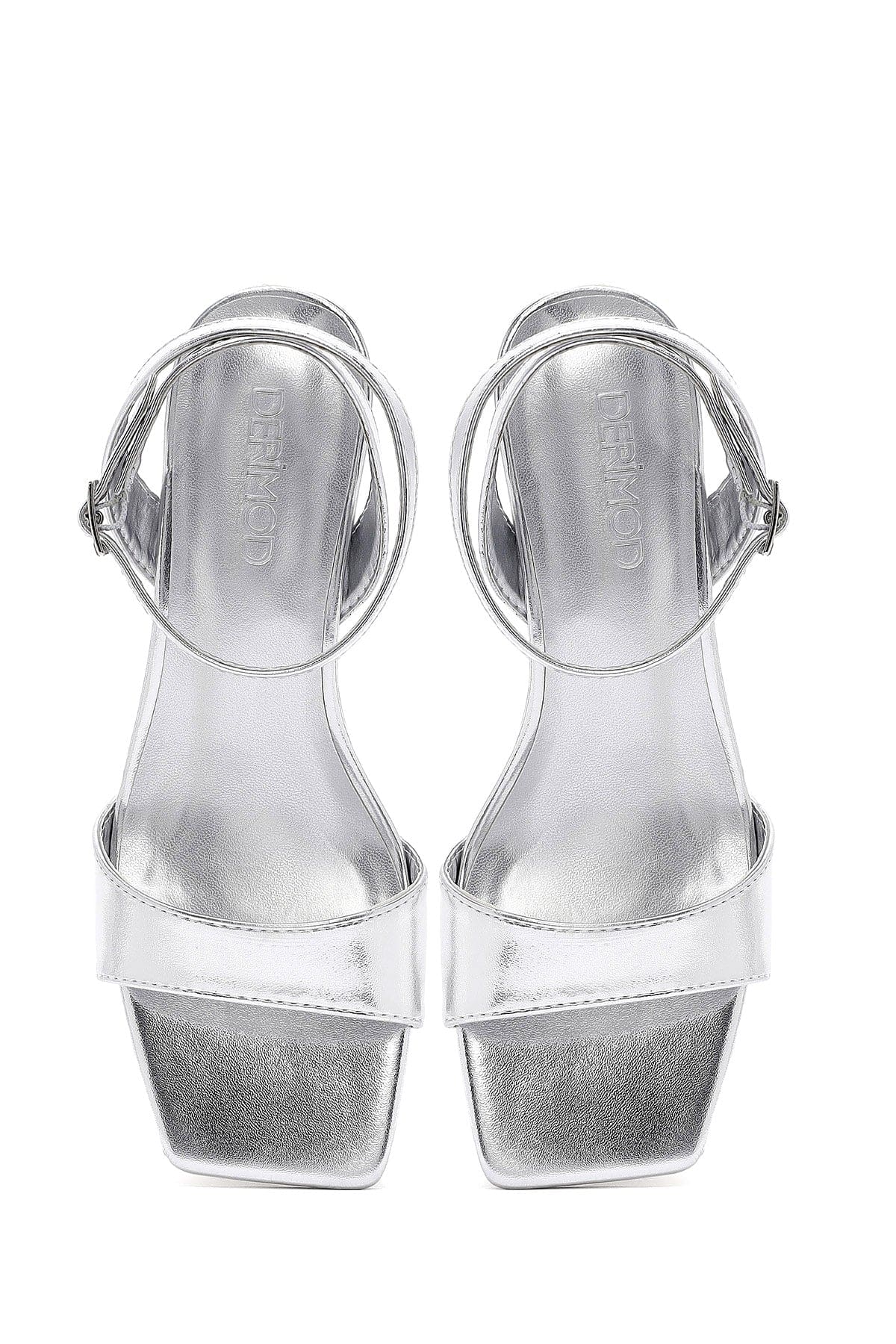صندل زنانه نقرهای متالیک پاشنهضخیم بنددار دری مد