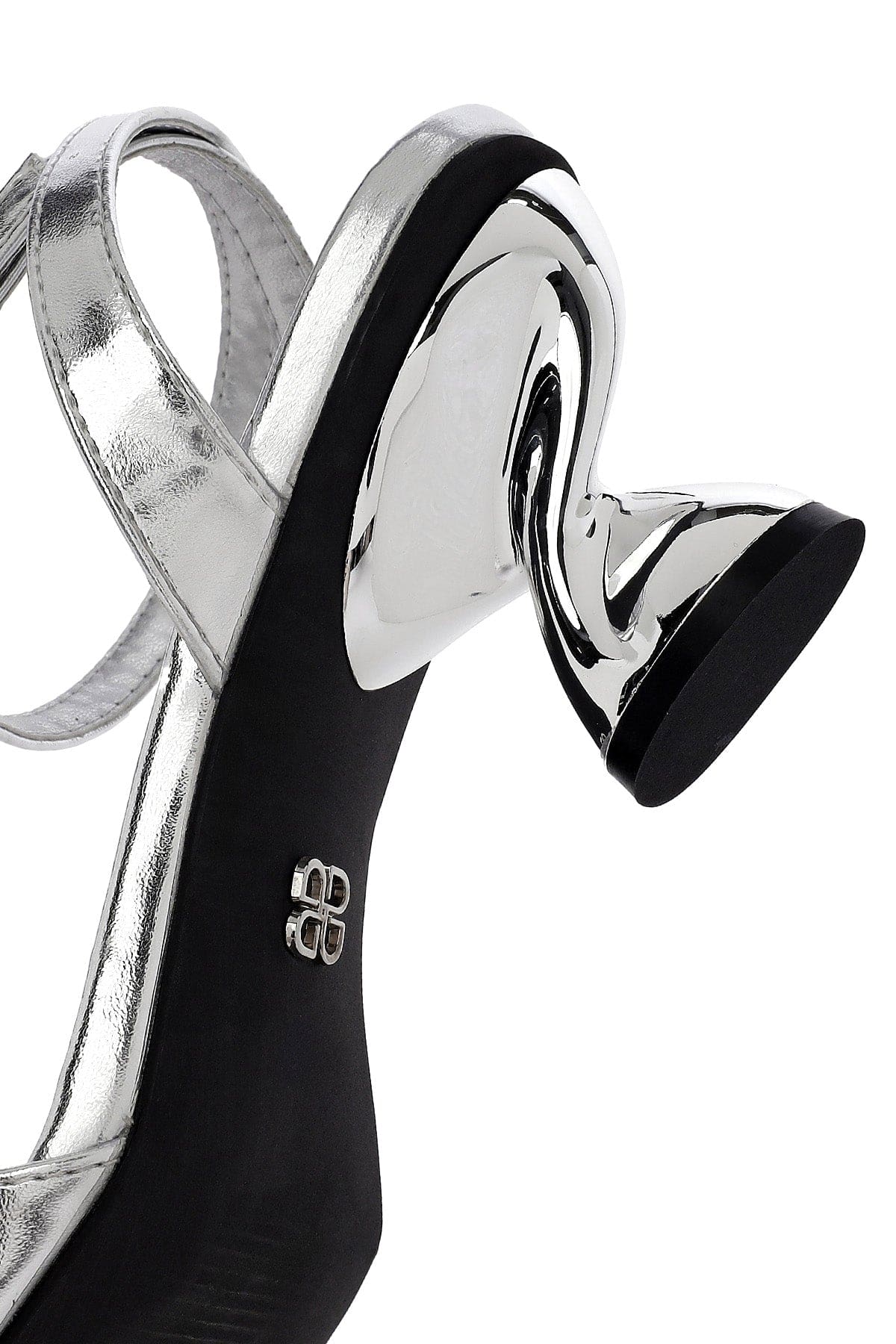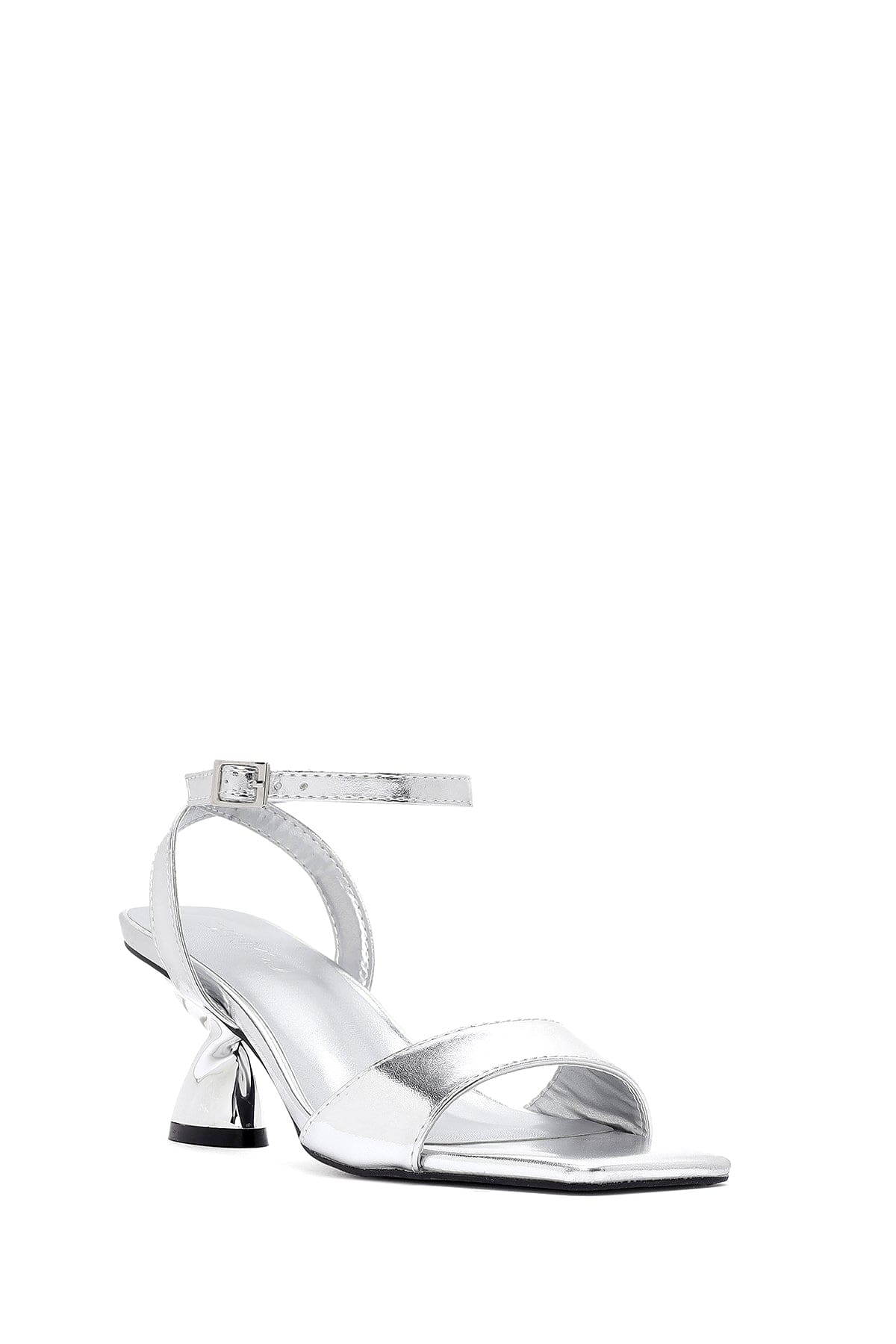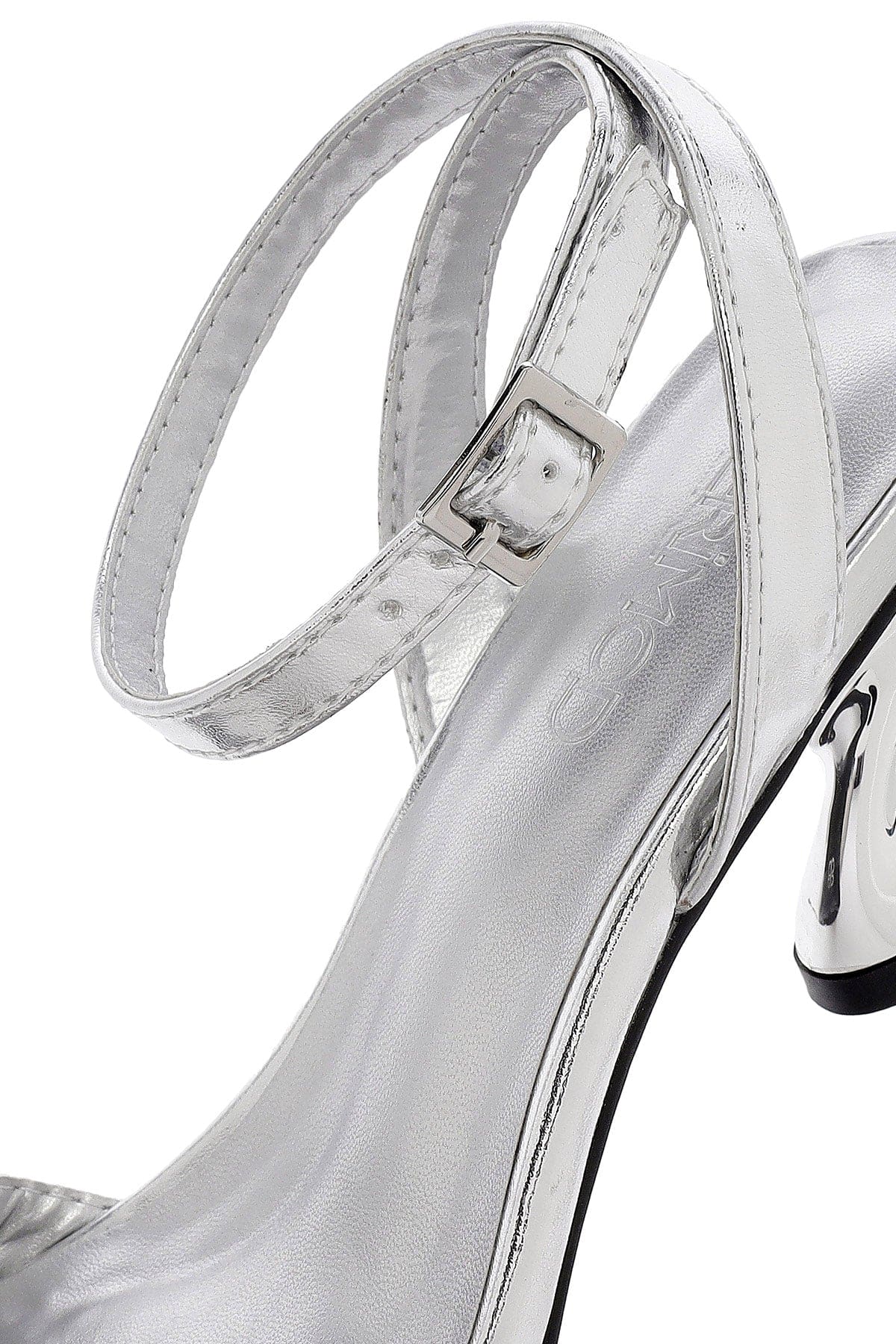 صندل زنانه نقرهای متالیک پاشنهضخیم بنددار دری مد