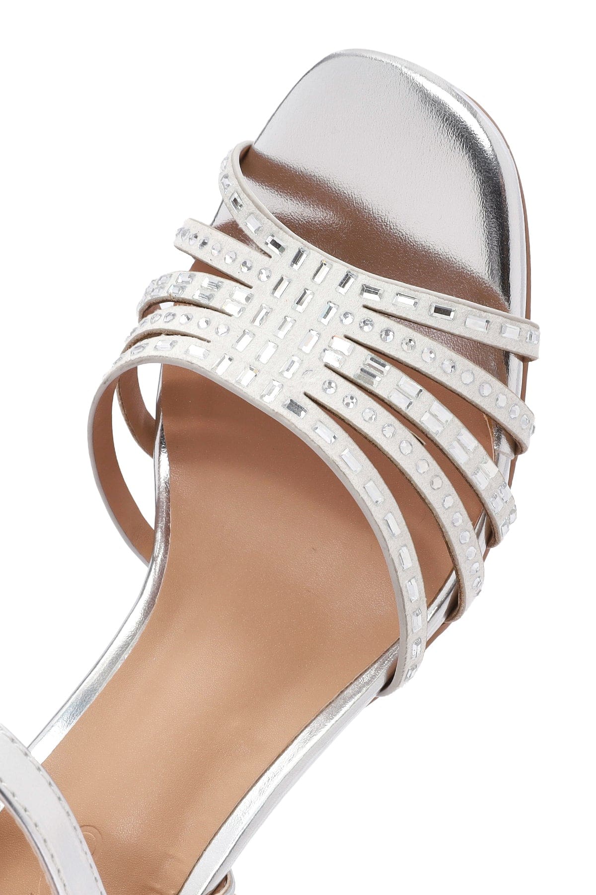 صندل زنانه متالیک نقرهای بنددار با پاشنه ضخیم دری مد