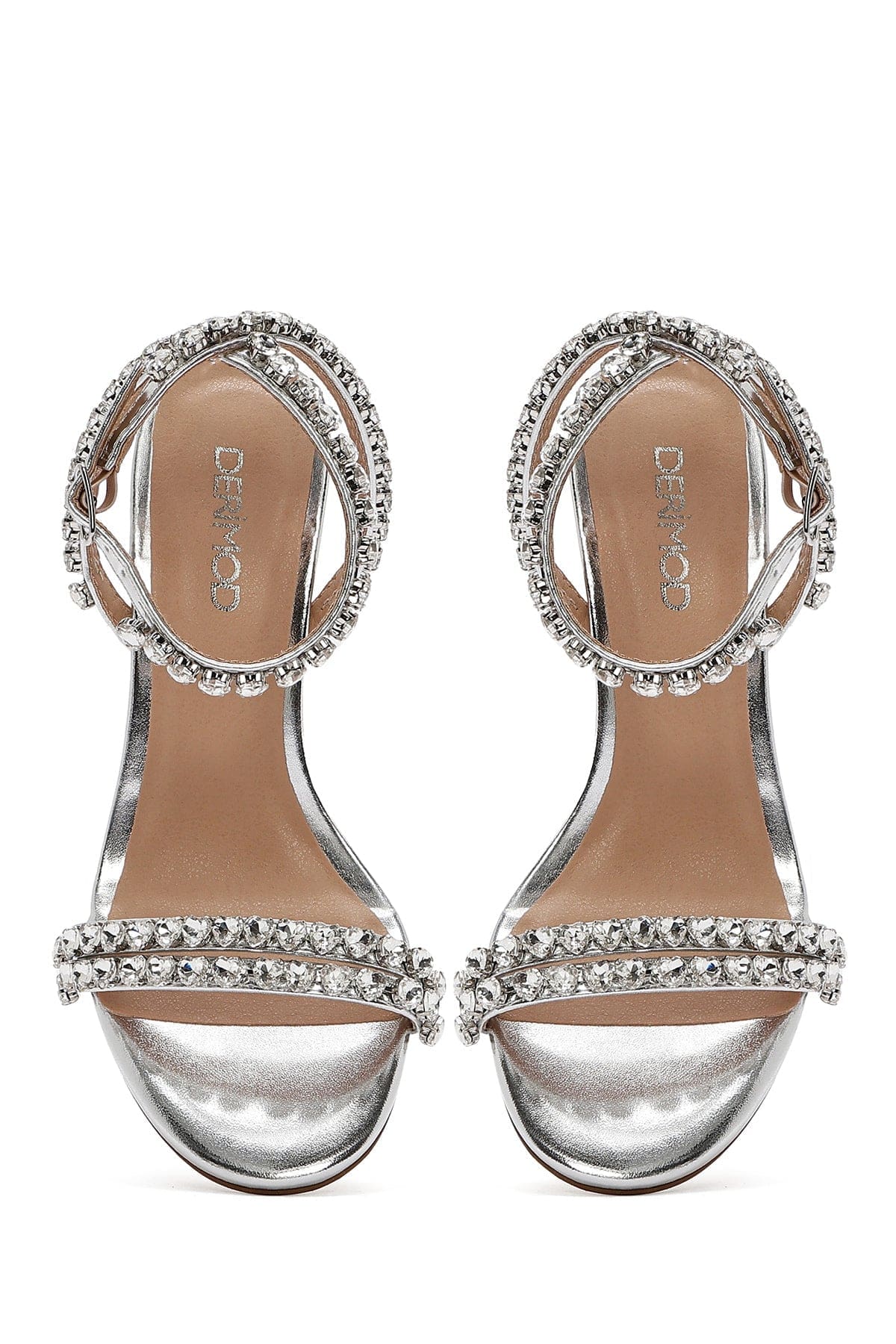 Kadın Gümüş Bilekten Tokalı Taşlı İnce Topuklu Sandalet