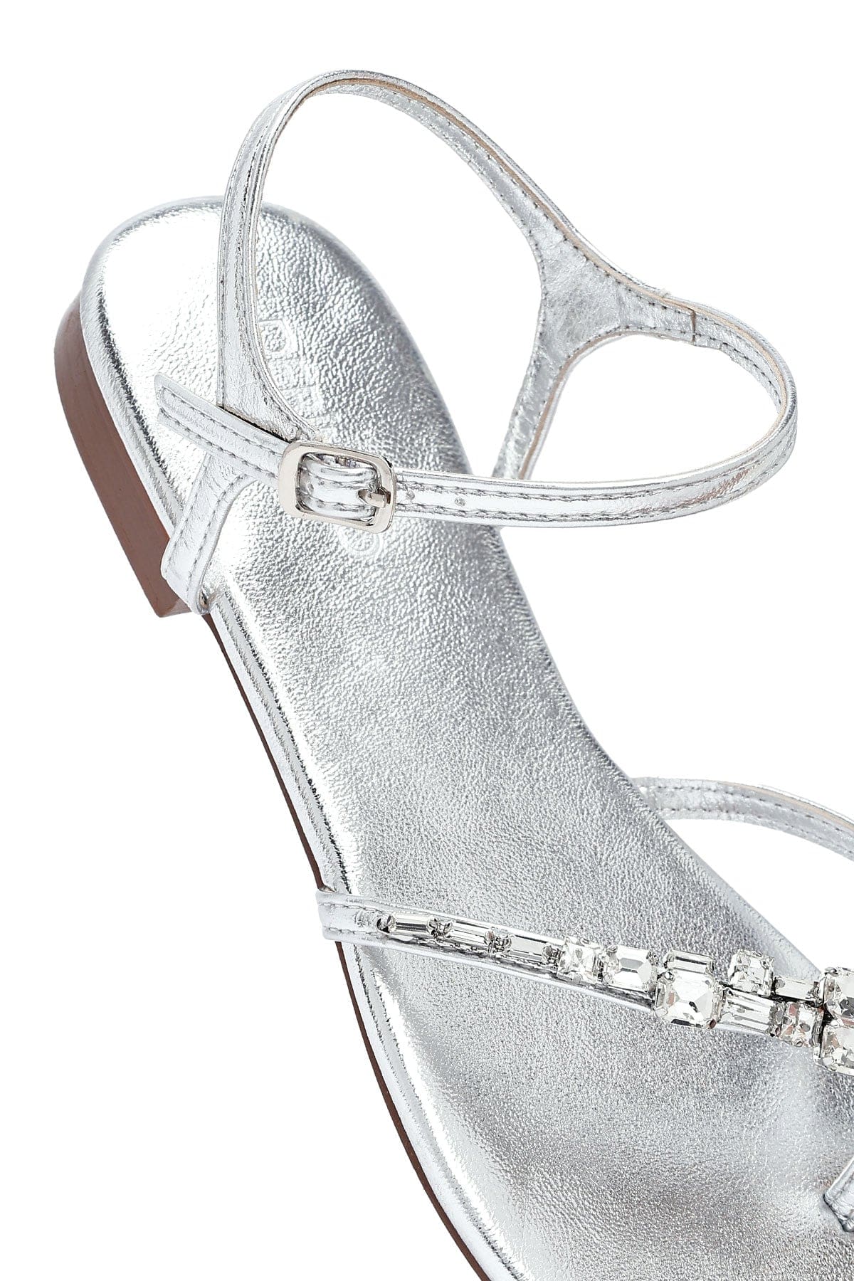 صندل زنانه نقرهای نگیندار انگشتی دری مد