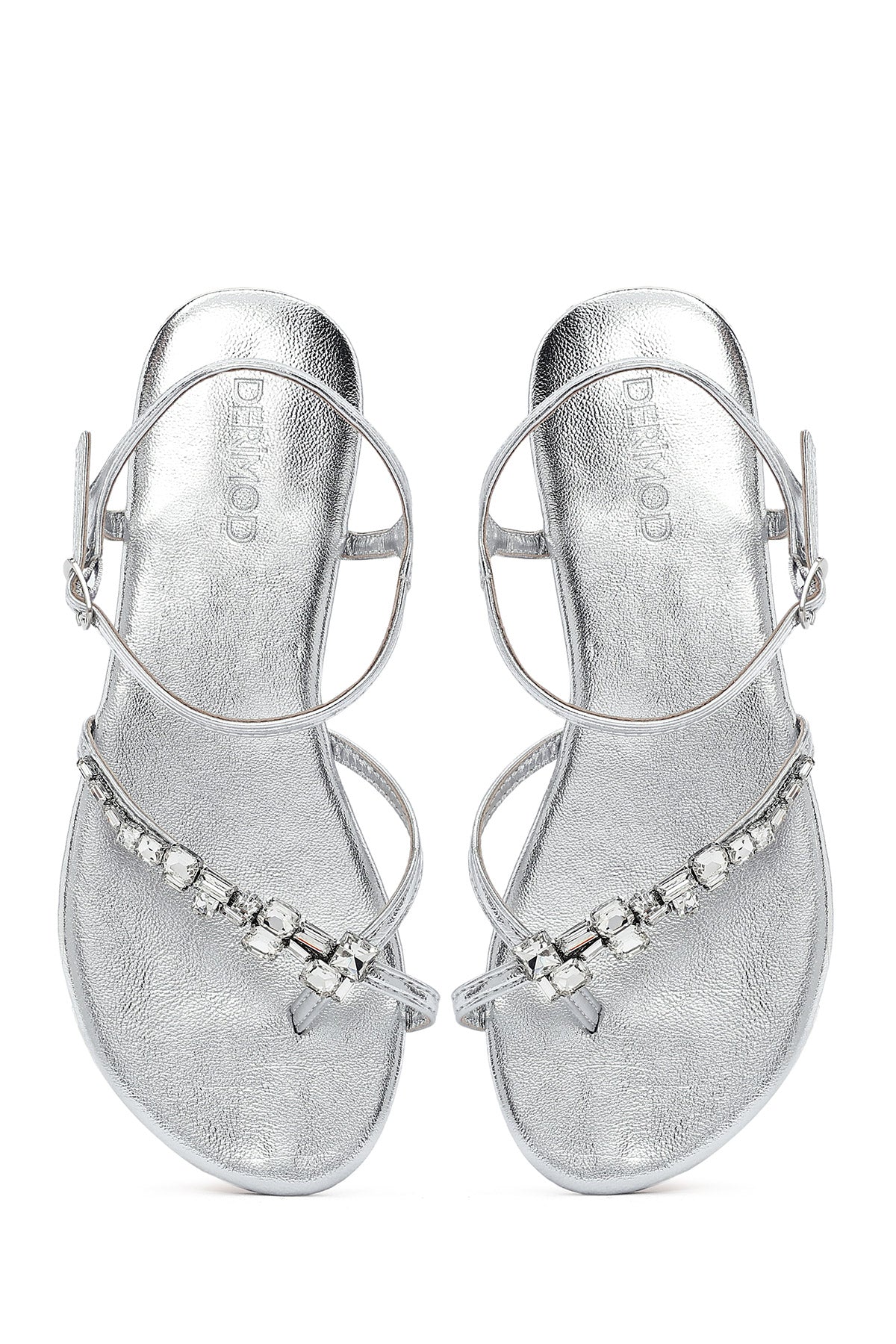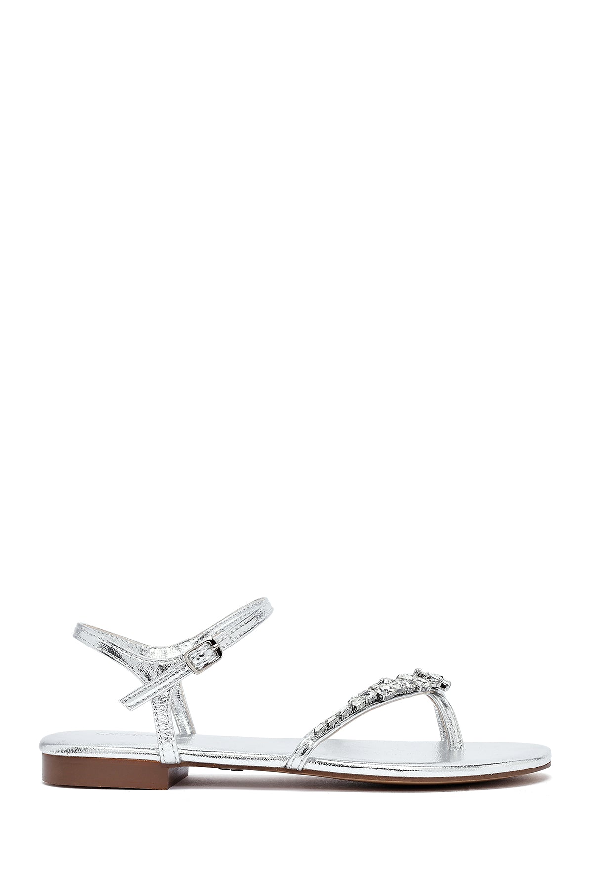 Kadın Gümüş Taşlı Parmak Arası Sandalet