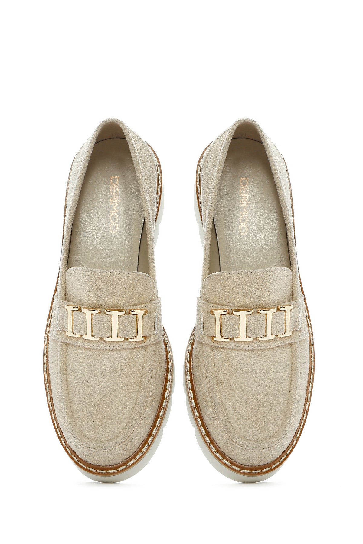 Kadın Taba Tokalı Süet Maskülen Loafer