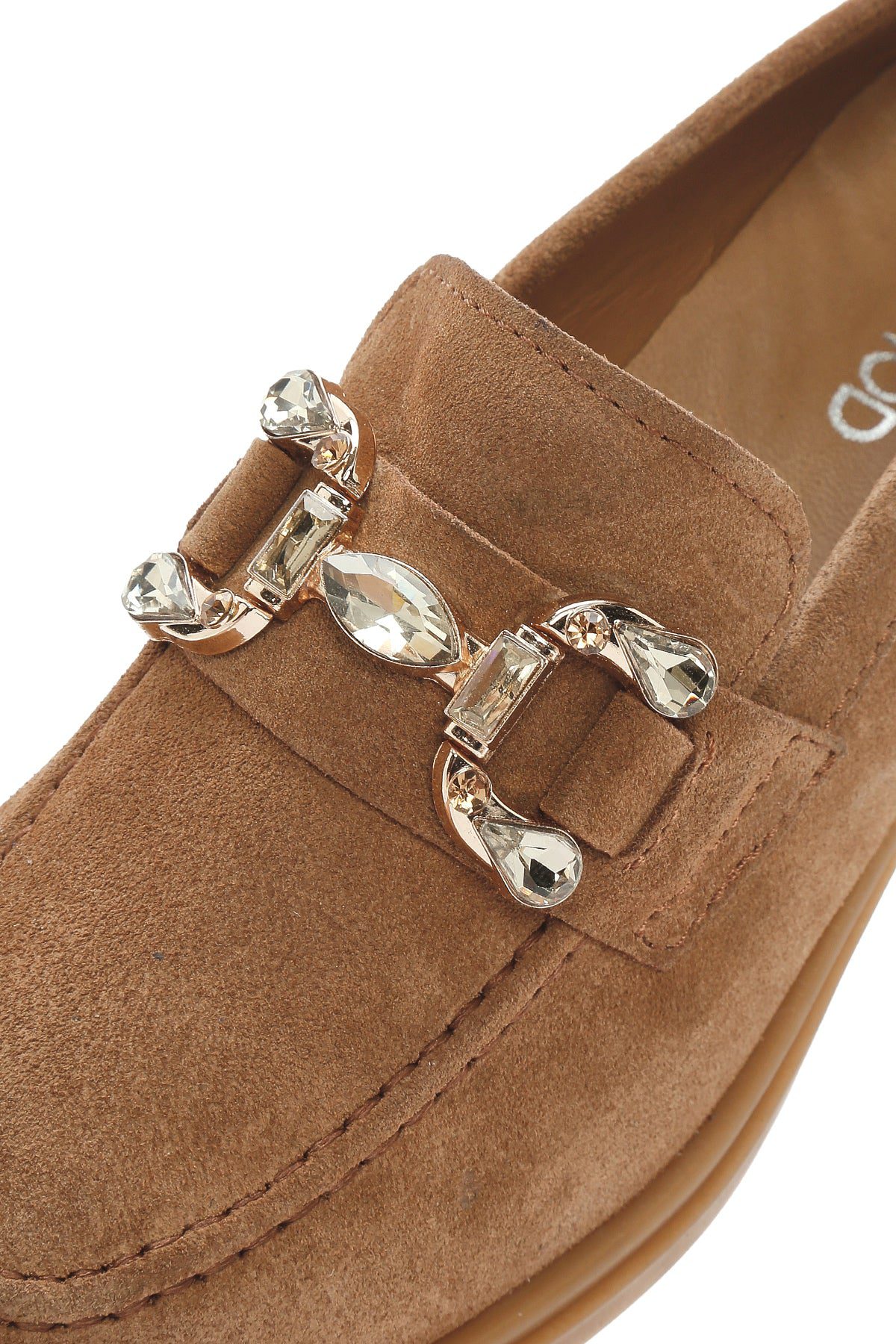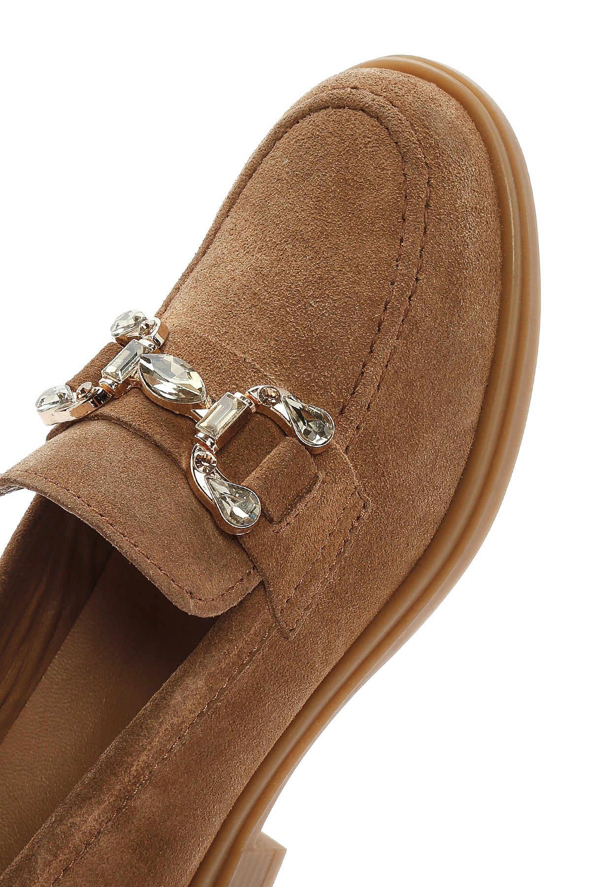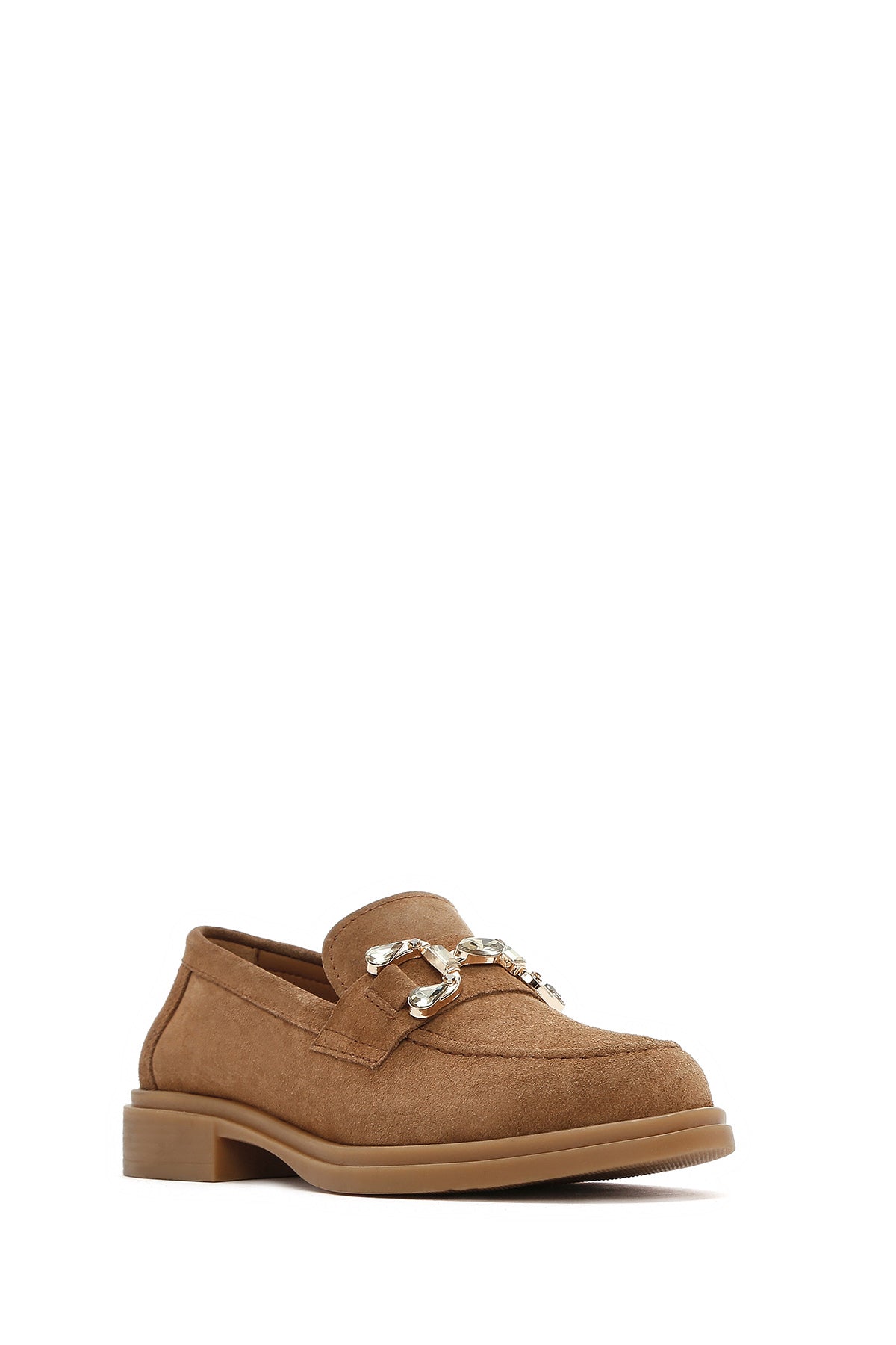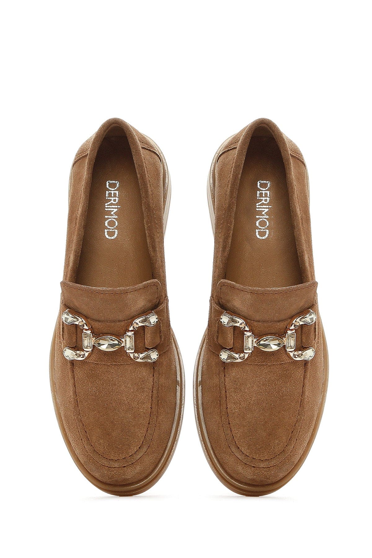 Kadın Taba Taşlı Süet Deri Maskülen Loafer