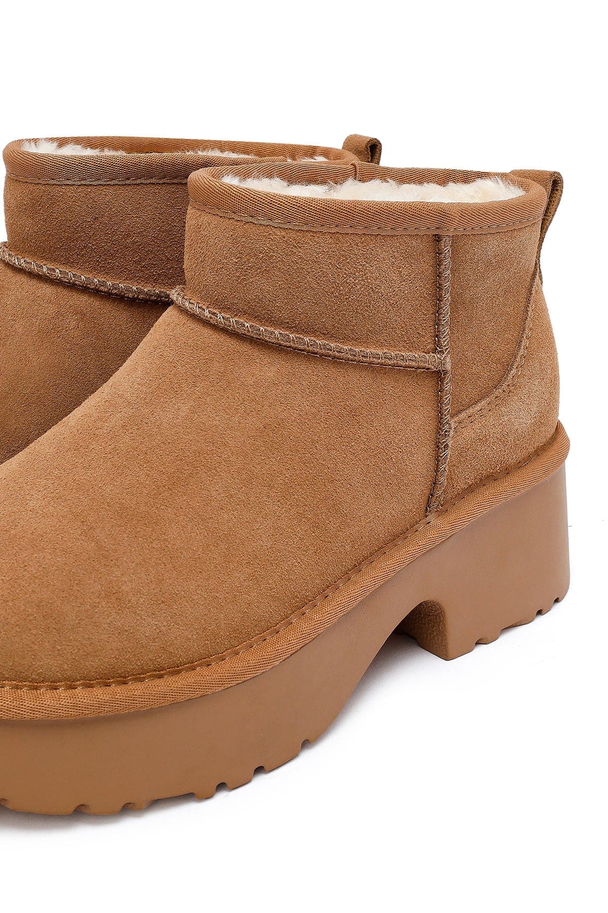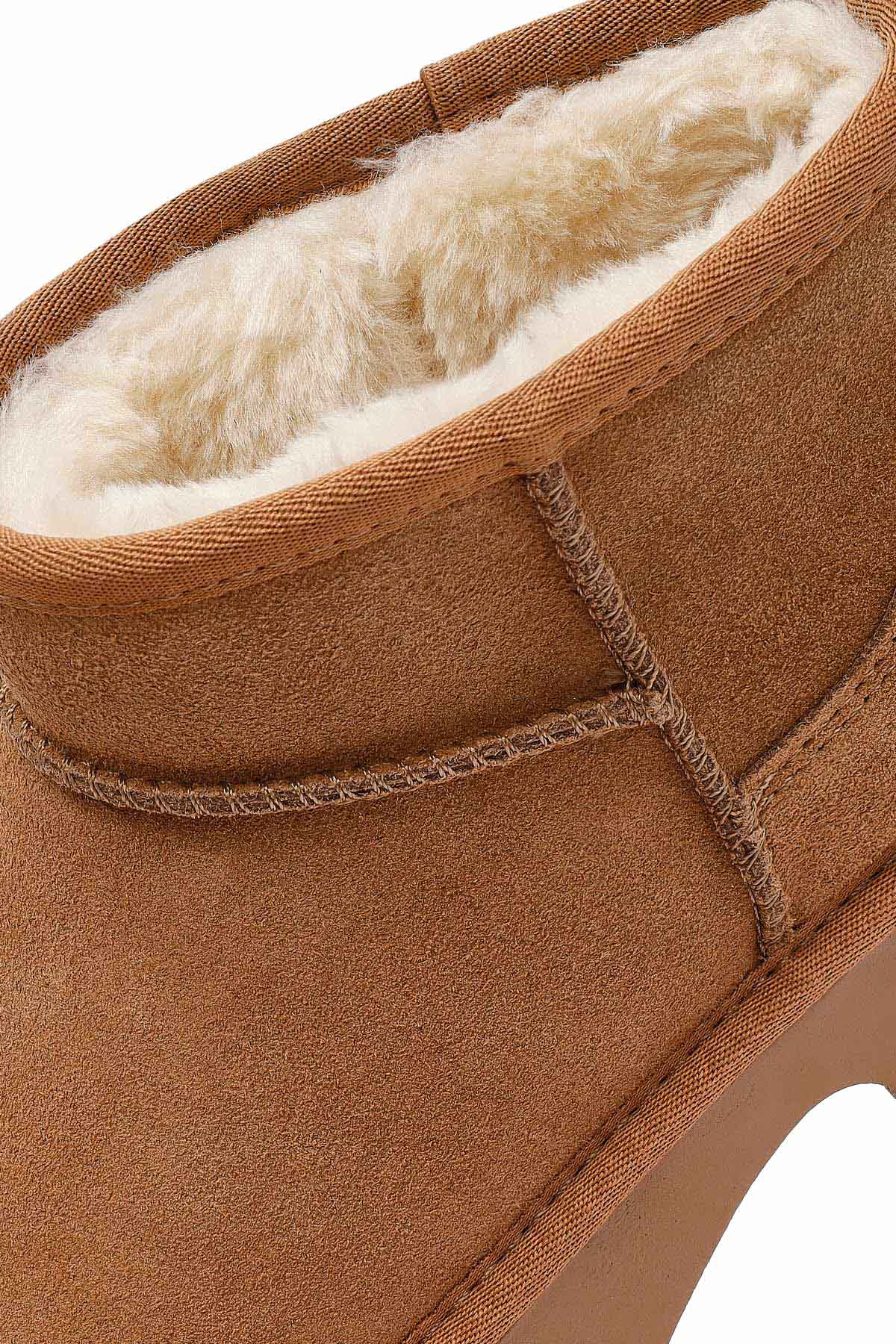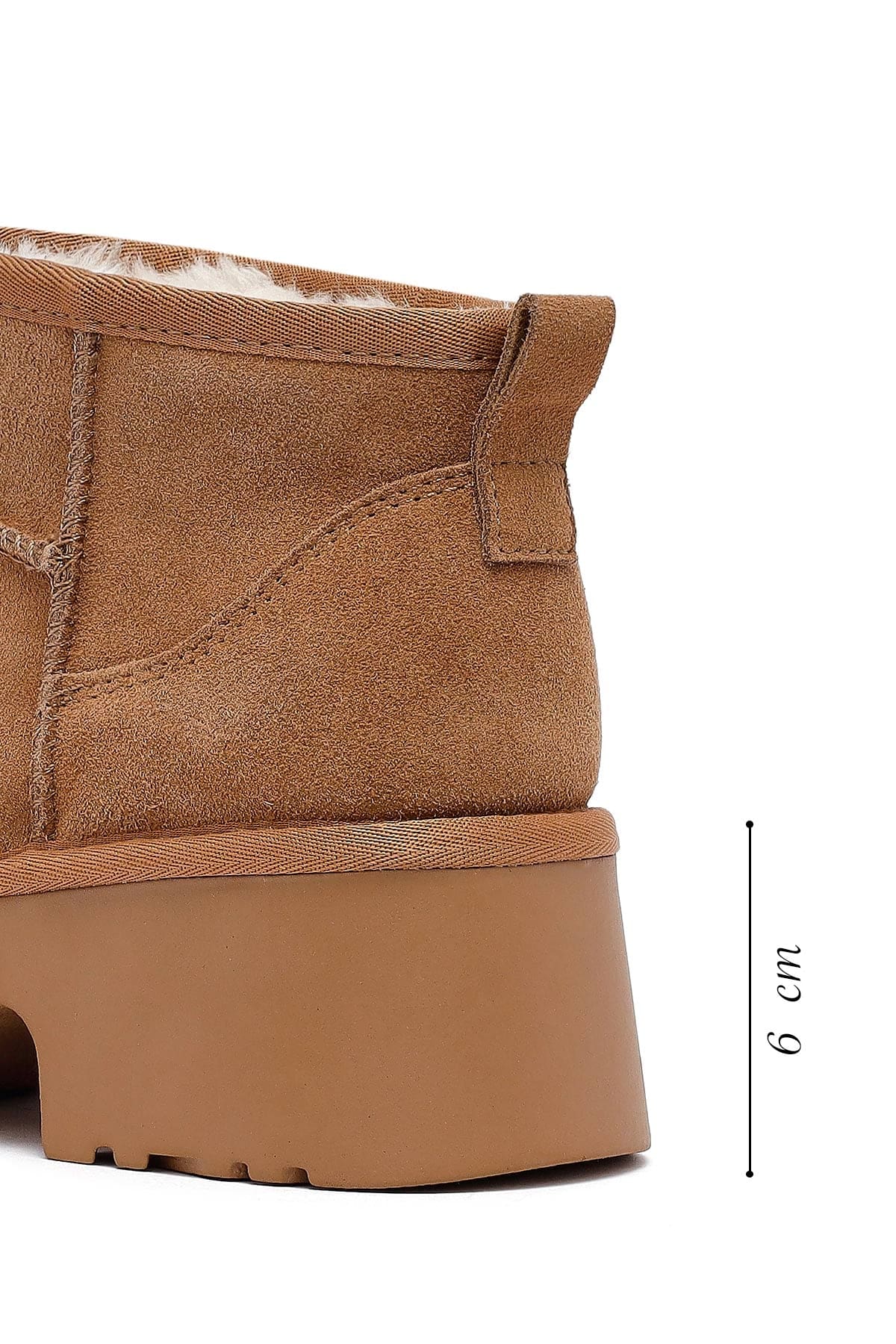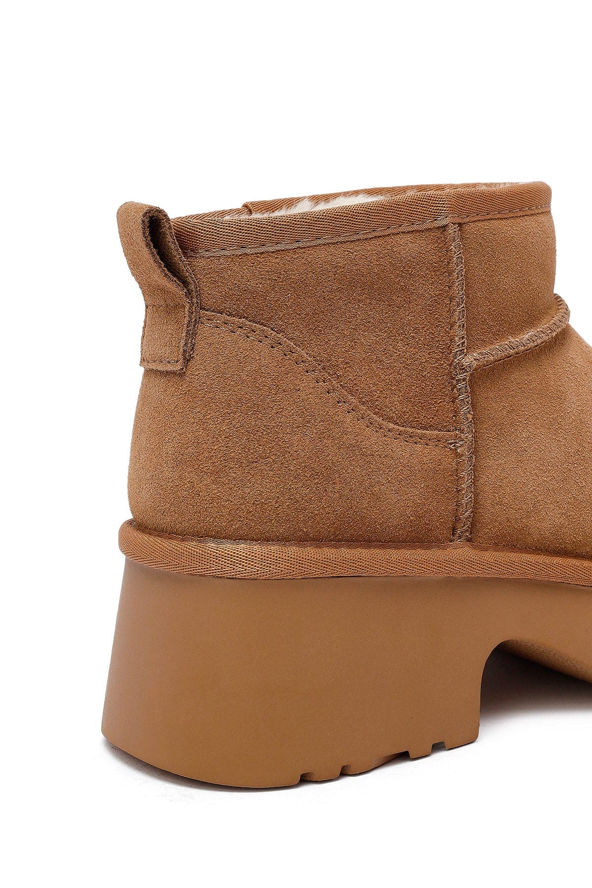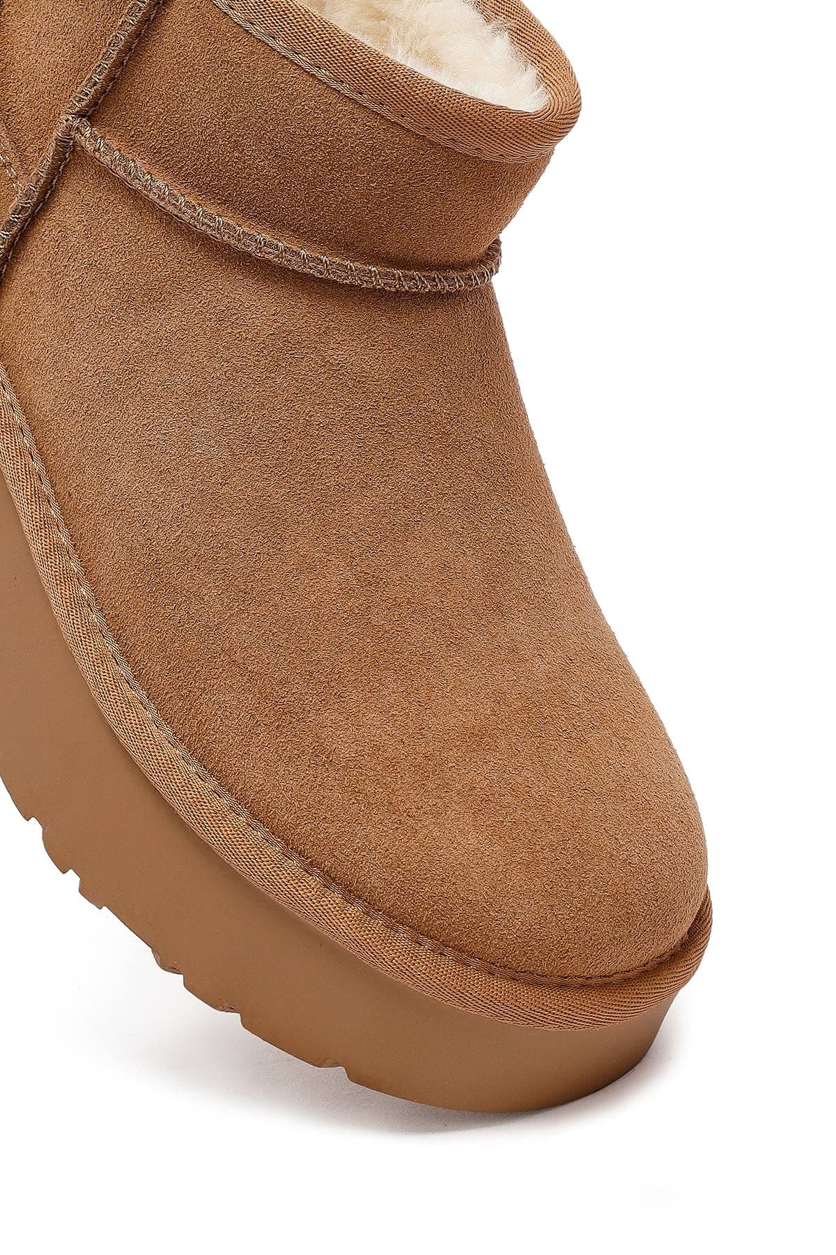 Kadın Taba Kalın Tabanlı Kürklü Süet Deri Teddy Bot