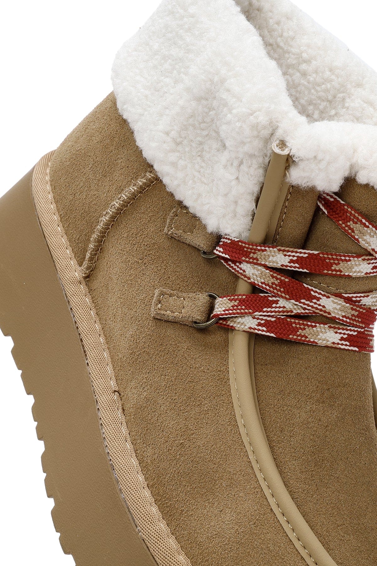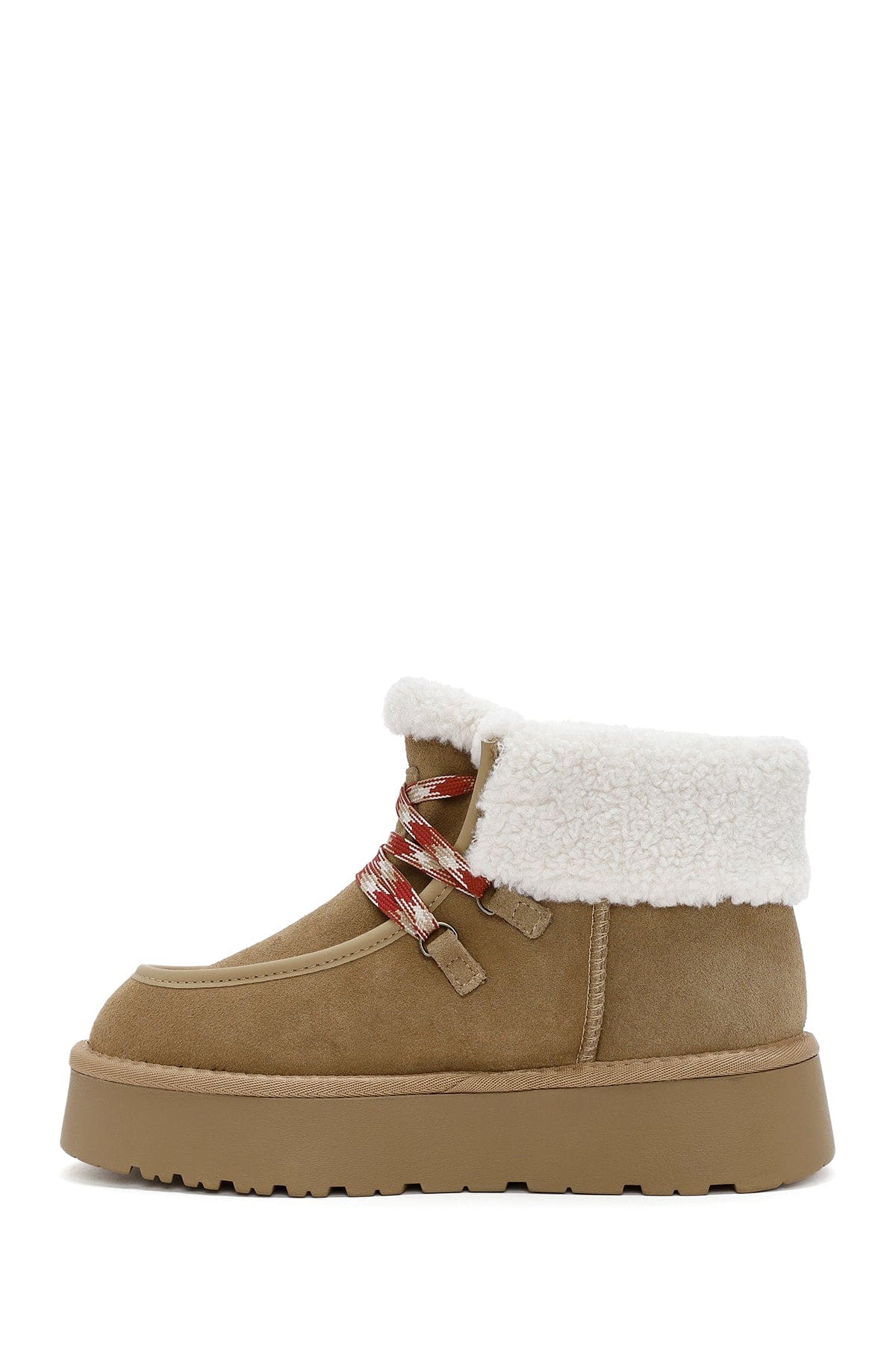 Kadın Taba Kalın Tabanlı Süet Deri Teddy Bot