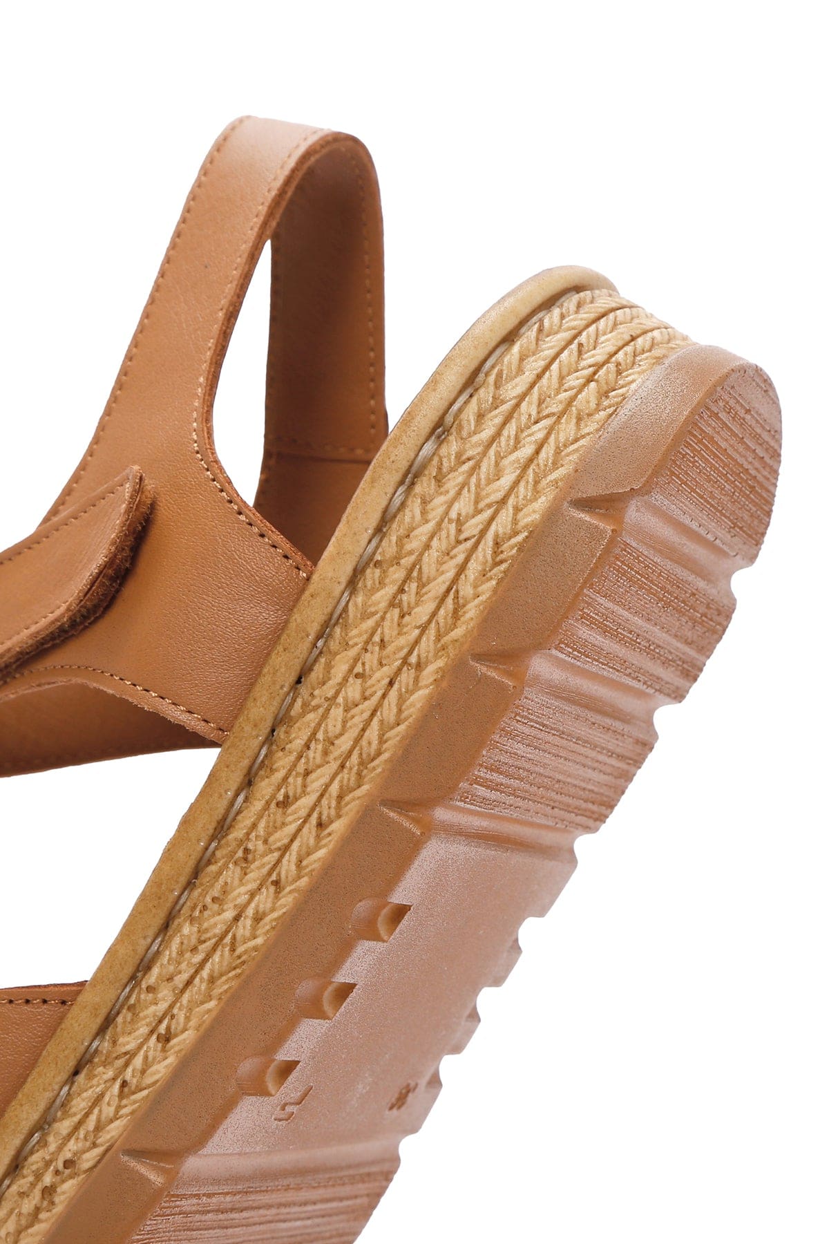 Kadın Taba Bilekten Bantlı Deri Comfort Sandalet