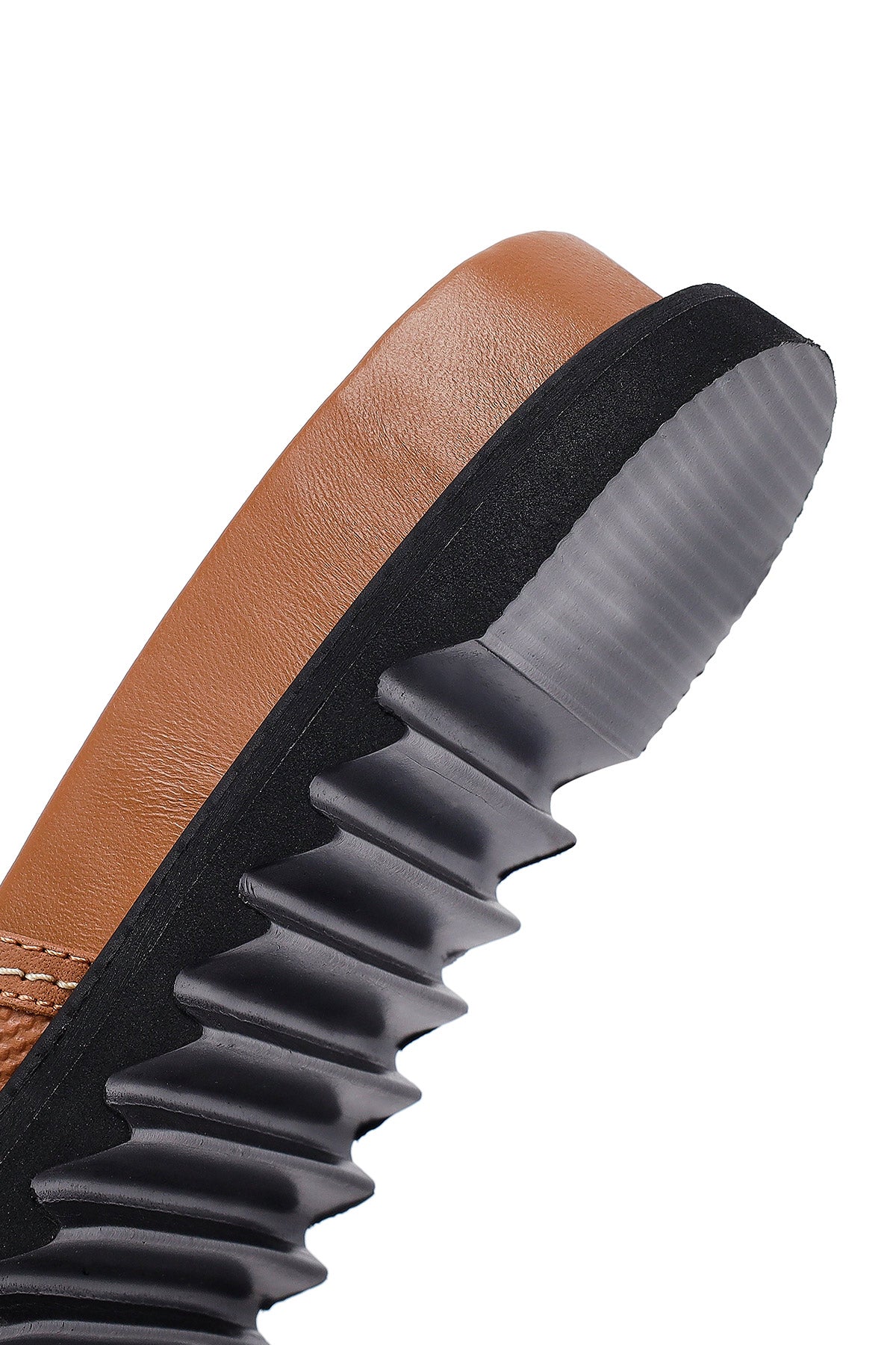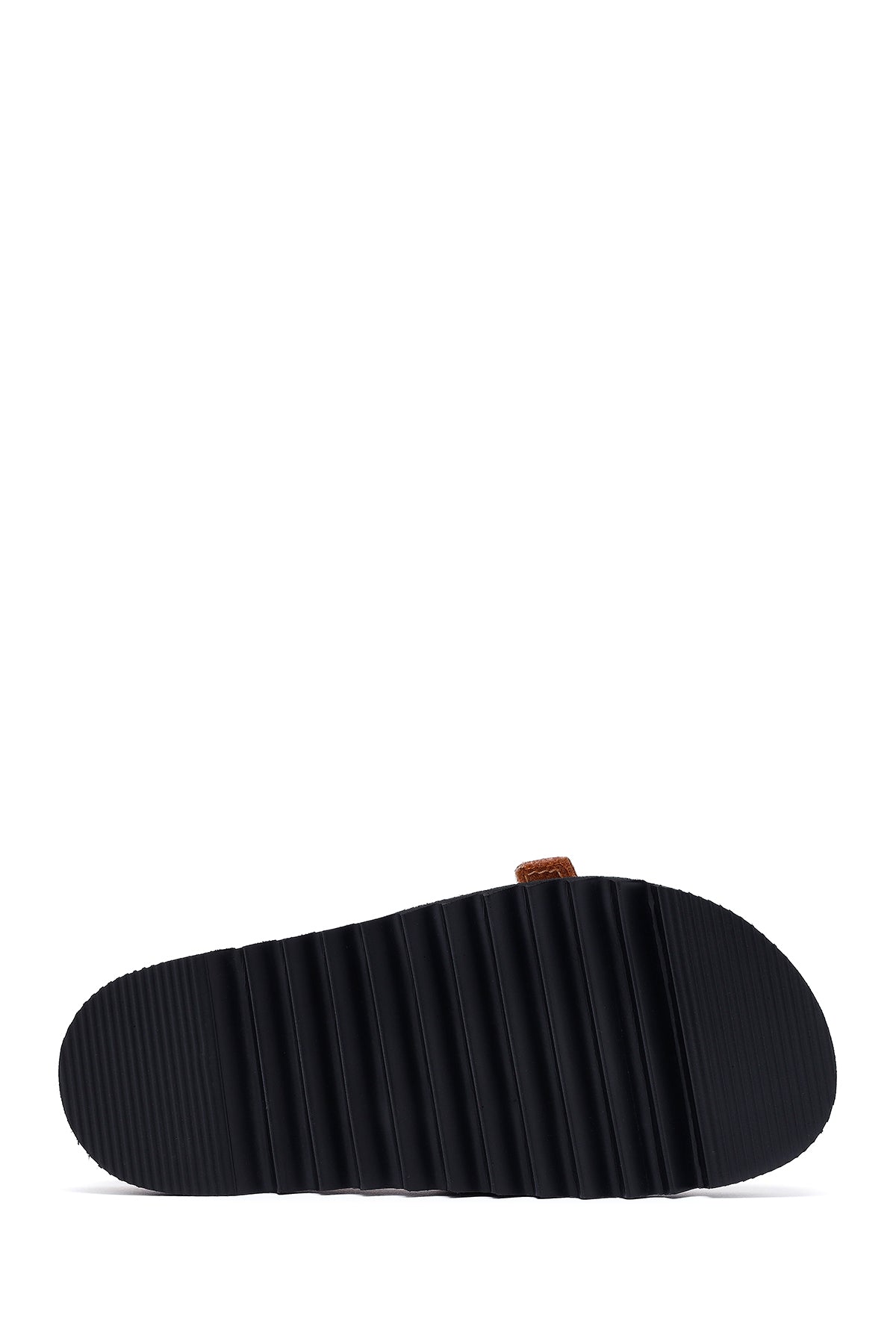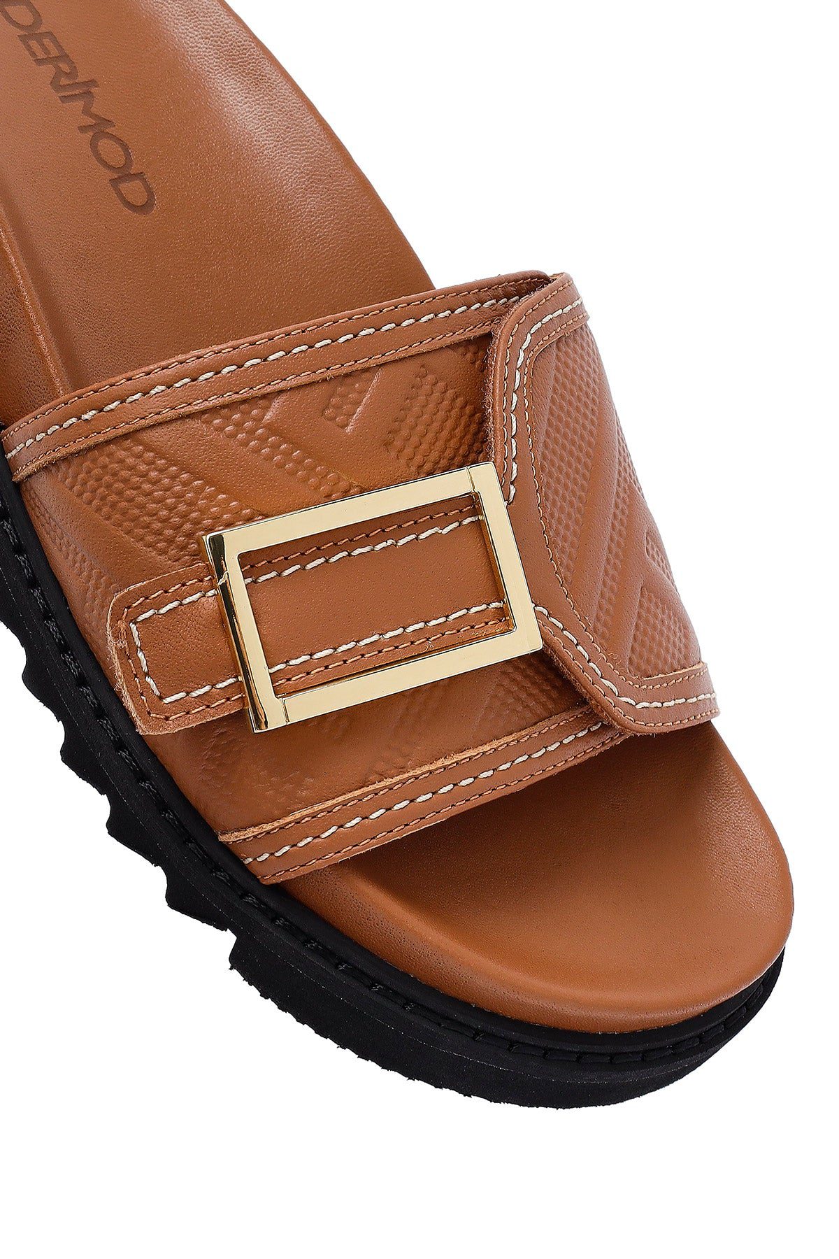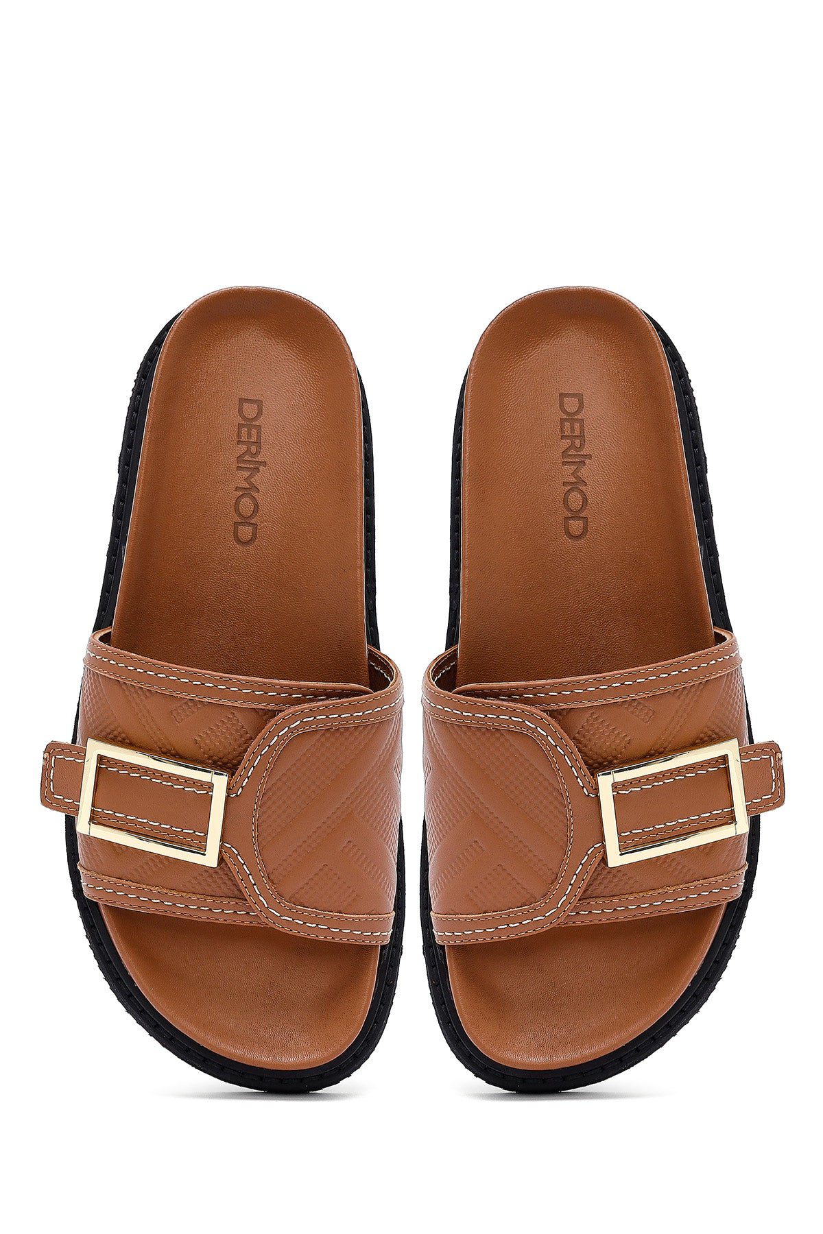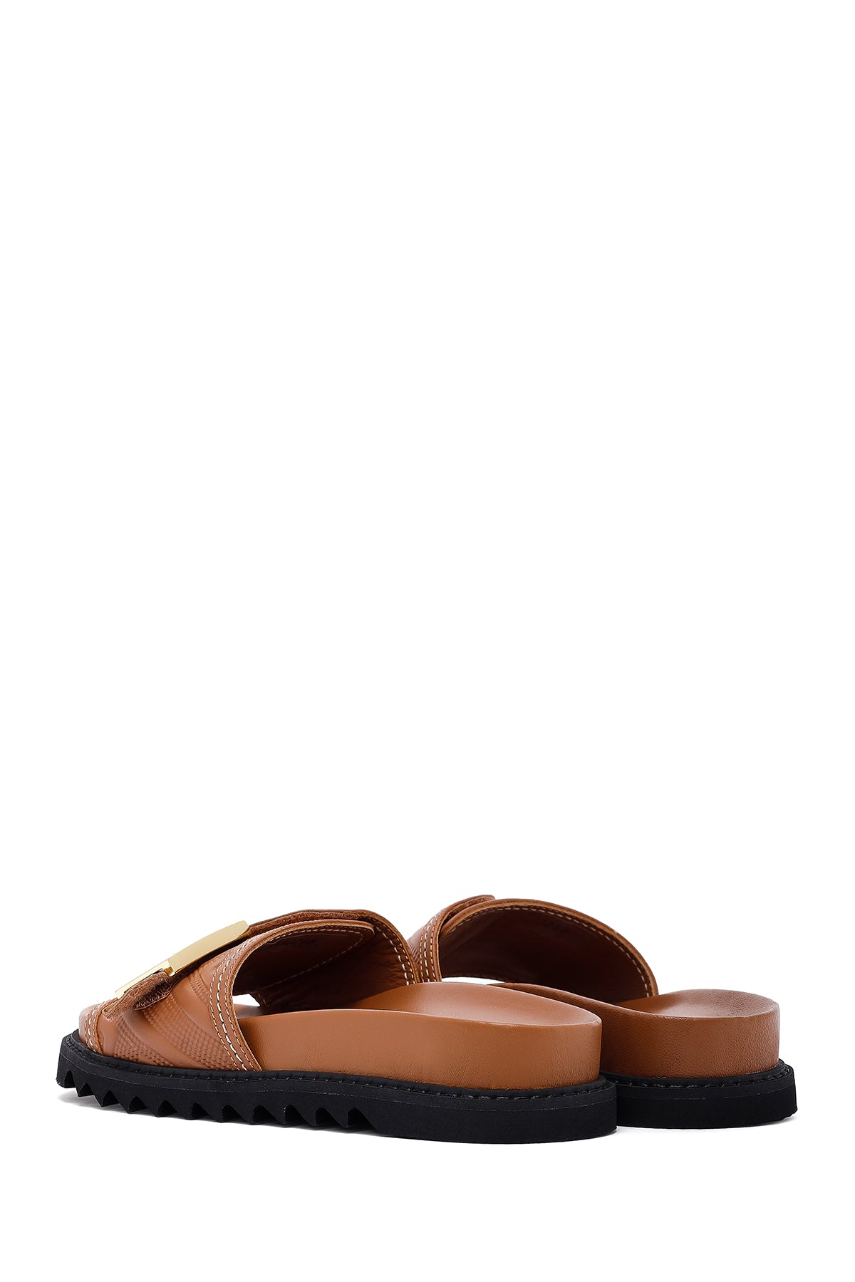 دمپایی زنانه چرم قهوهای سگکدار دری مد