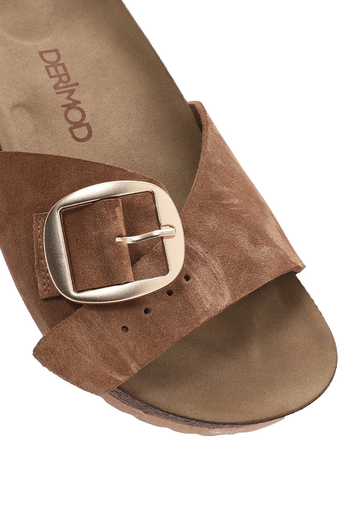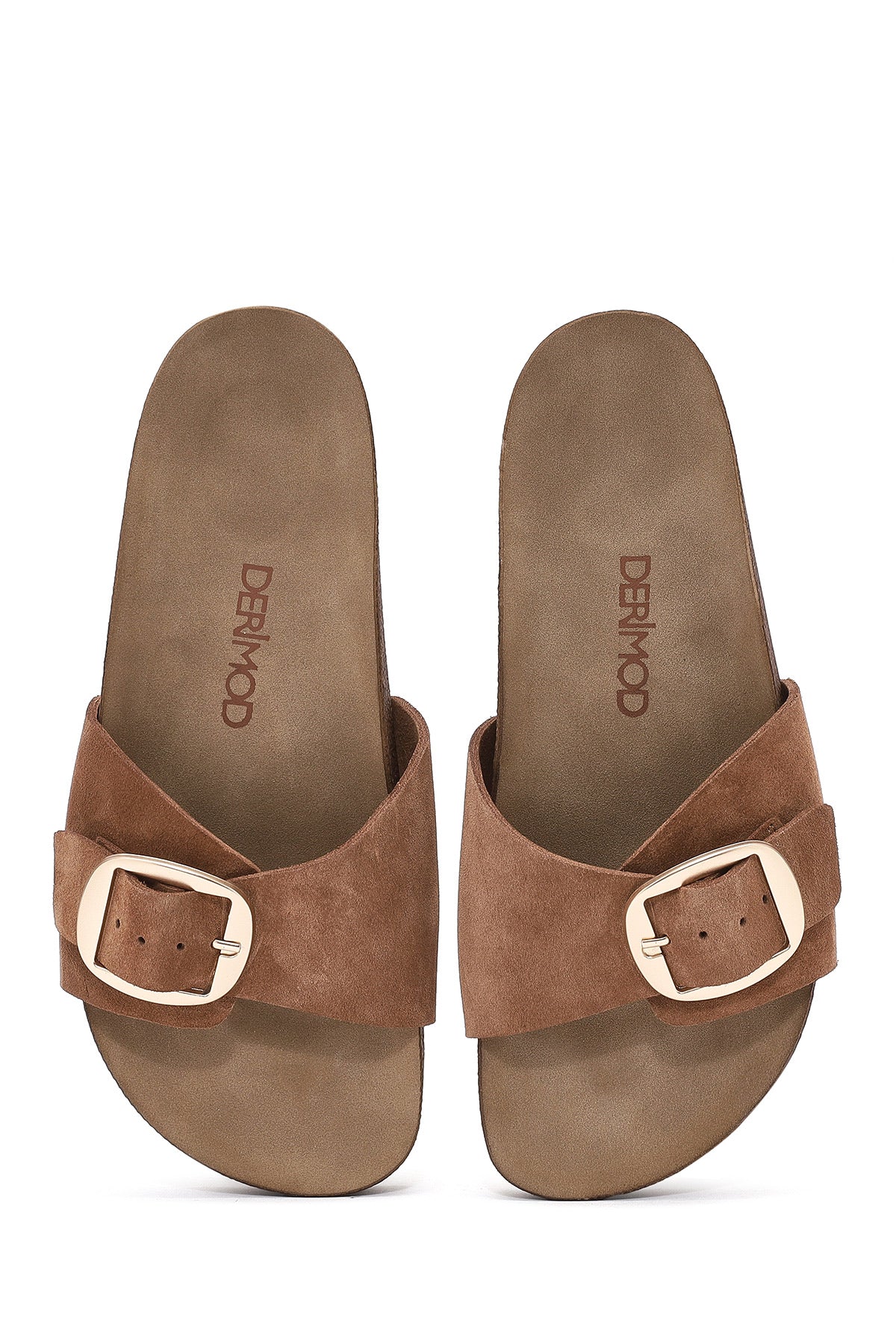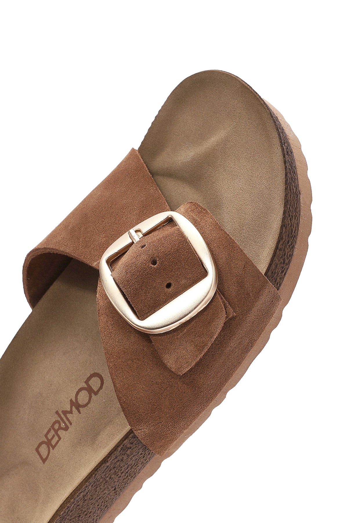 دمپایی زنانه جیر قهوهای سگکدار دری مد