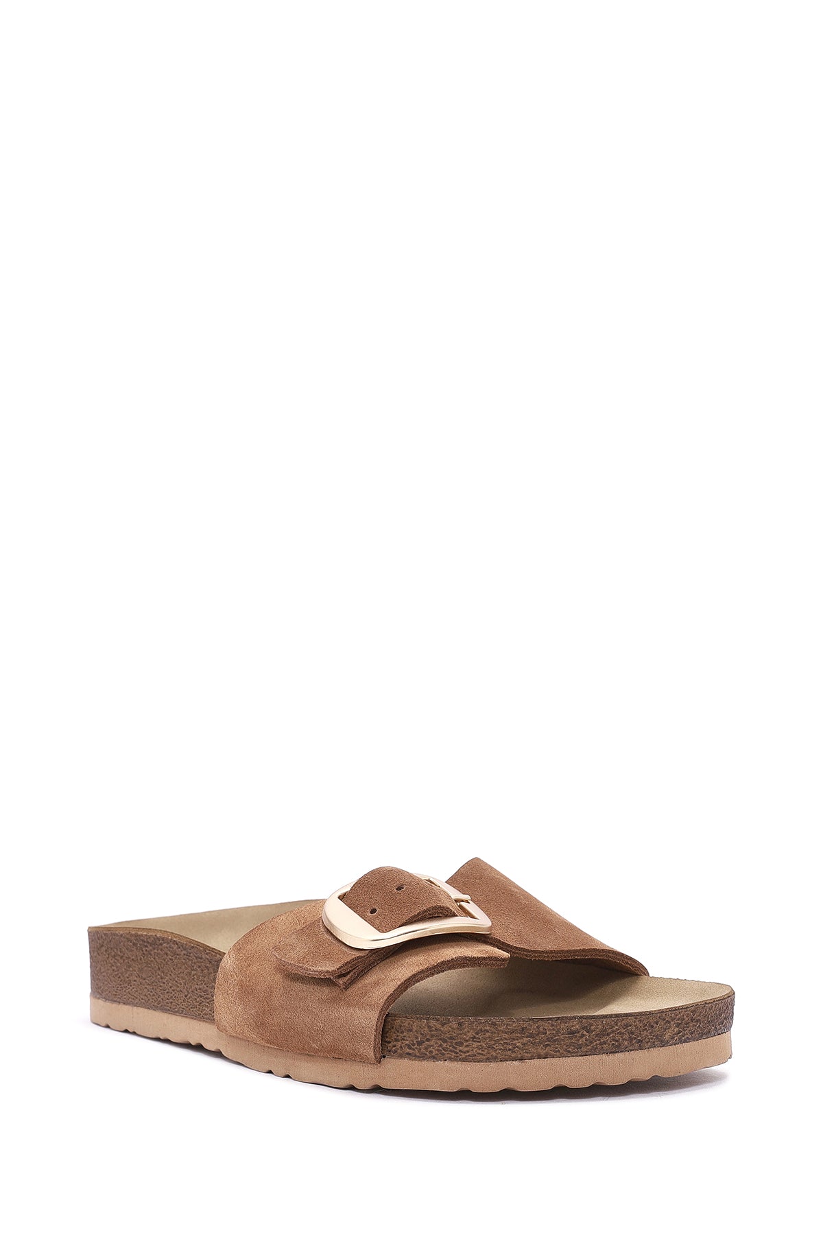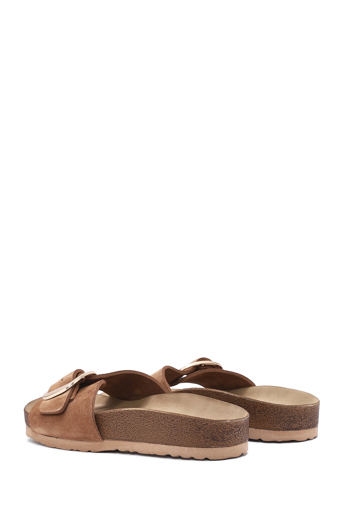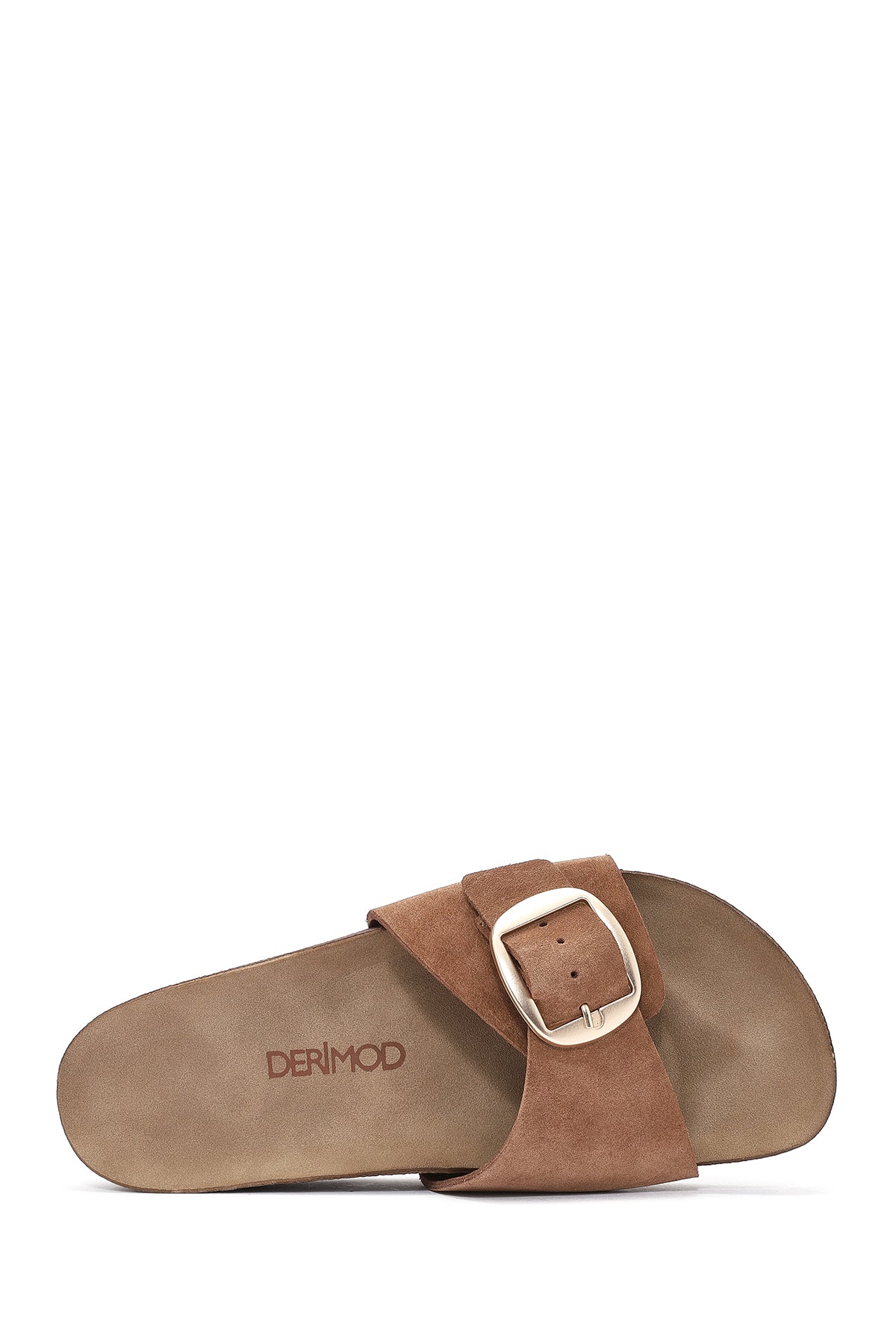 دمپایی زنانه جیر قهوهای سگکدار دری مد