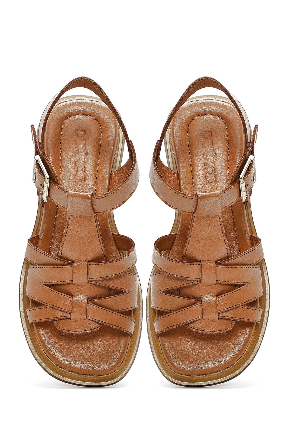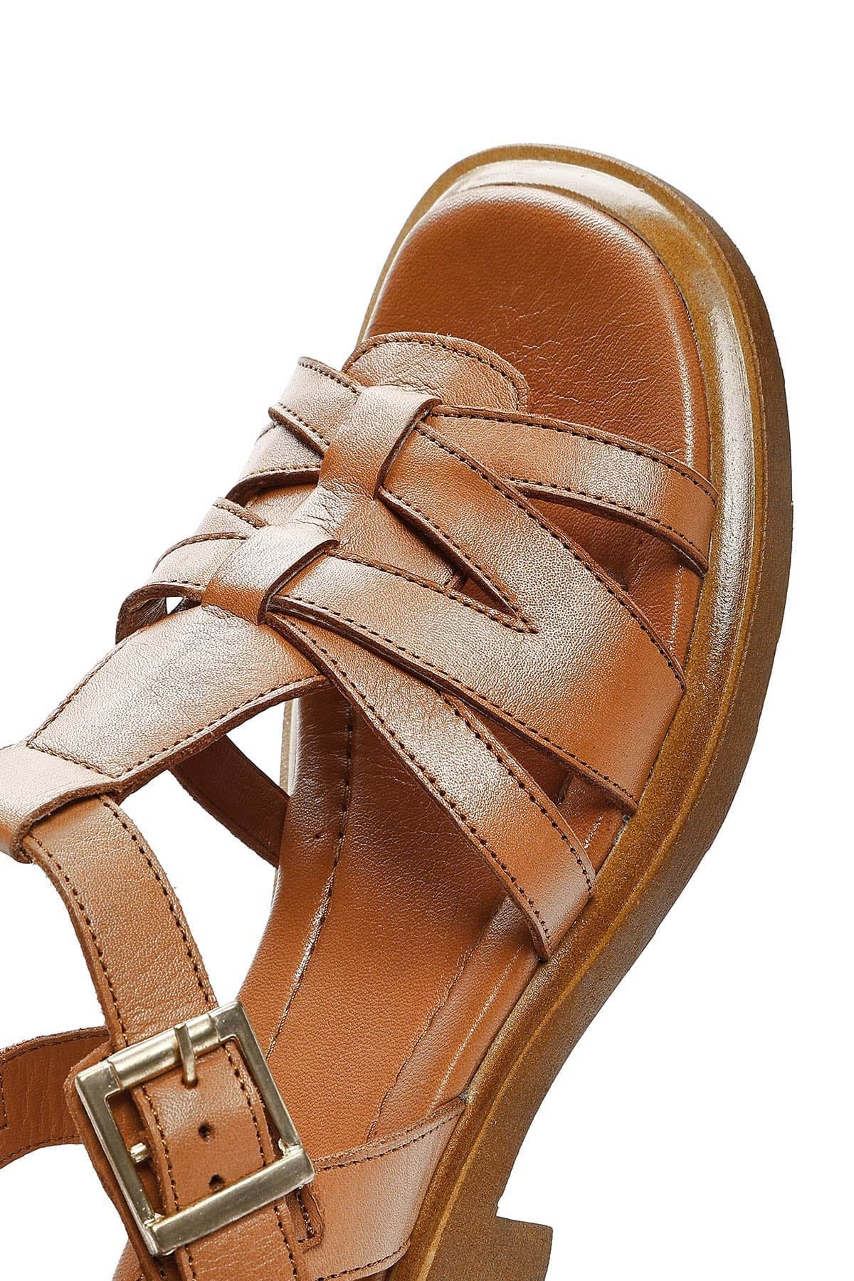 Kadın Taba Bilekten Tokalı Deri Sandalet