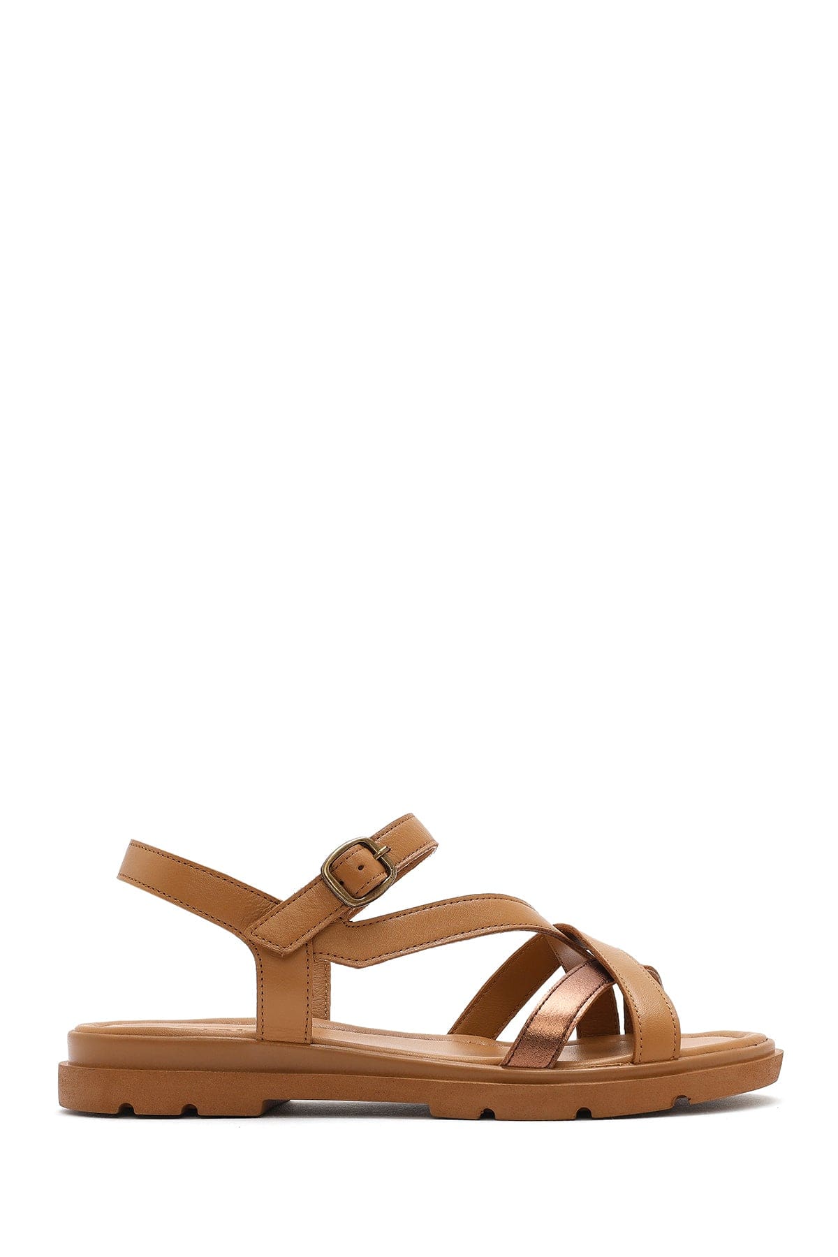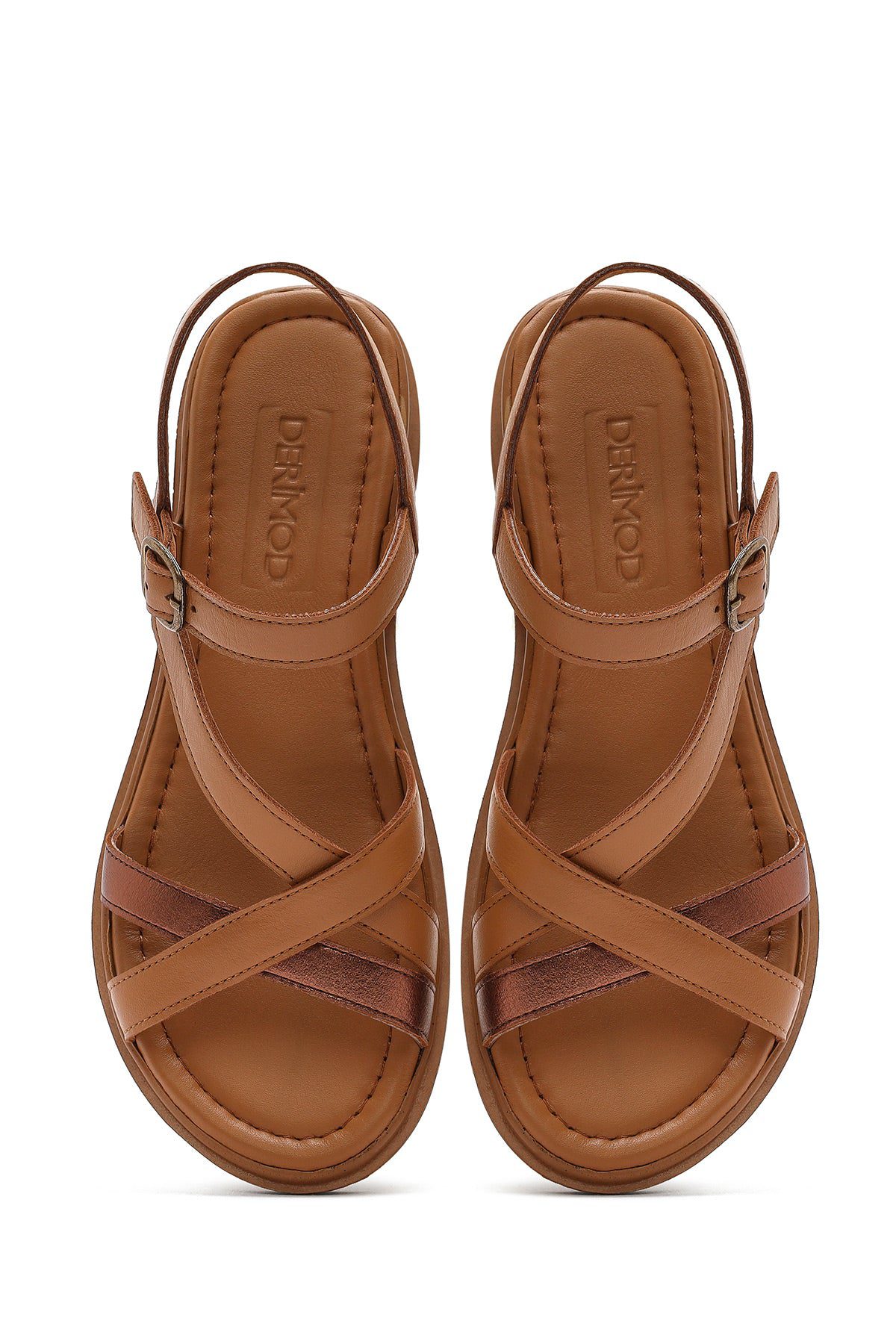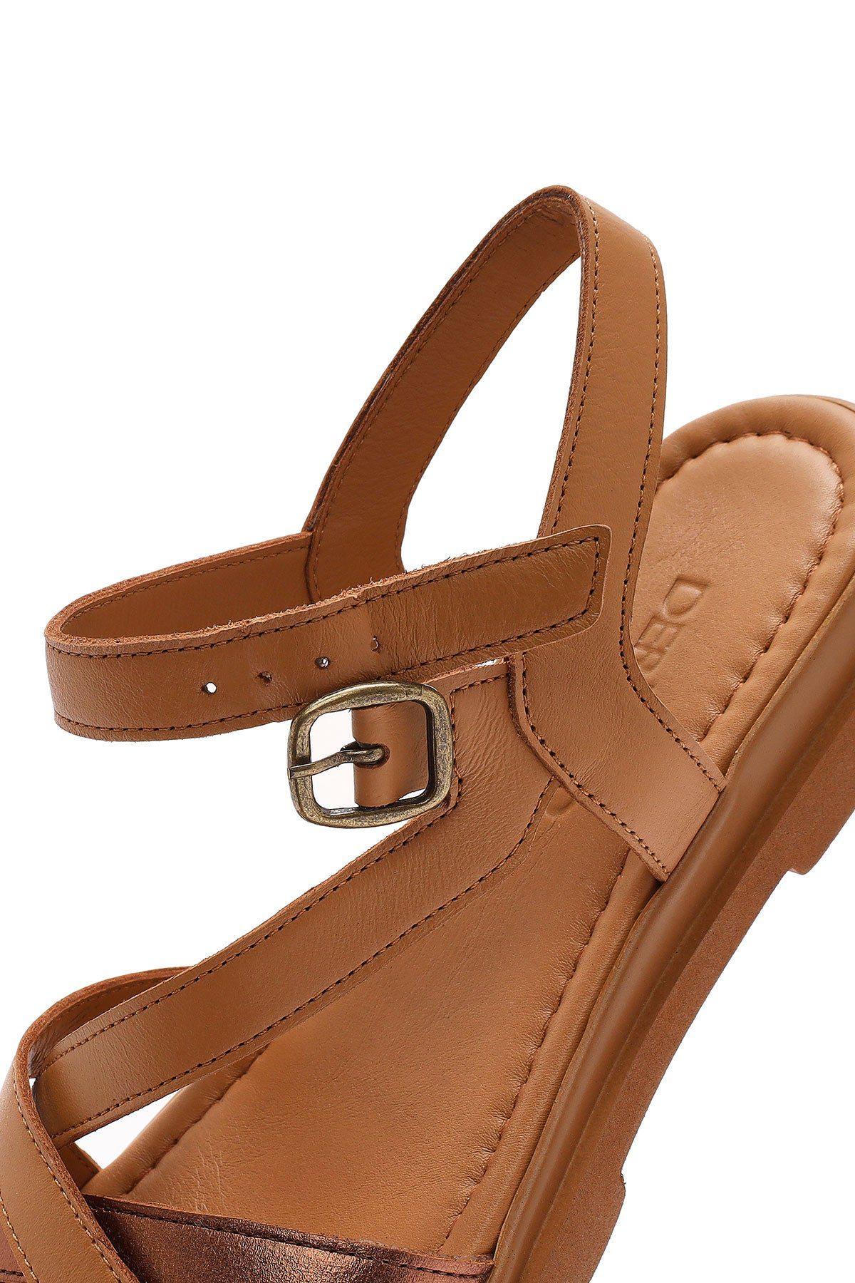 Kadın Taba Bilekten Tokalı Deri Sandalet