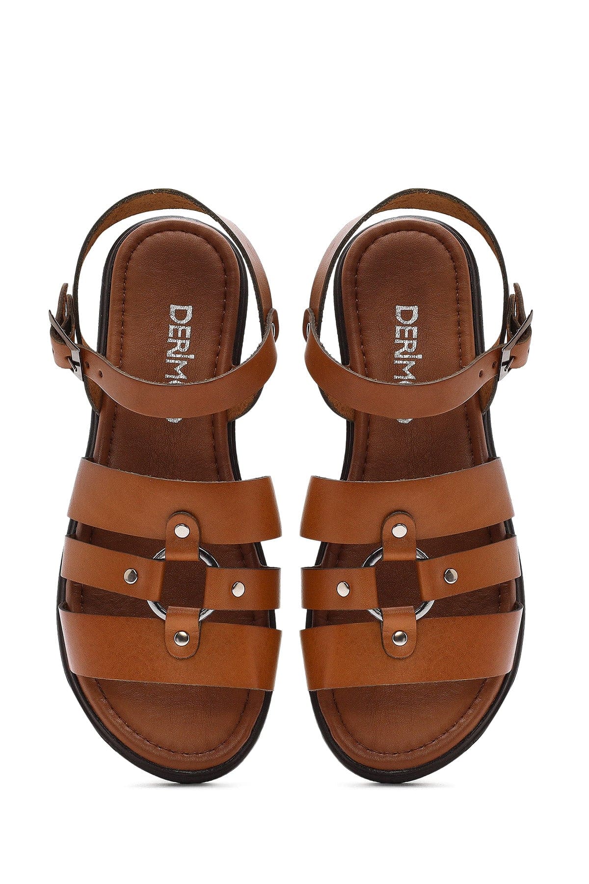 Kadın Taba Bilekten Tokalı Deri Sandalet
