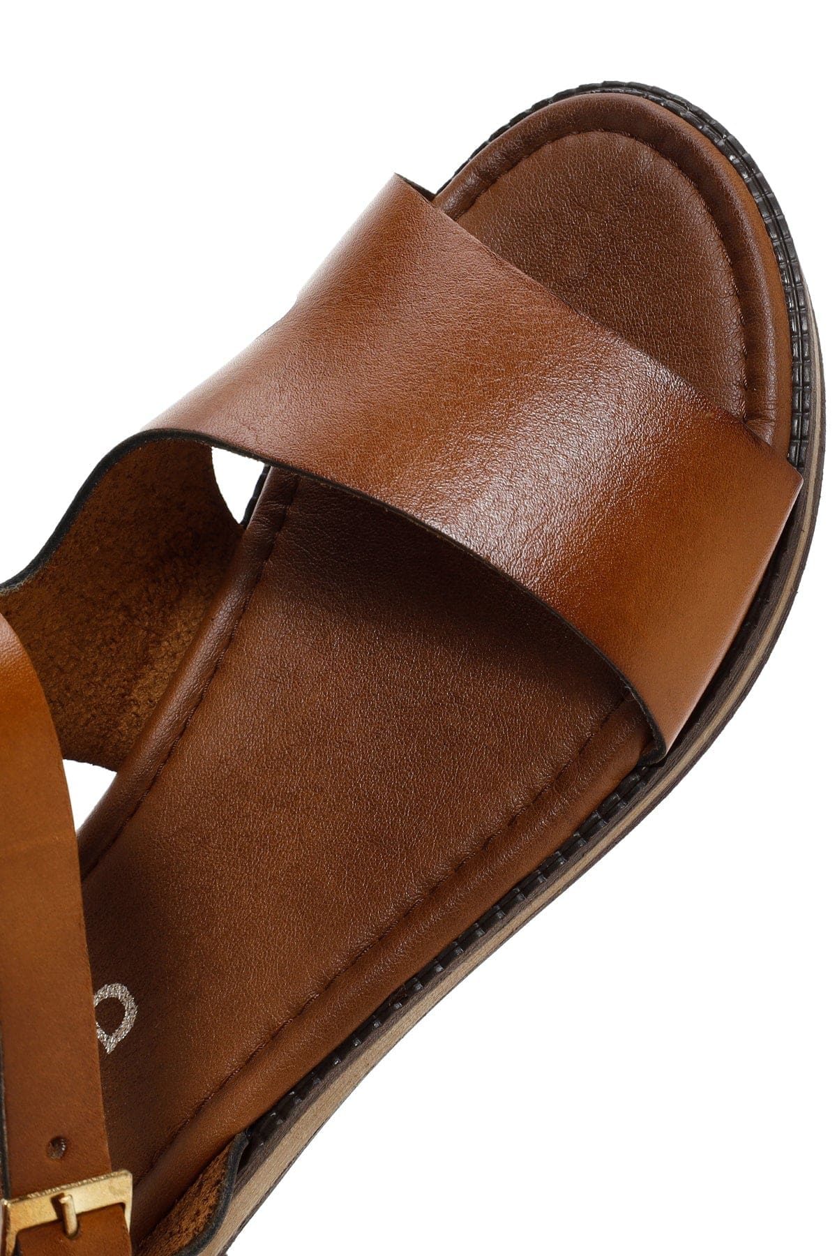 صندل زنانه عسلی چرمی بودروم دری مد