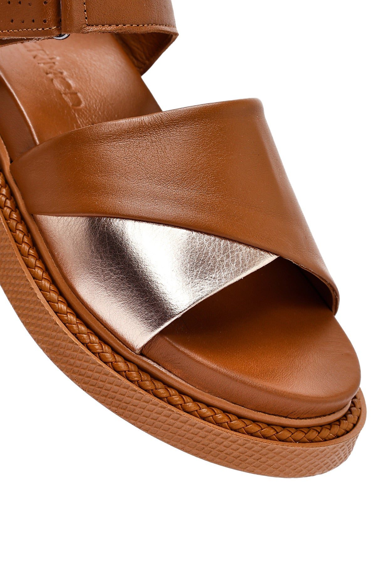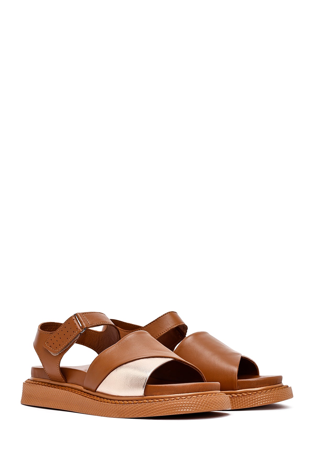 Kadın Taba Bantlı Kalın Tabanlı Deri Sandalet
