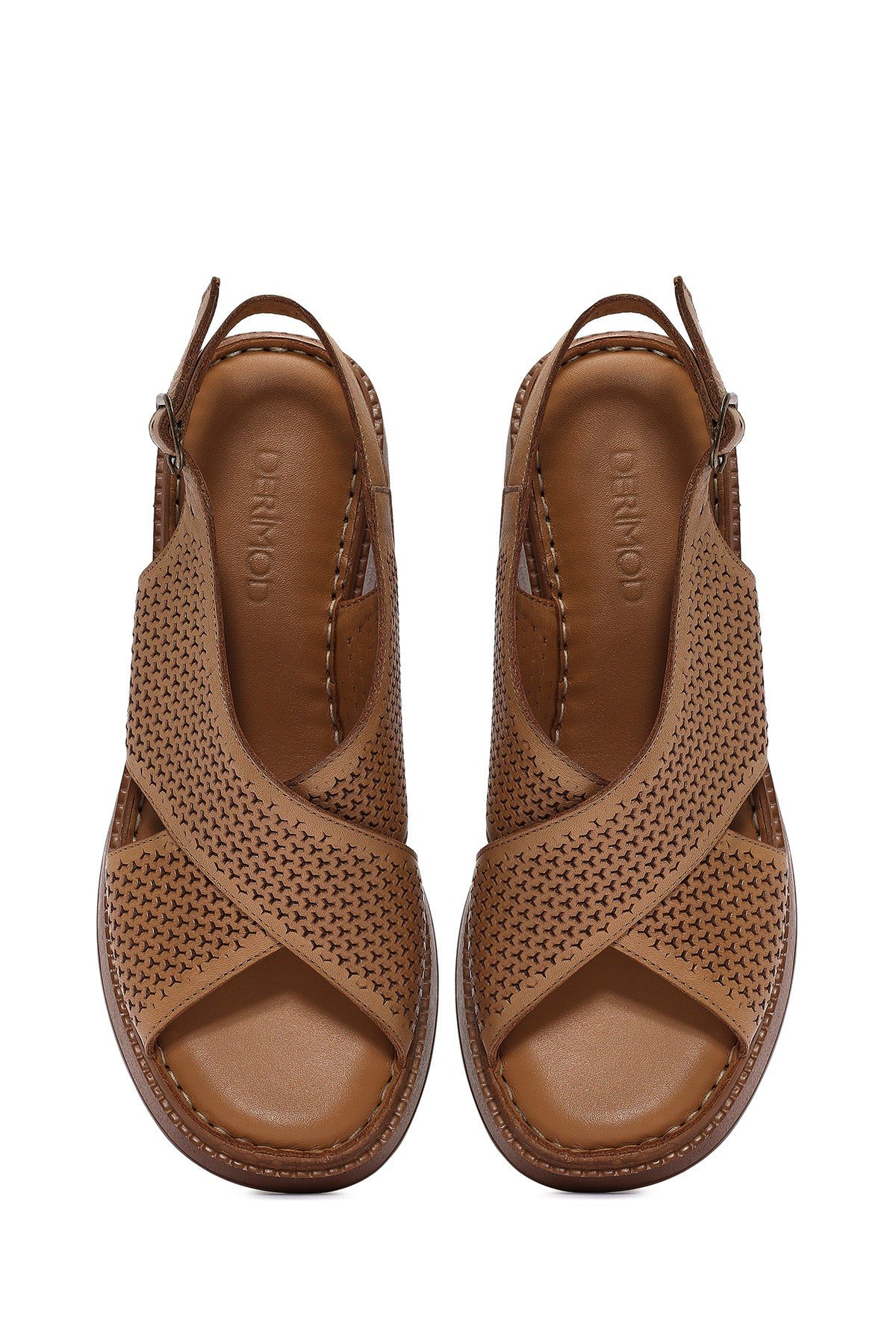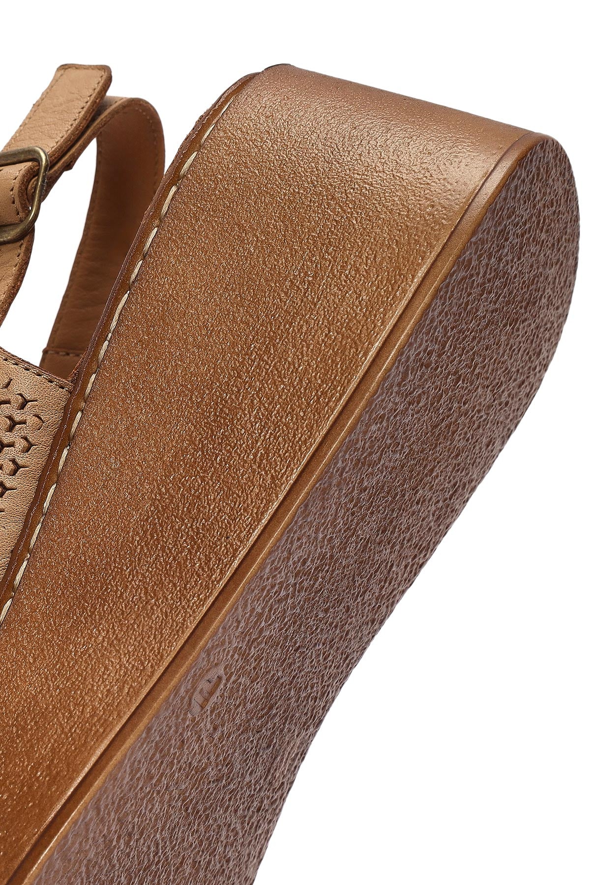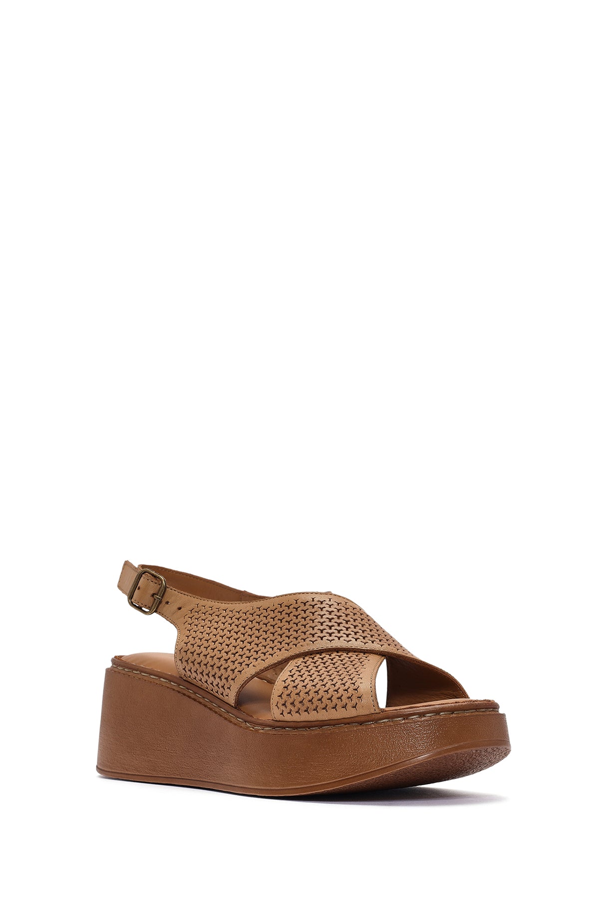 Kadın Taba Bilekten Bağlamalı Baskılı Dolgu Topuklu Deri Comfort Sandalet