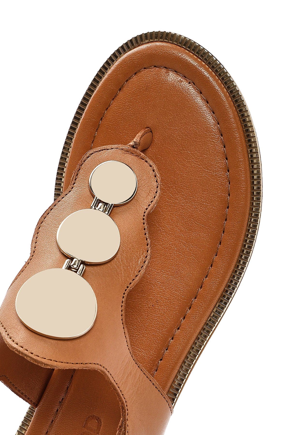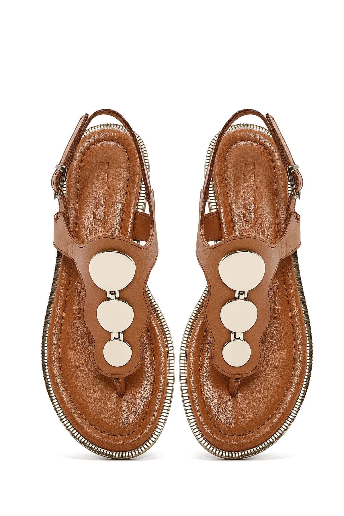 صندل زنانه قهوهای روشن چرم انگشتی دری مد